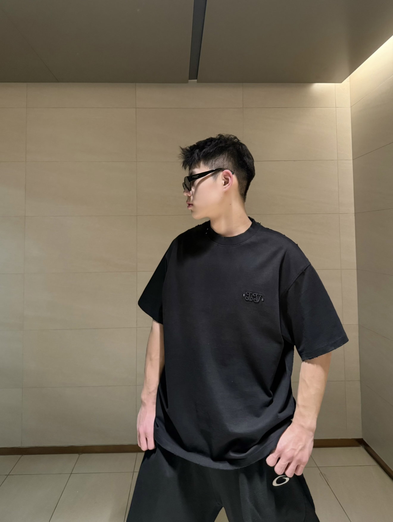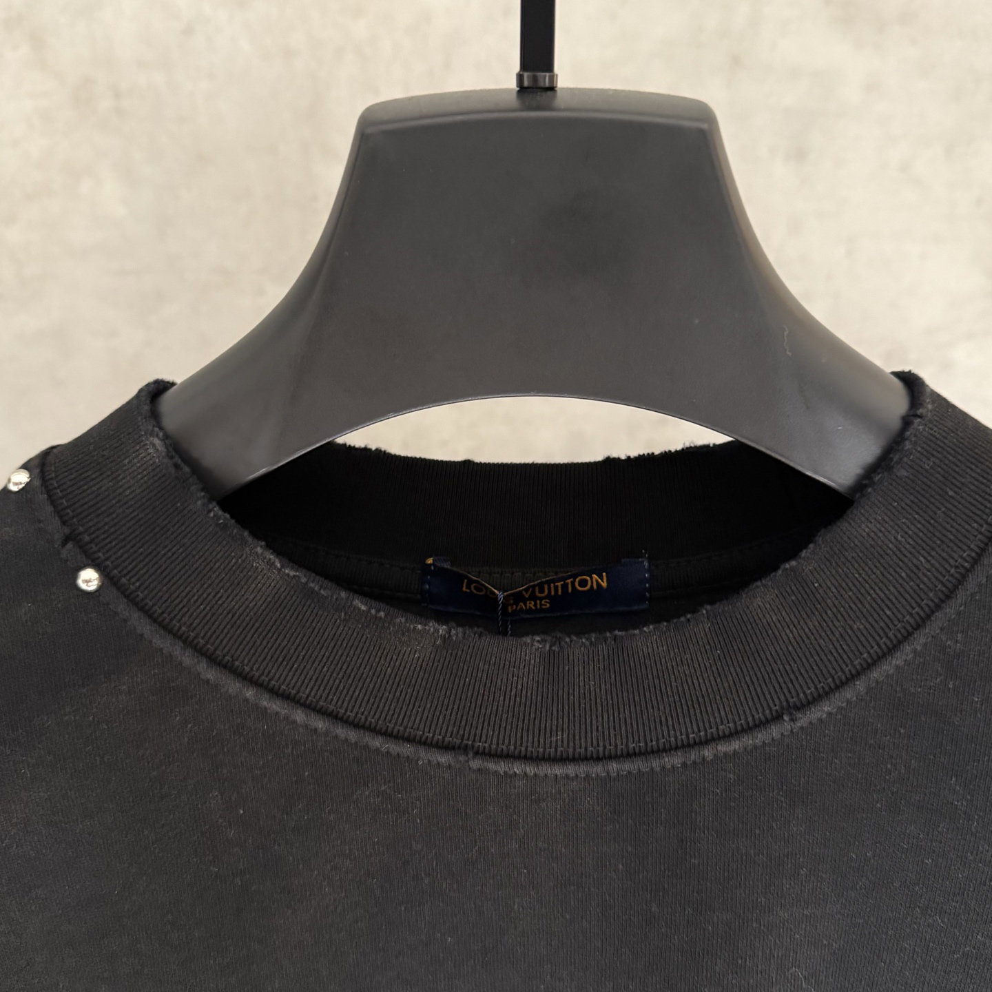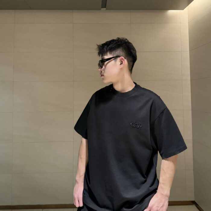 Louis Vuitton Embroidery logo loose Round neck dirty T-shirt Black ルイ ヴィトン 刺繍 logo ゆったり クルーネック 汚い Tシャツ ブラック