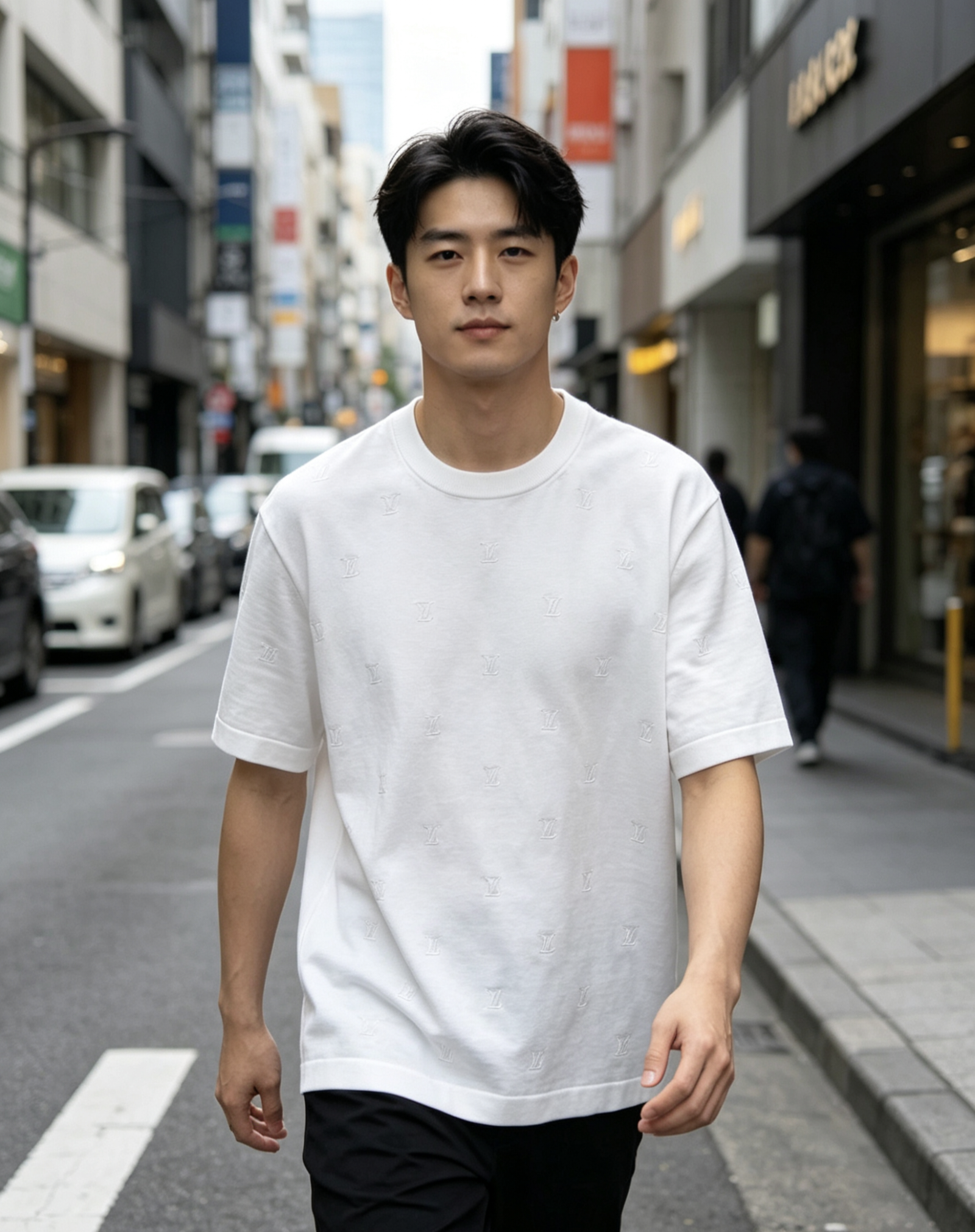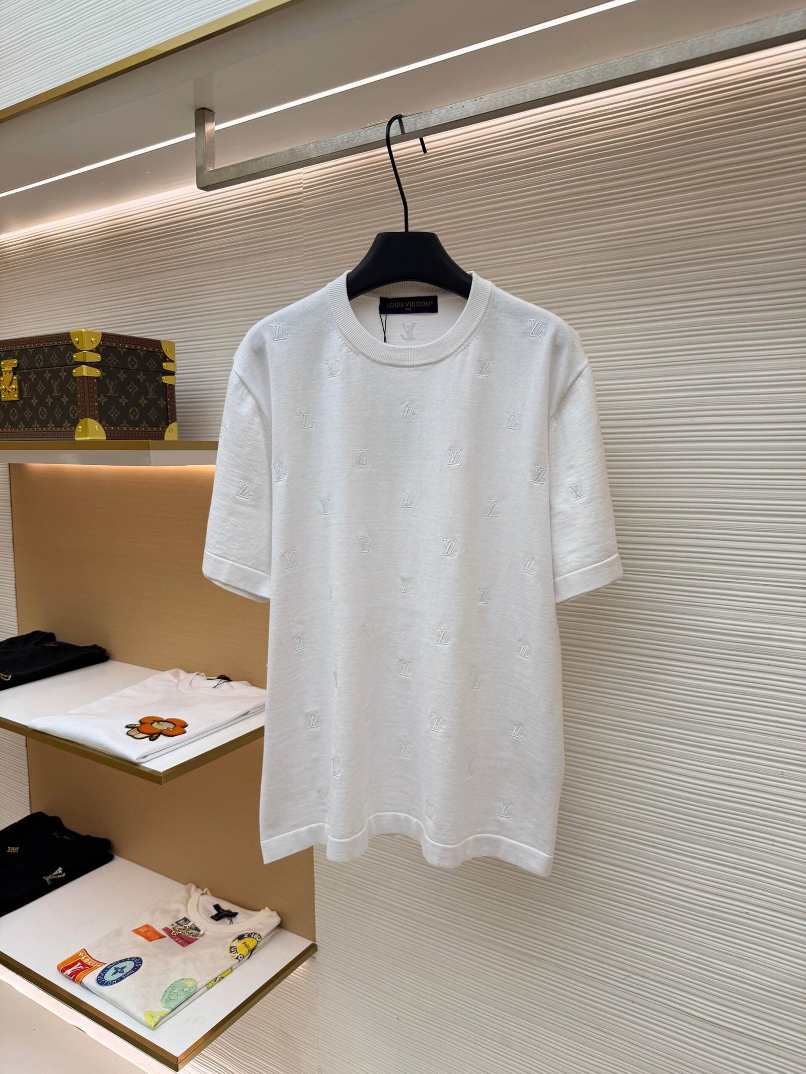 Louis Vuitton Flocked Print pattern loose Round neck T-shirt White ルイ ヴィトン 植毛 プリント パターン ゆったり クルーネック Tシャツ ホワイト