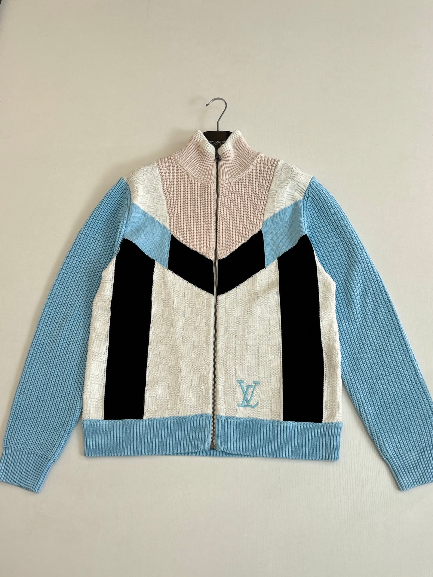 LOUIS VUITTON Embroidery logo Patchwork knit ZIP-UP Sweater ルイヴィトン 刺繍 logo パッチワーク ニット ジップアップ セーター