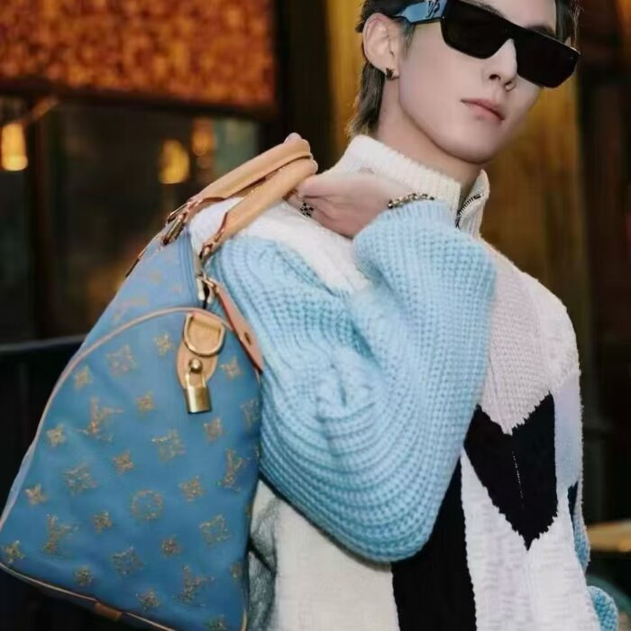 LOUIS VUITTON Embroidery Blue LOGO Knit Round neck Sweater Blue ルイヴィトン 刺繍 ブルー LOGO クルーネック ニットセーター ブルー