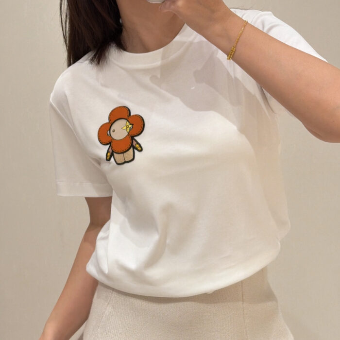 Louis Vuitton Embroidery patch pattern loose Round neck T-shirt White ルイ ヴィトン 刺繍 アップリケ パターン ゆったり クルーネック Tシャツ ホワイト