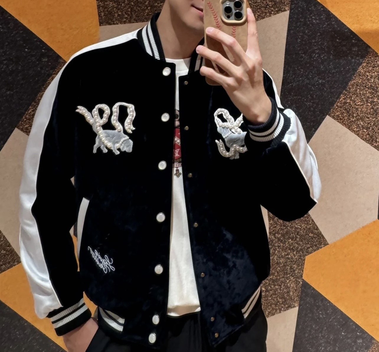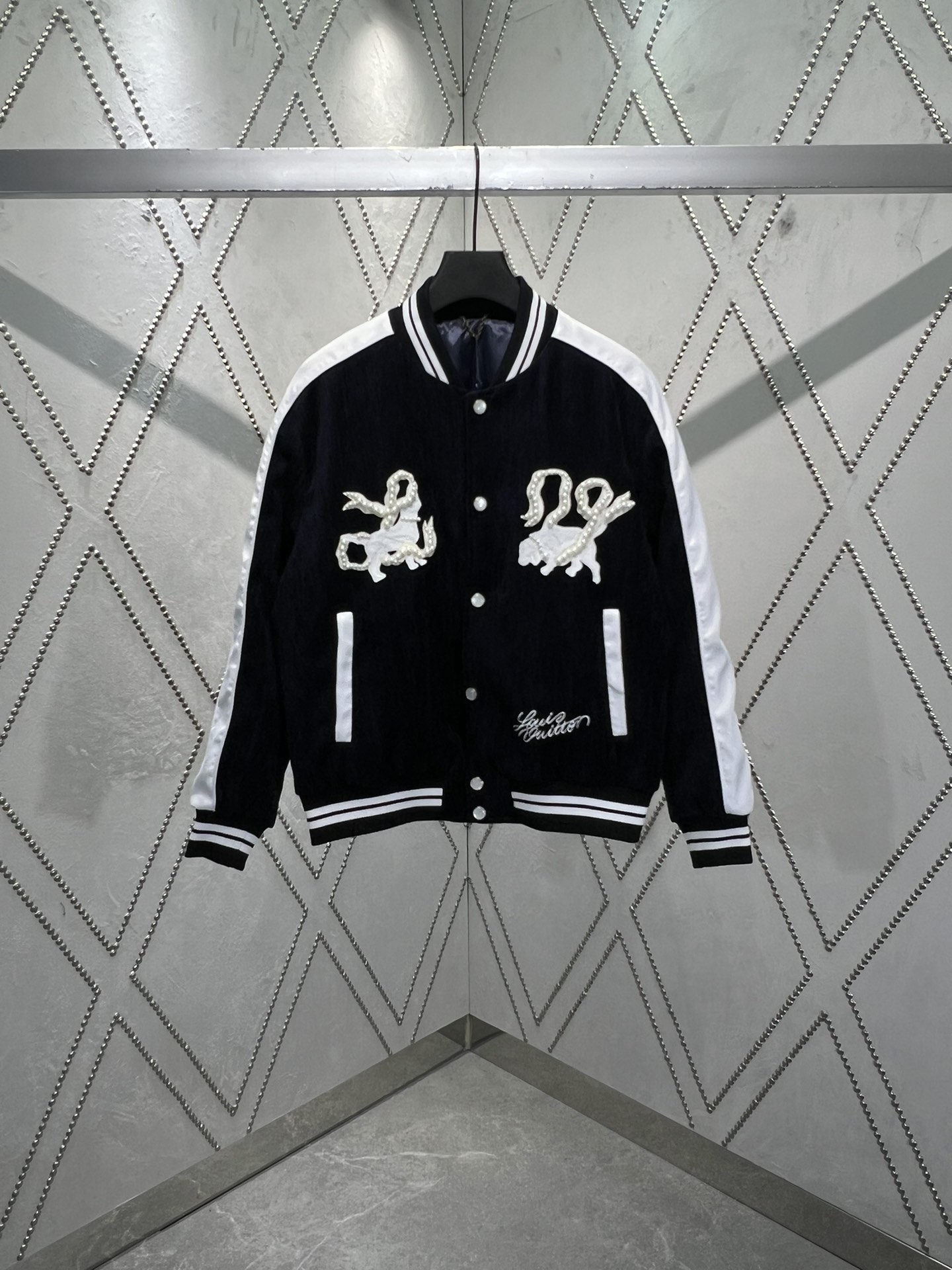 LOUIS VUITTON Embroidery pattern BASEBALL JACKET Black ルイヴィトン 刺繍 パターン ベースボールジャケット ブラック