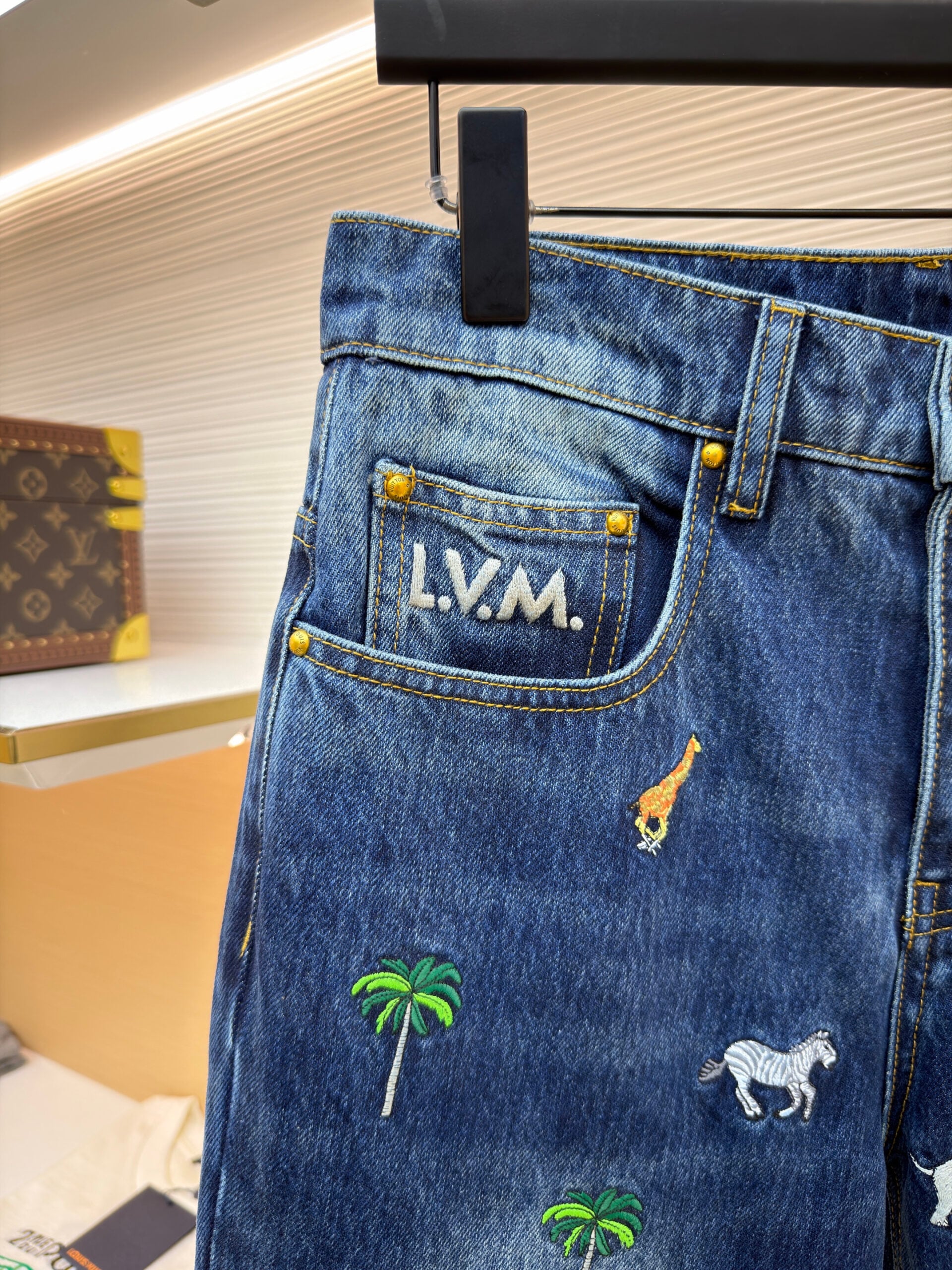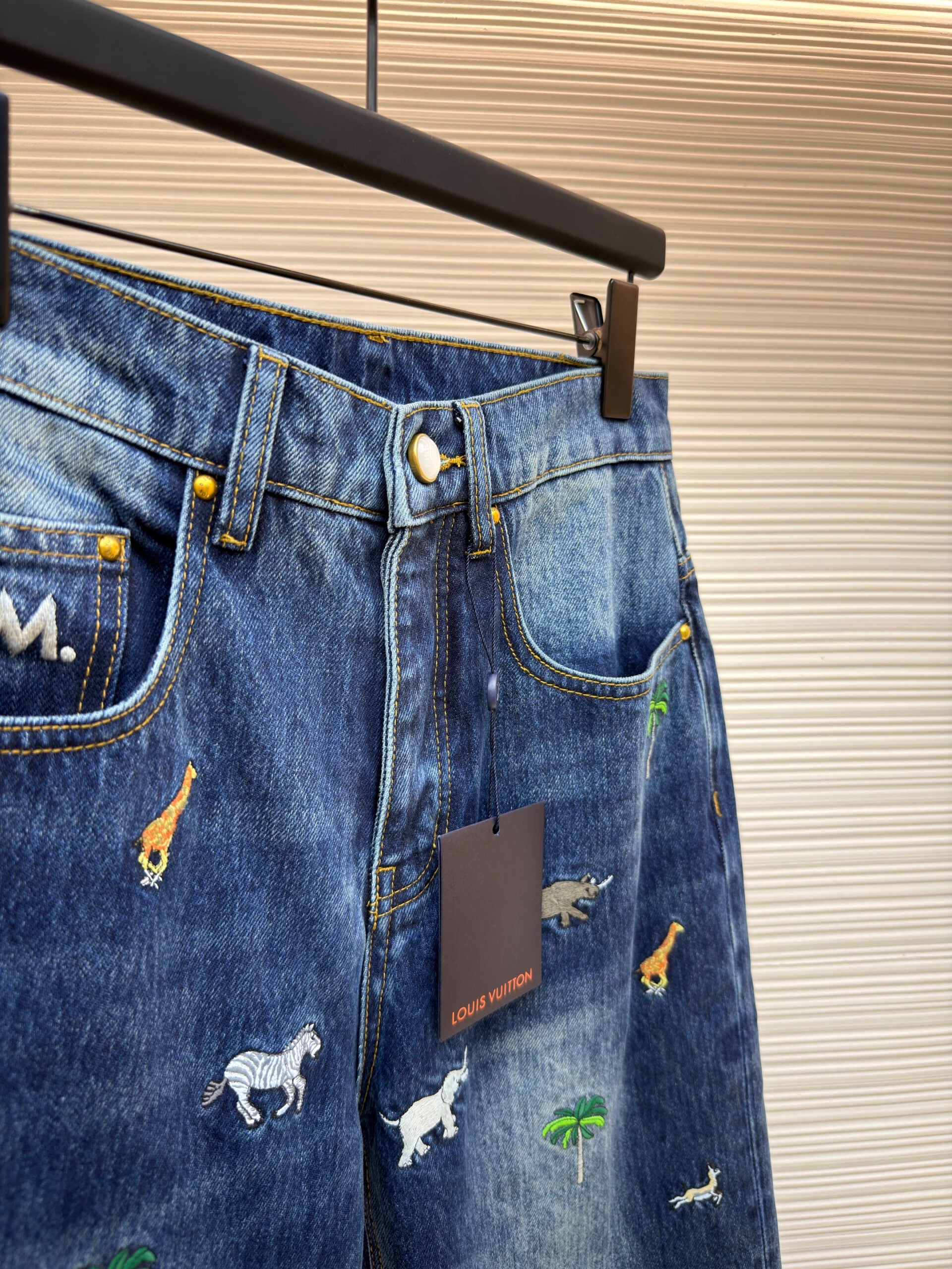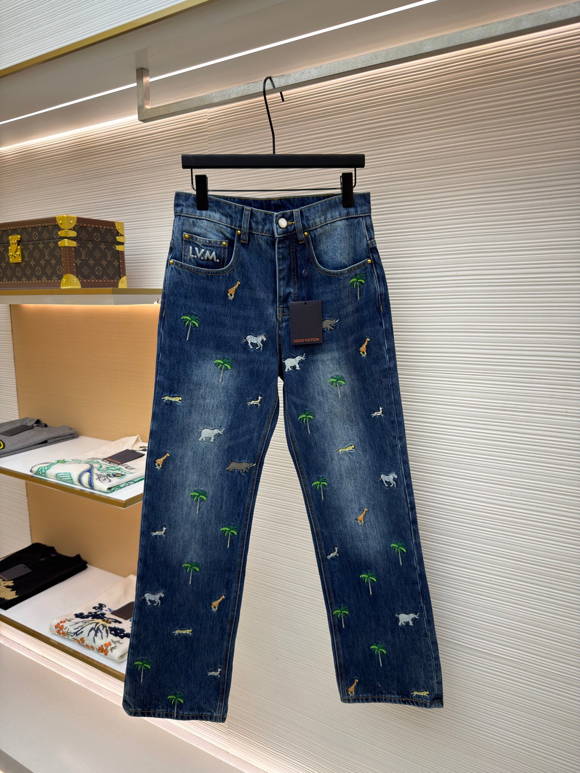 LOUIS VUITTON Embroidery pattern Straight casual DENIM JEANS ルイ ヴィトン 刺繍 パターン カジュアル ストレート デニムパンツ