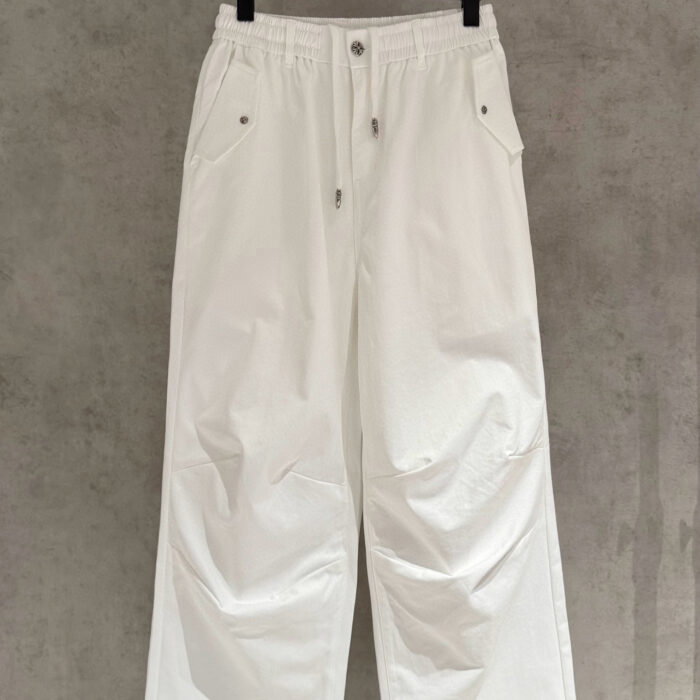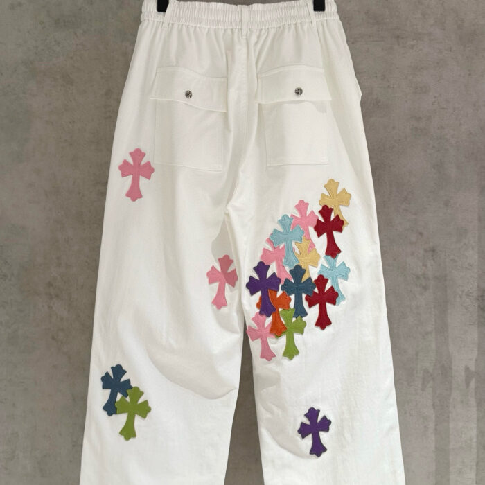 Chrome Hearts patch Black Embroidery pattern casual Parachute Pants White クロムハーツ アップリケ ブラック 刺繍 パターン カジュアル パラシュートパンツ ホワイト