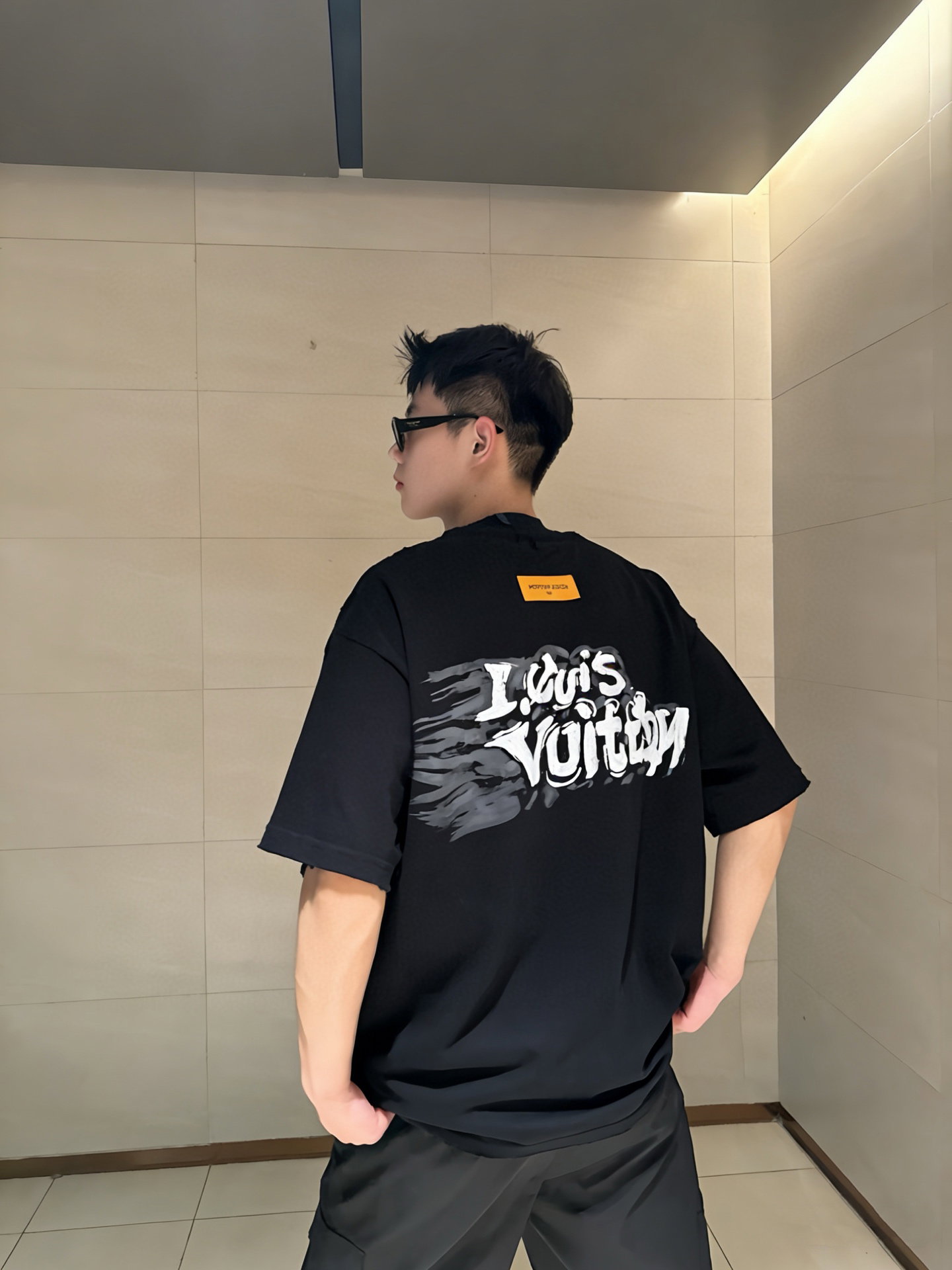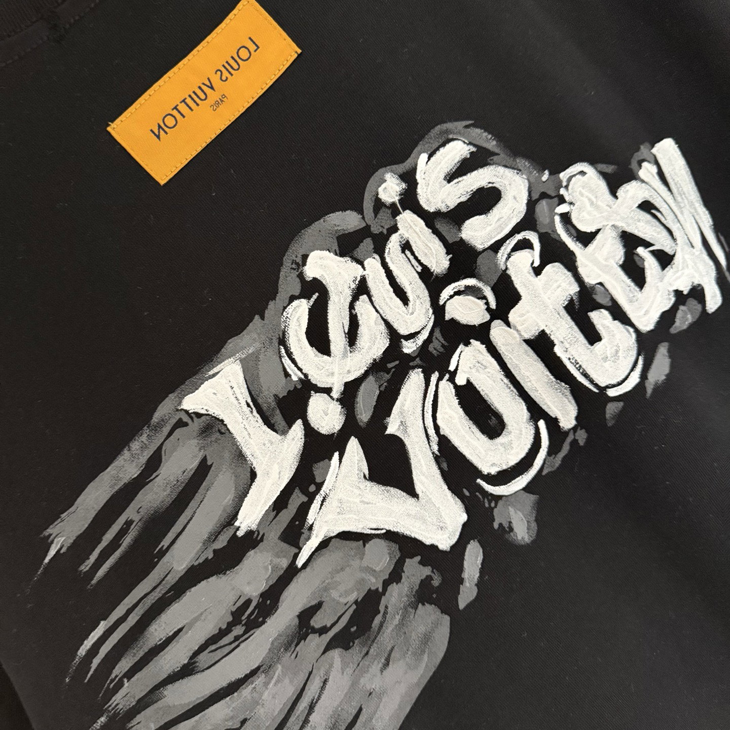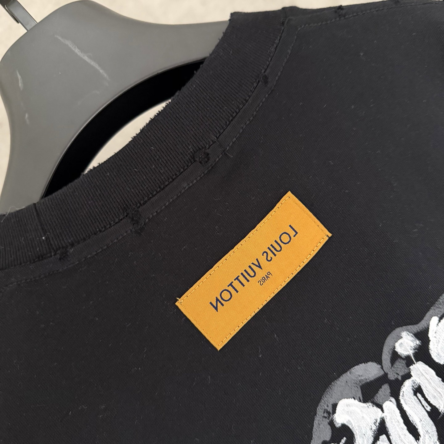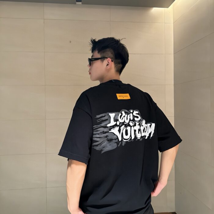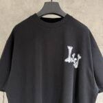 Louis Vuitton Embroidery logo loose Round neck dirty T-shirt Black ルイ ヴィトン 刺繍 logo ゆったり クルーネック 汚い Tシャツ ブラック