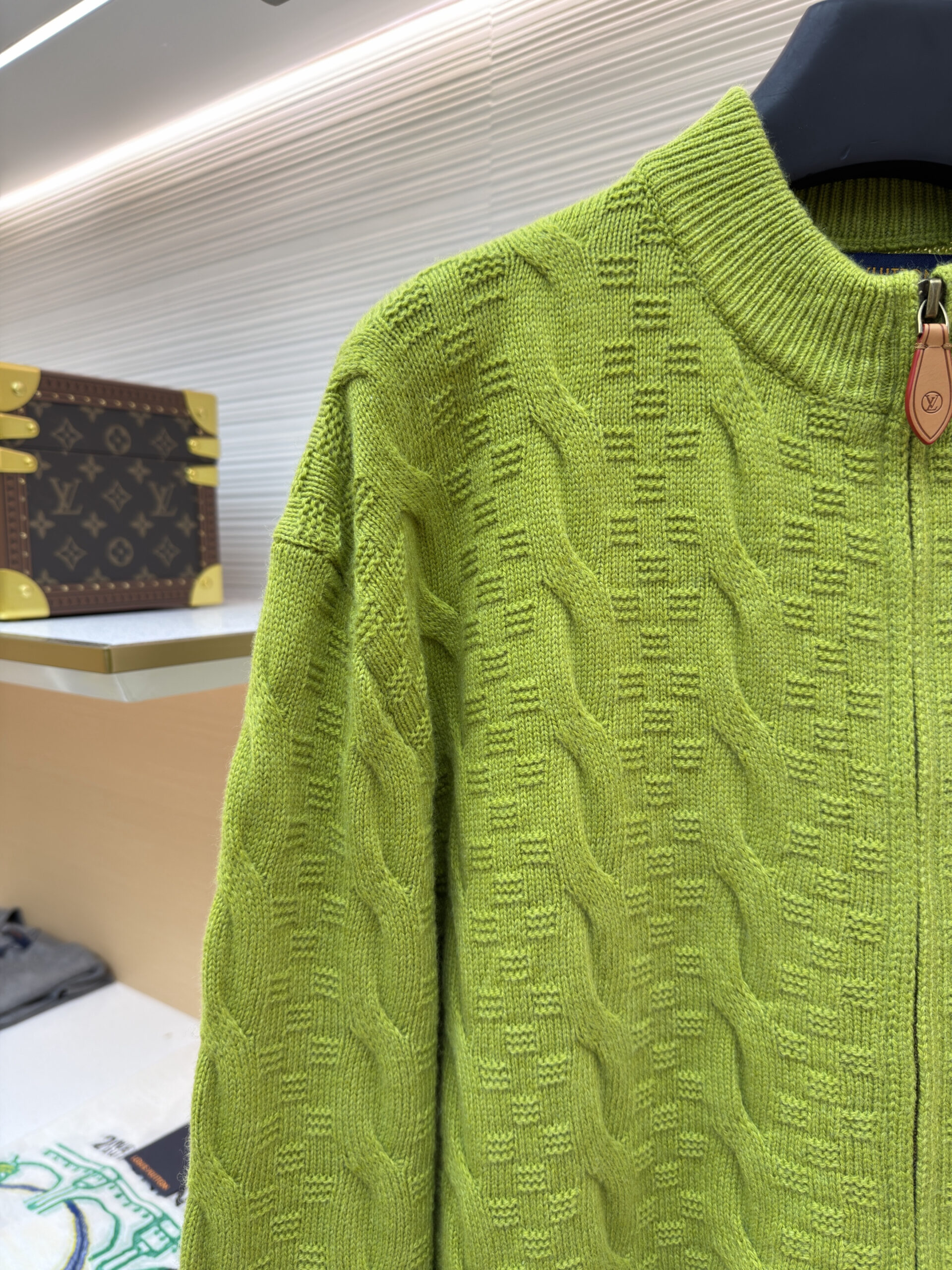 Louis Vuitton hidden pattern knit Sweater ZIP-UP JACKET Green ルイヴィトン シャドウストライプ ニットセーター ジップアップ ジャケット グリーン