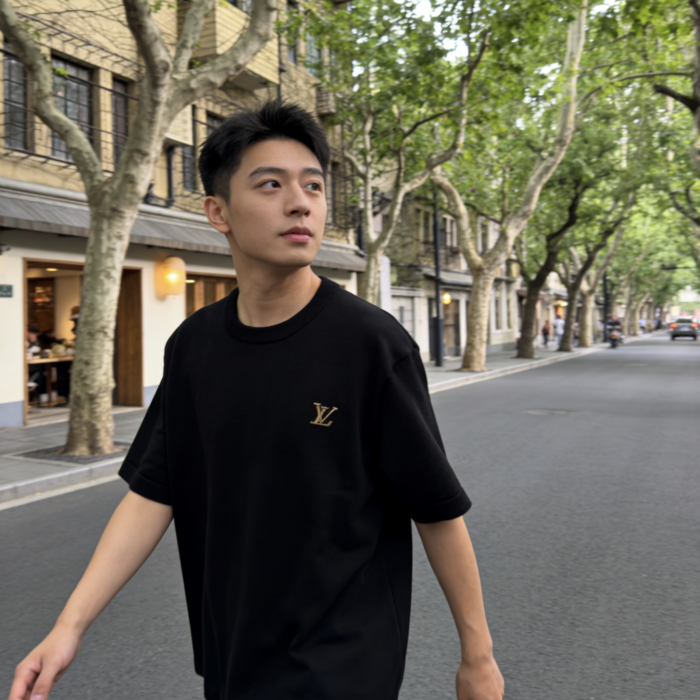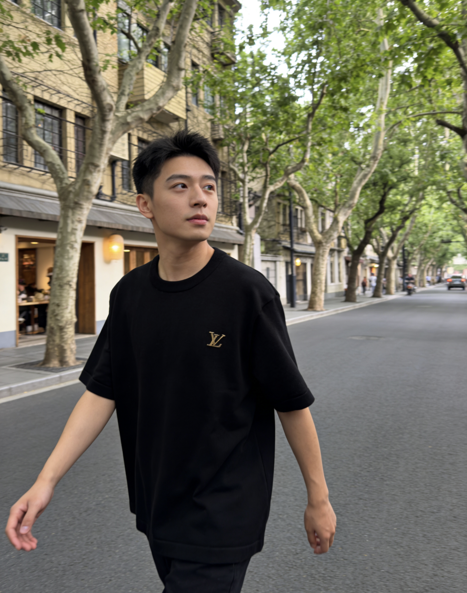 Louis Vuitton Leather logo loose Round neck T-shirt Black ルイ ヴィトン レザー logo ゆったり クルーネック Tシャツ ブラック