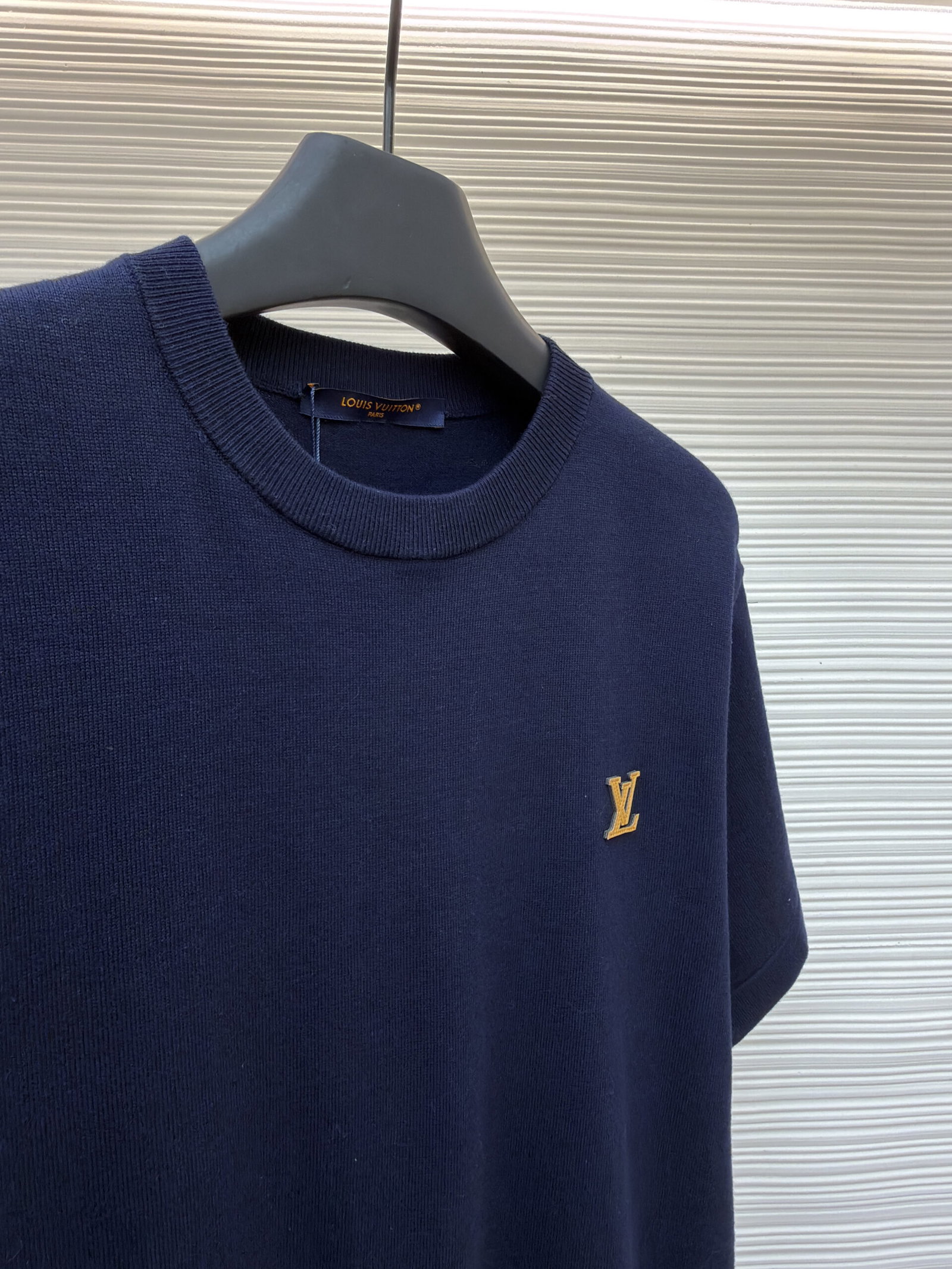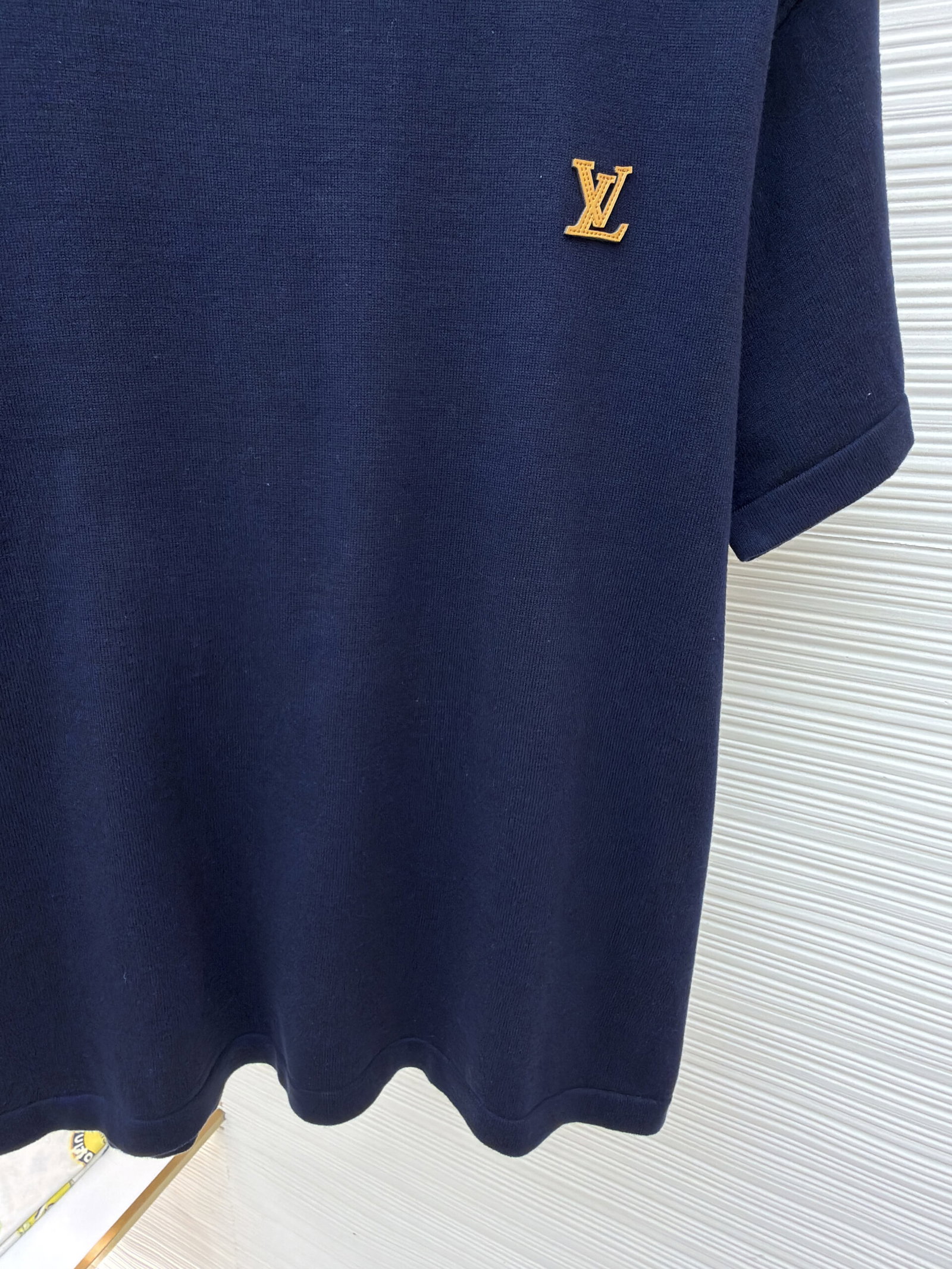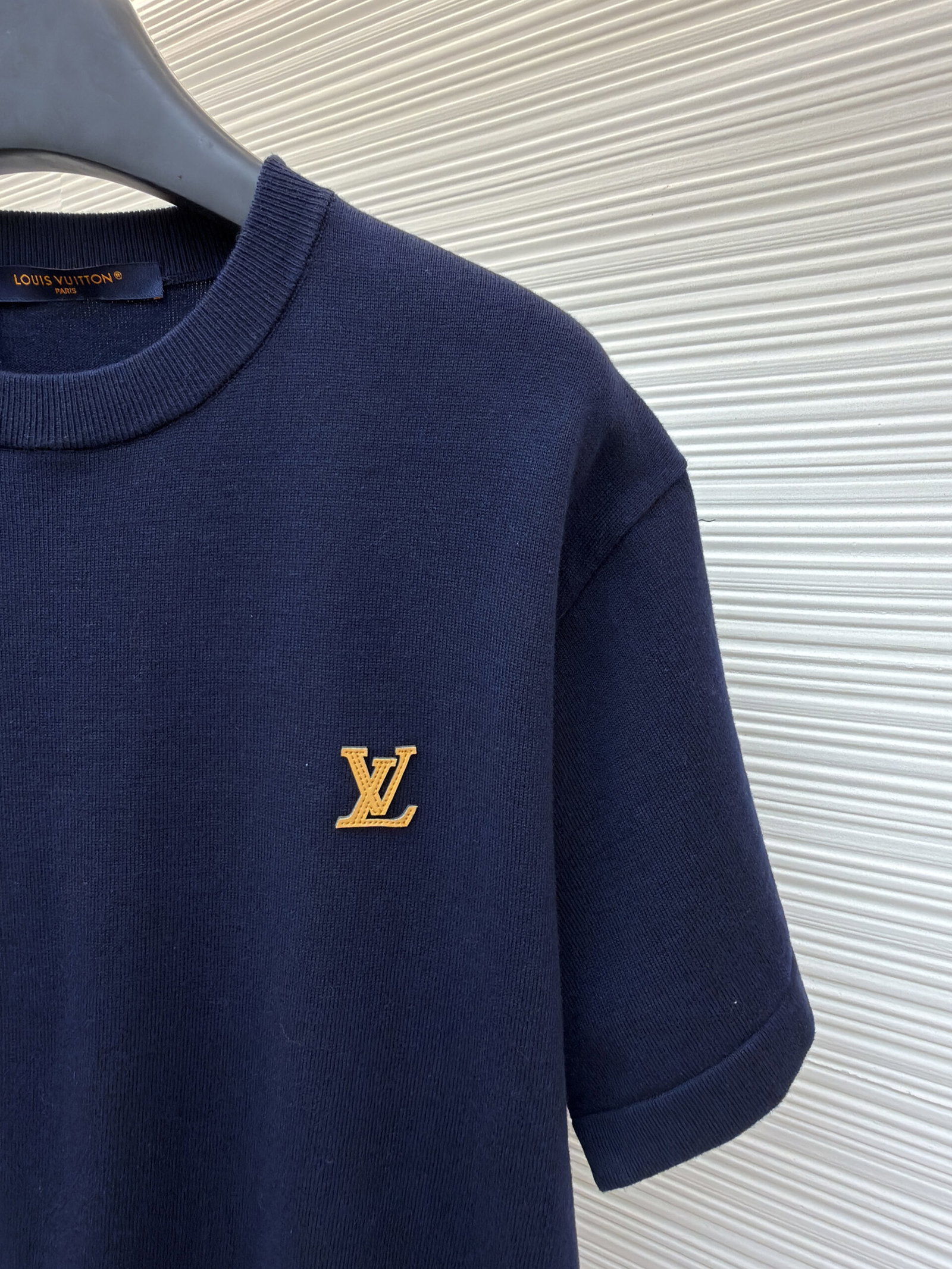 Louis Vuitton Leather logo loose Round neck T-shirt Navy ルイ ヴィトン レザー logo ゆったり クルーネック Tシャツ ネイビー