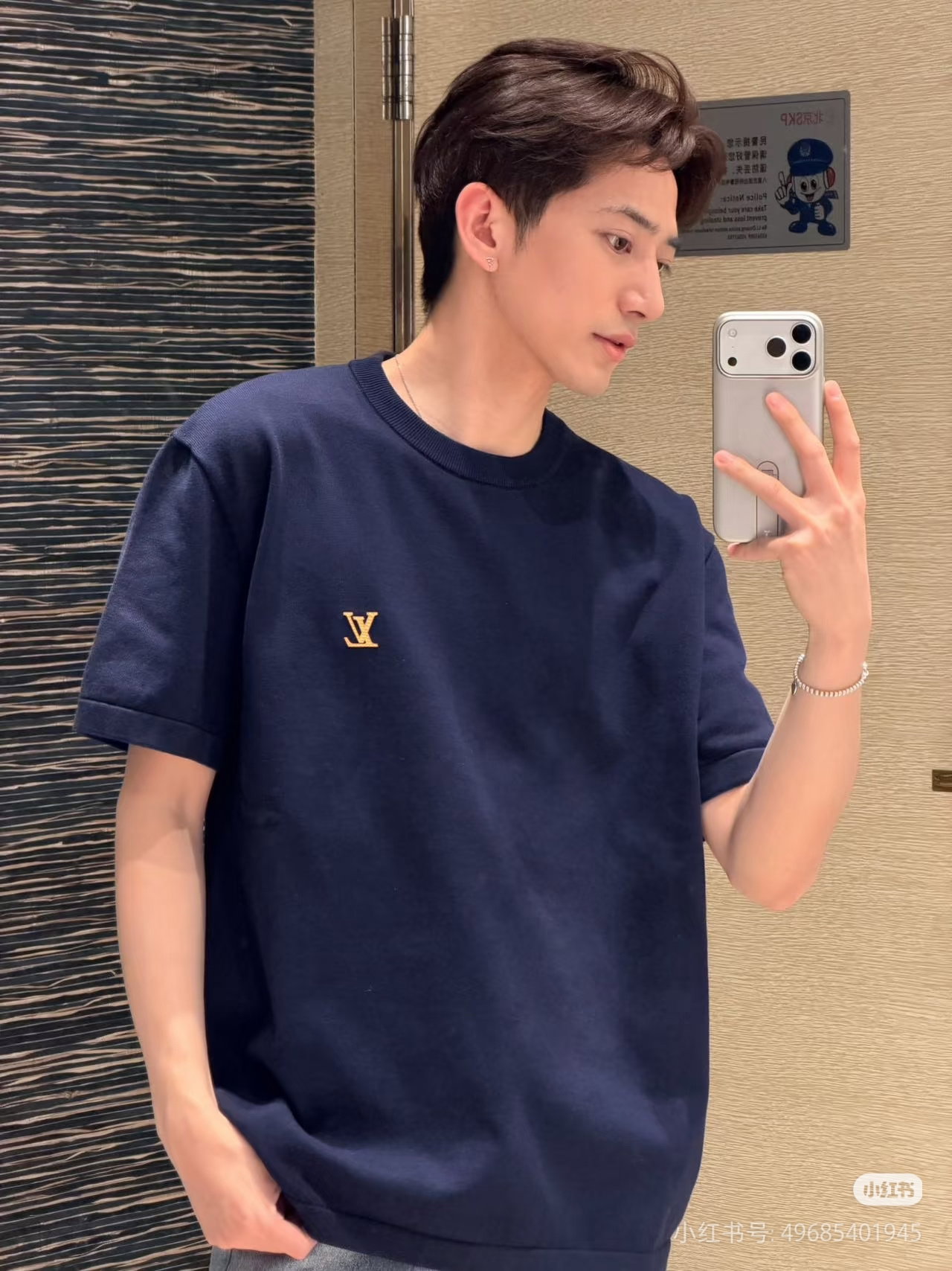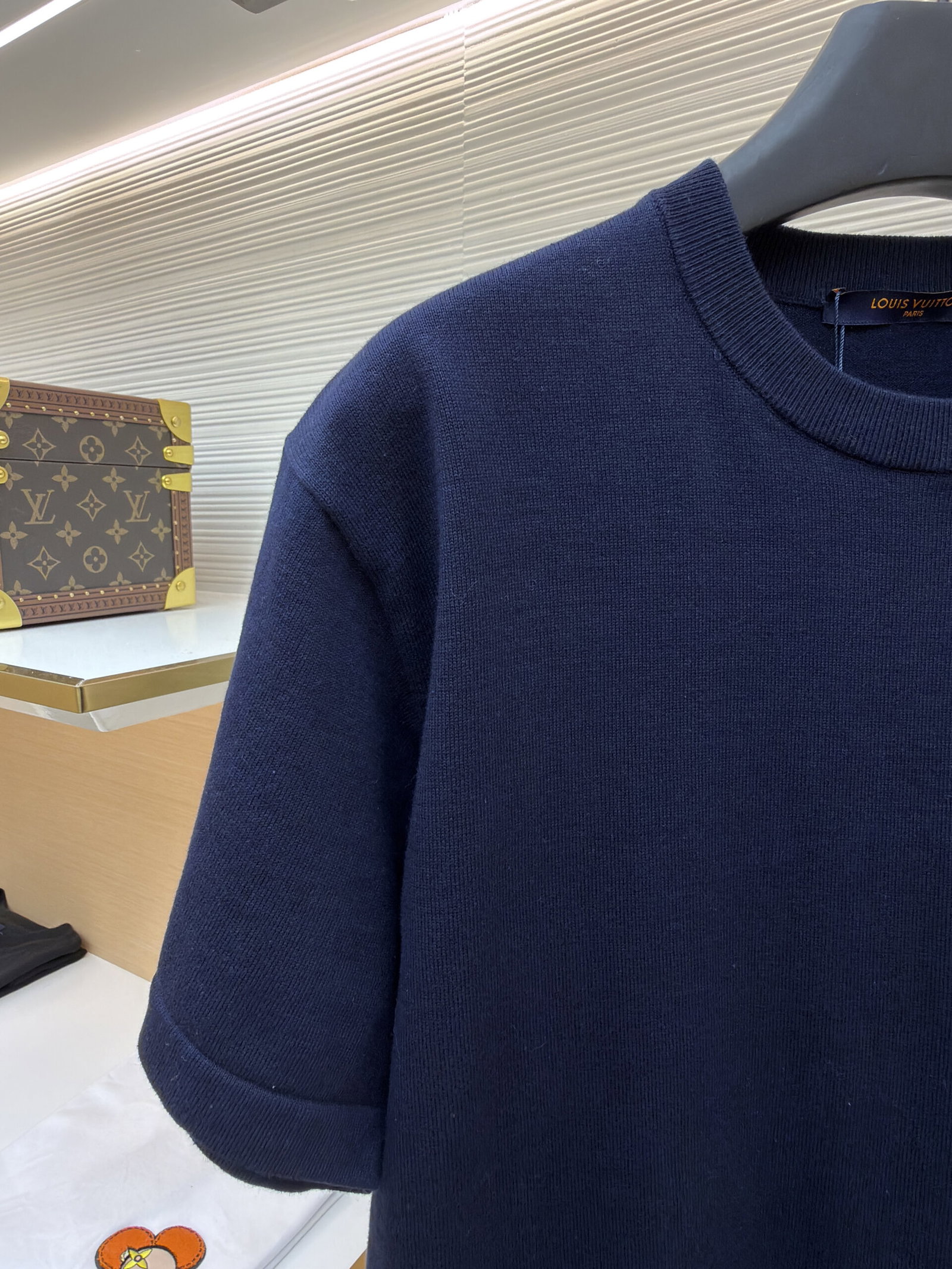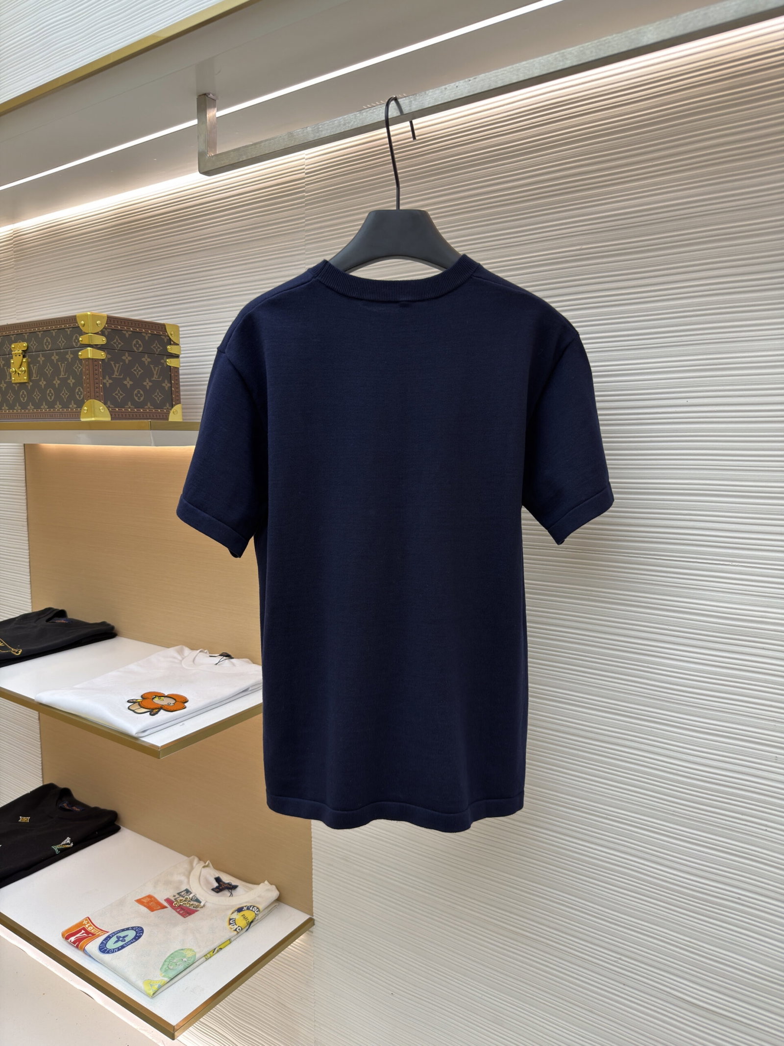 Louis Vuitton Leather logo loose Round neck T-shirt Navy ルイ ヴィトン レザー logo ゆったり クルーネック Tシャツ ネイビー