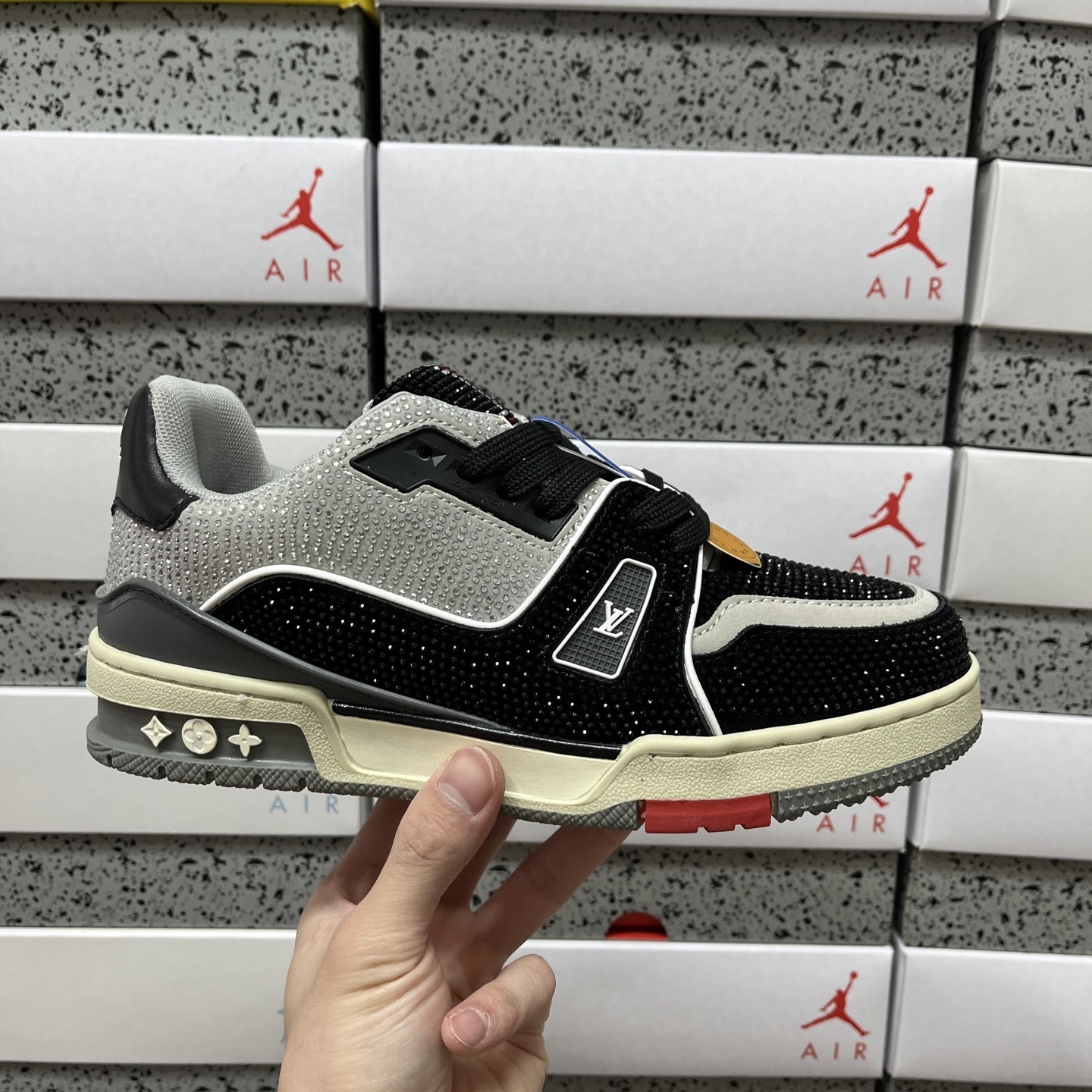 LOUIS VUITTON LV Trainer low-top sneakers rhinestone Black/Gray トレイナー ローカットスニーカー ラインストーン ブラック/グレー 1AA6PR