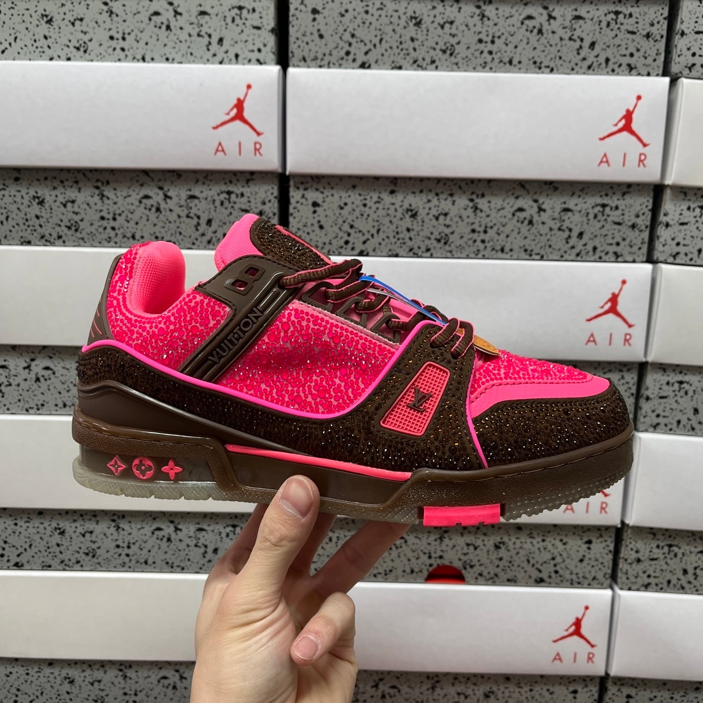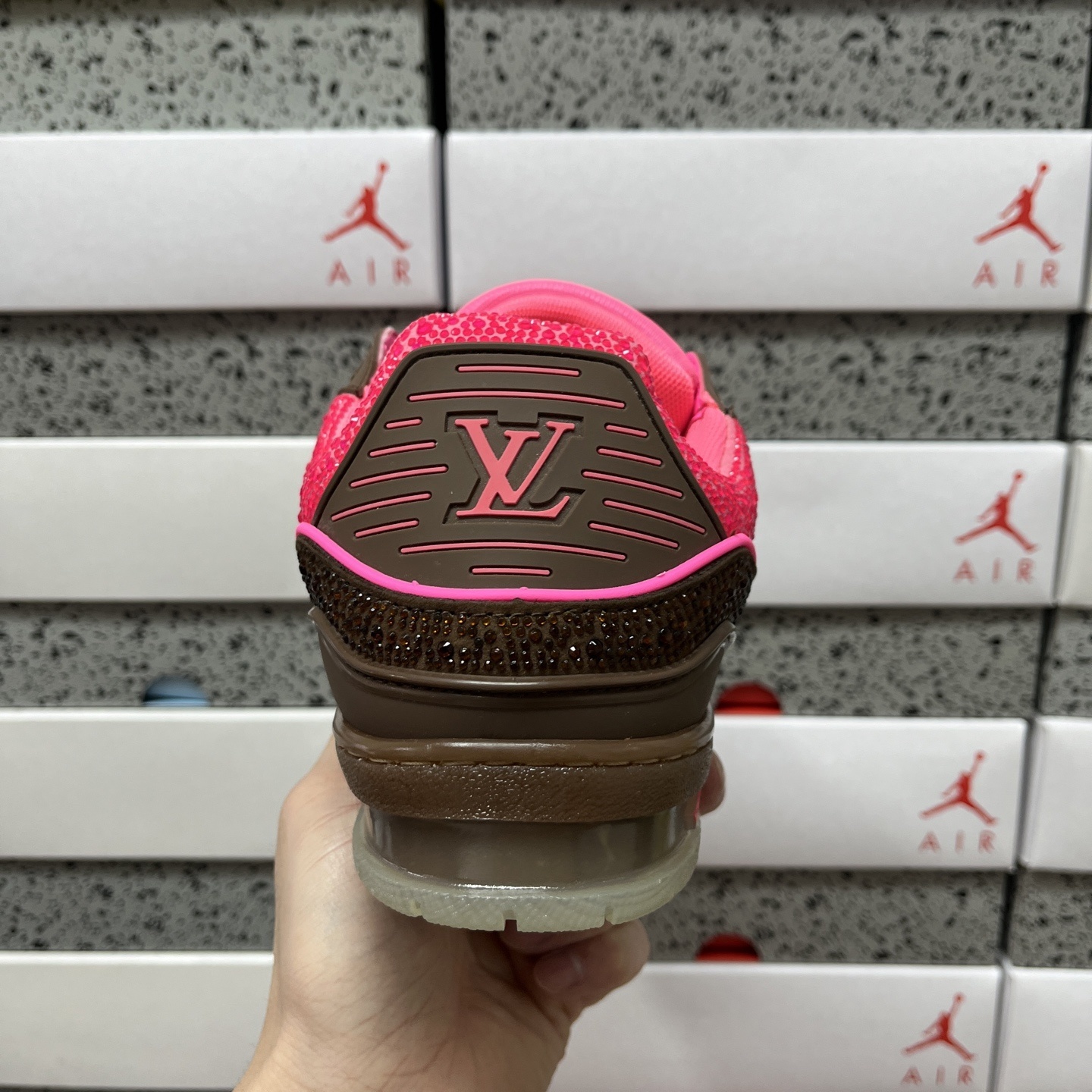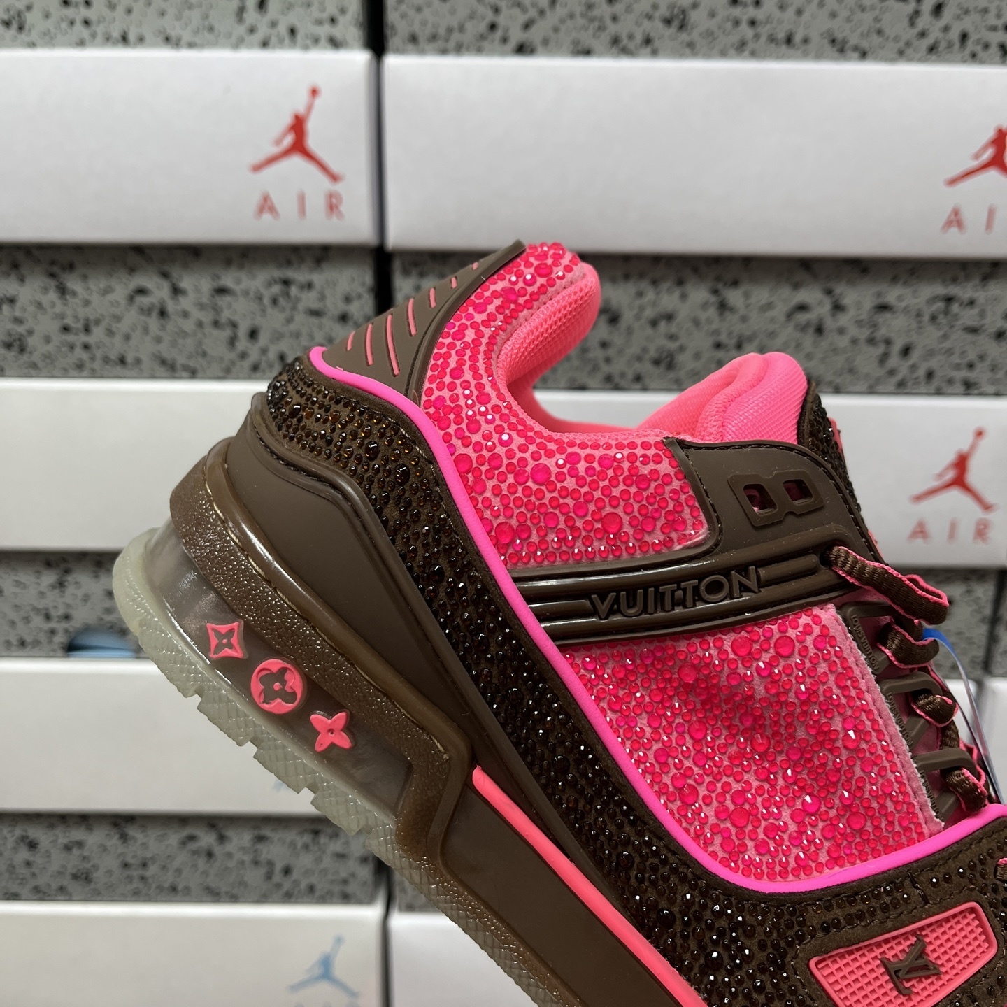 LOUIS VUITTON LV Trainer low-top sneakers rhinestone Pink/Brown トレイナー ローカットスニーカー ラインストーン ピンク/ブラウン 1A8Z6Y