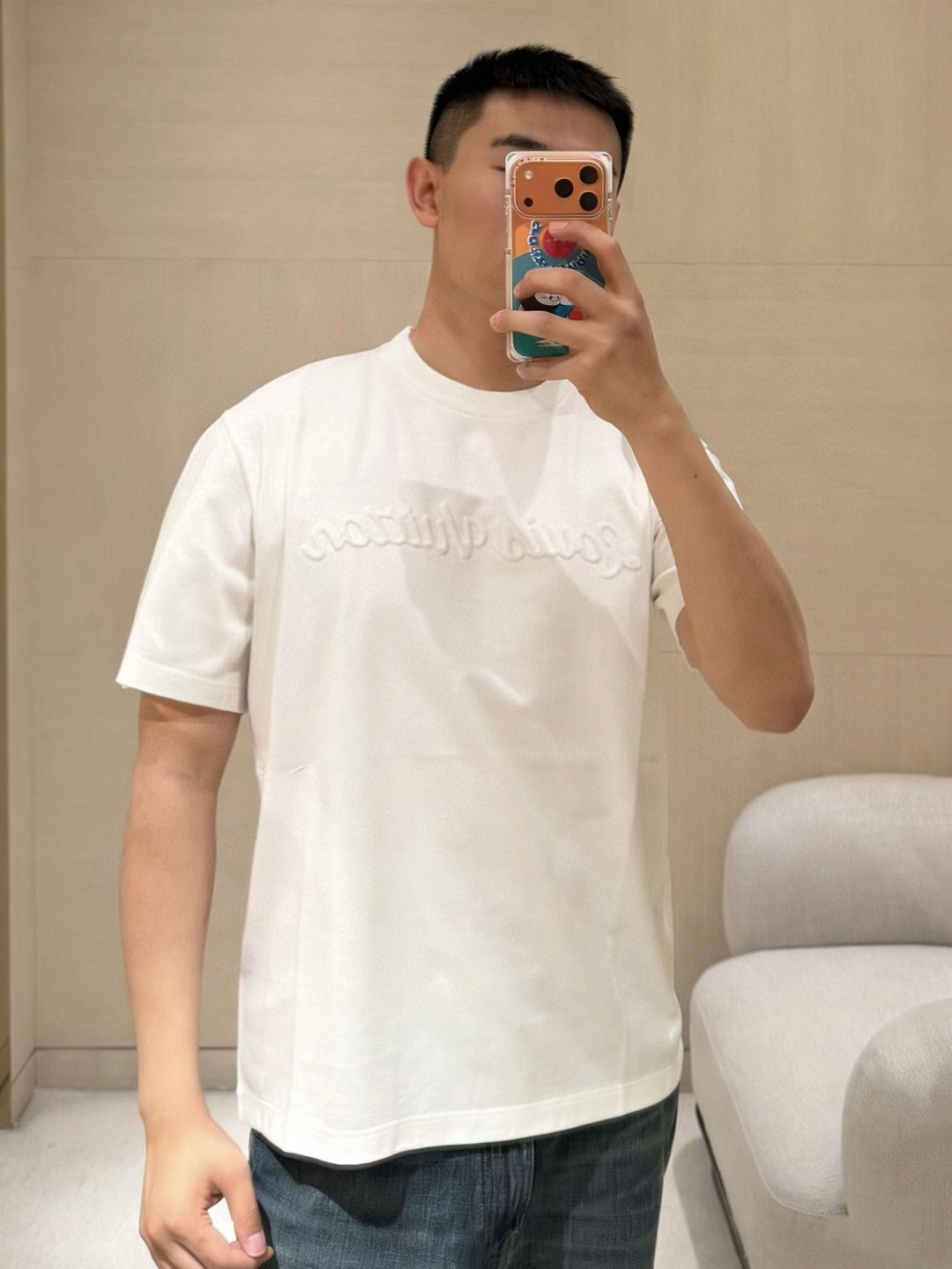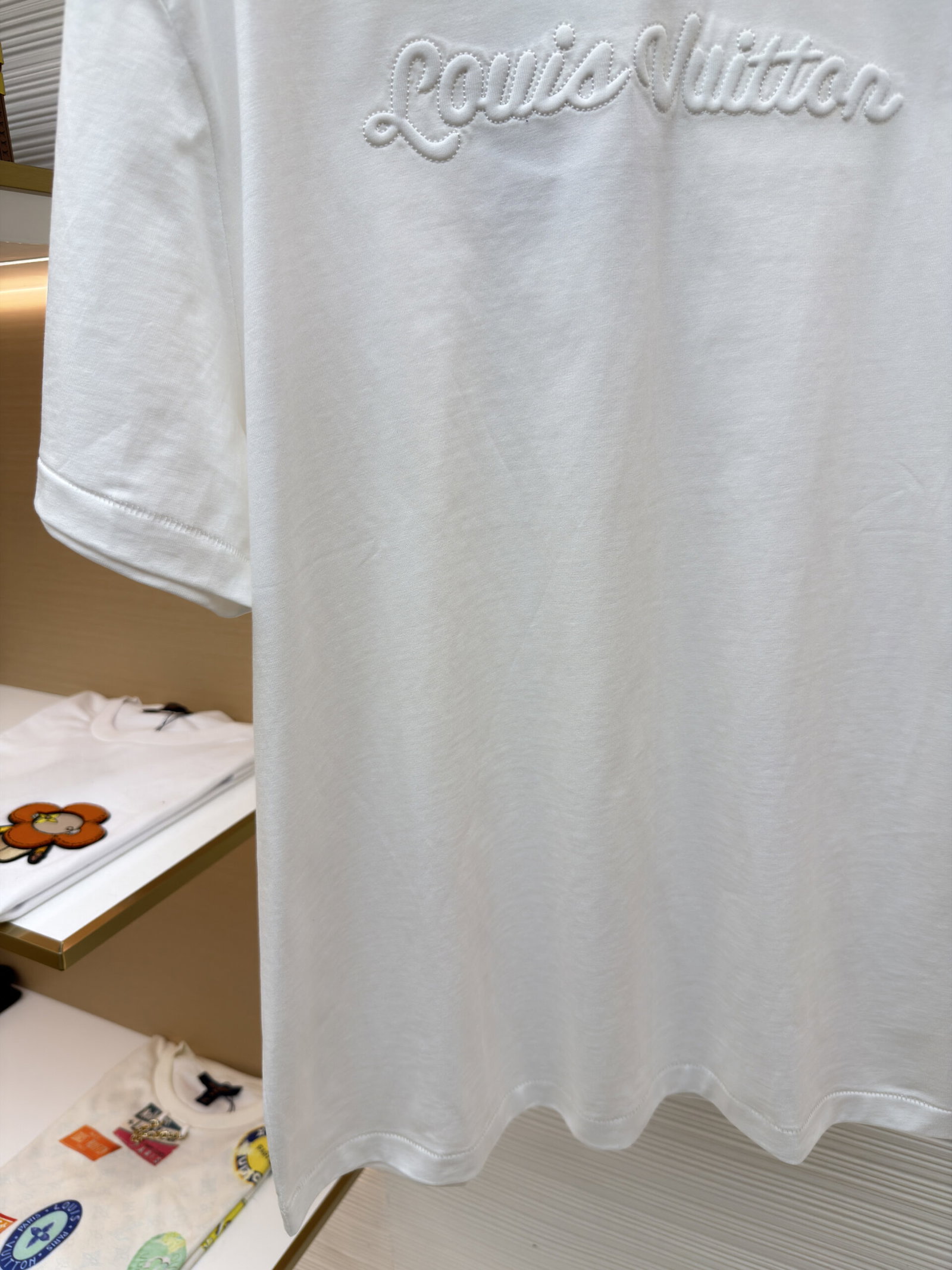 Louis Vuitton monogram Letter logo loose Round neck T-shirt White ルイ ヴィトン エンボス モジ logo ゆったり クルーネック Tシャツ ホワイト