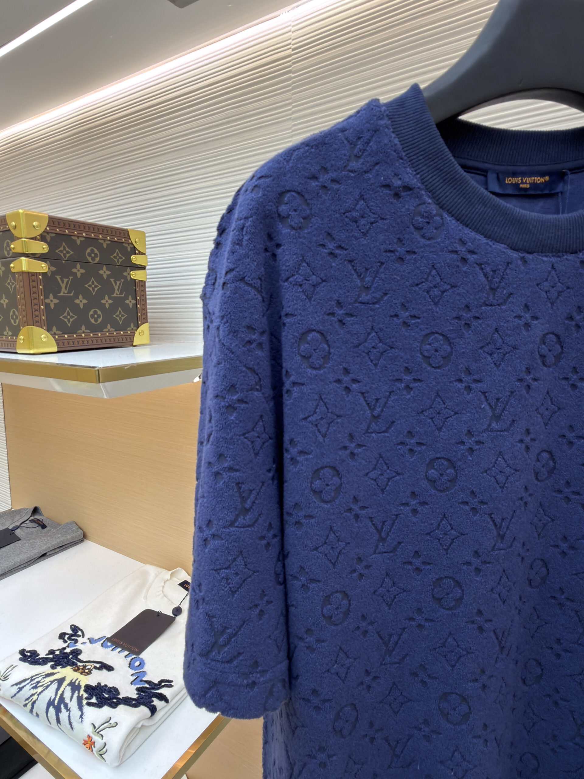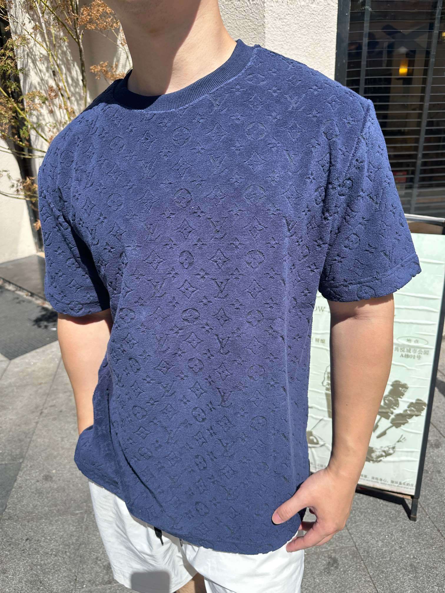 Louis Vuitton monogram relief embossing loose Round neck T-shirt Navy ルイヴィトン モノグラムエンボス ゆったり クルーネック Tシャツ ネイビー