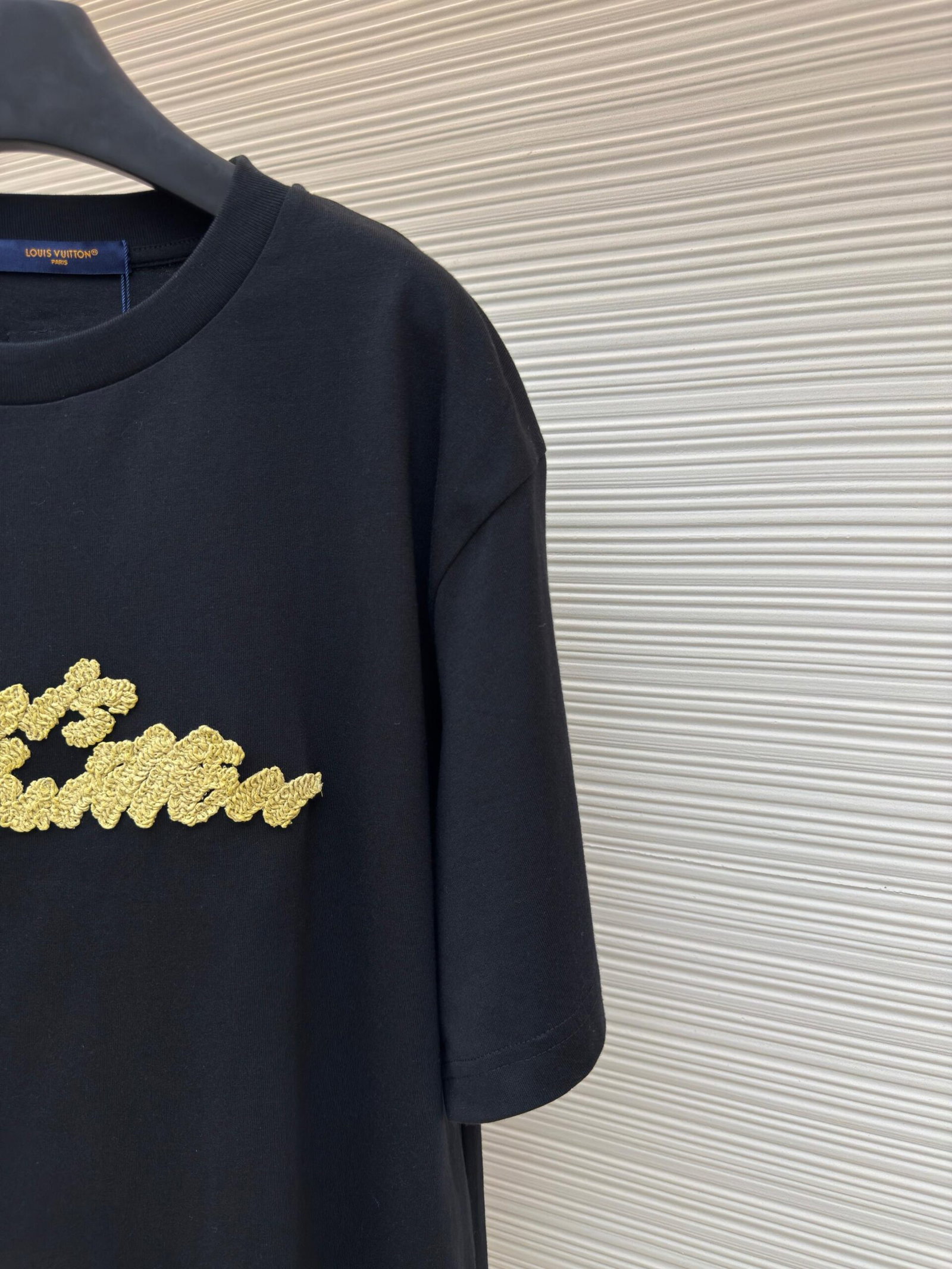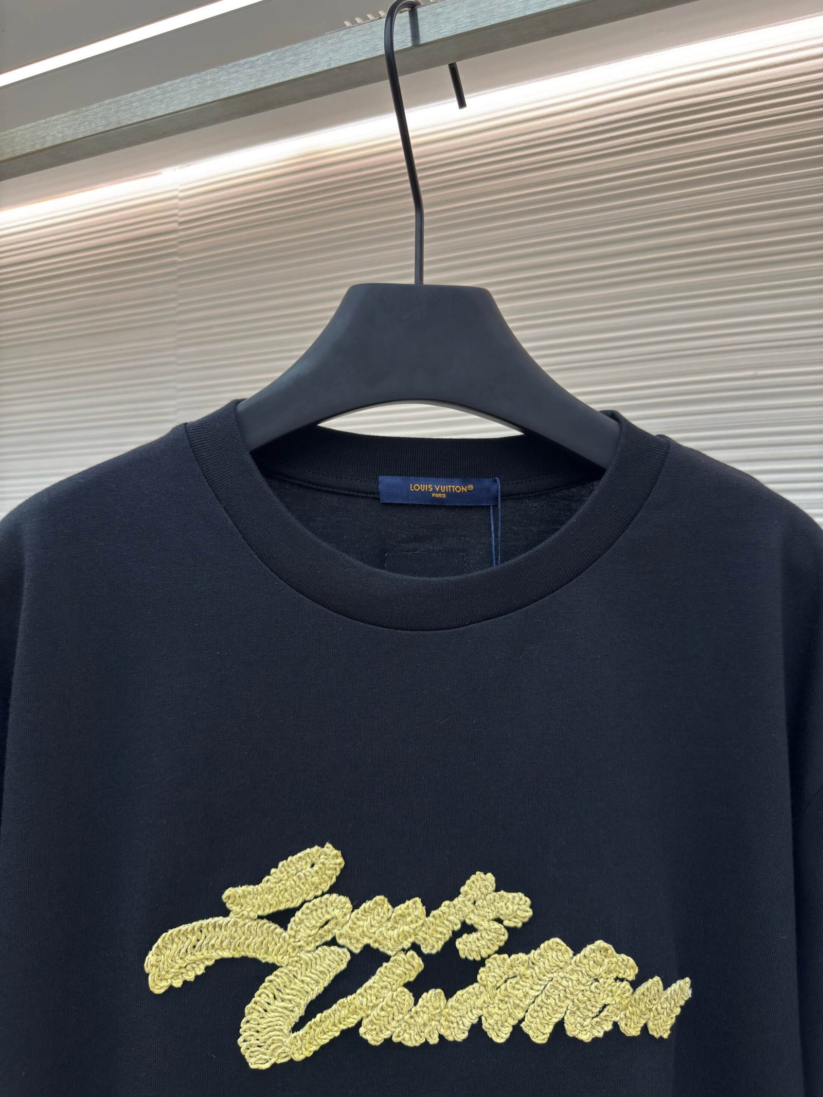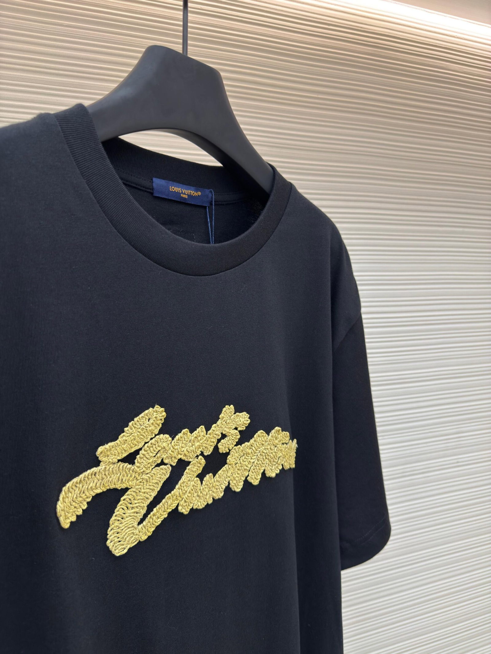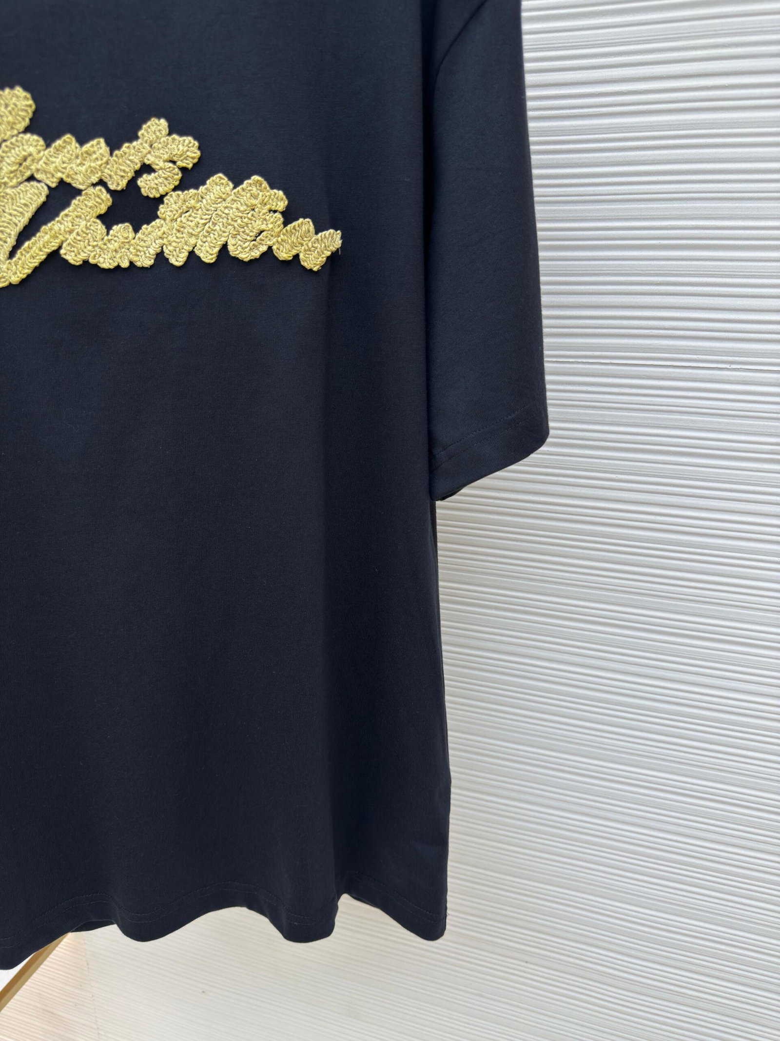 Louis Vuitton patch Embroidery LOGO pattern loose Round neck T-shirt Black ルイ ヴィトン アップリケ 刺繍 LOGO パターン ゆったり クルーネック Tシャツ ブラック