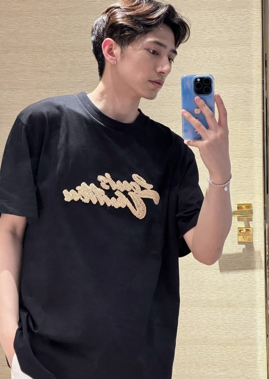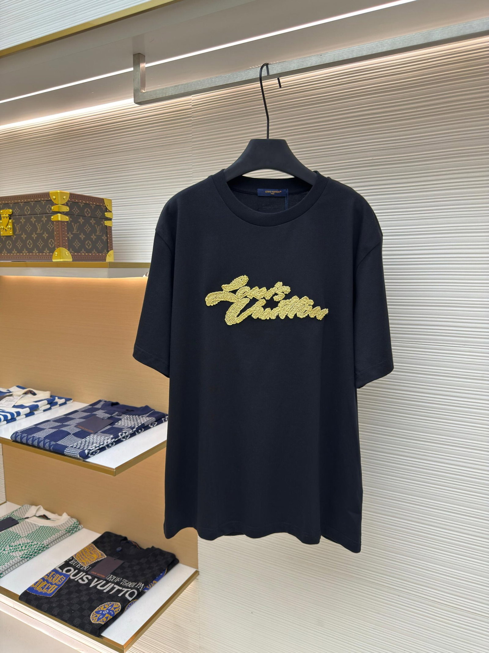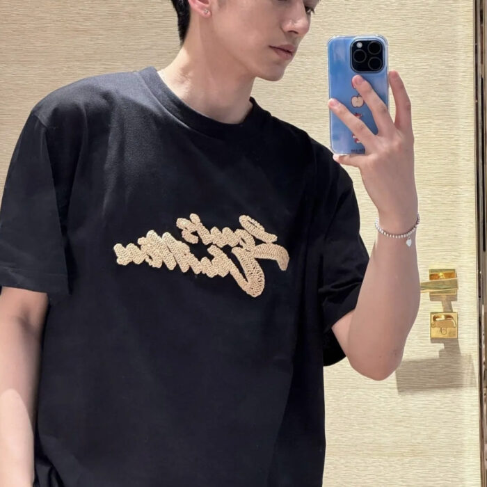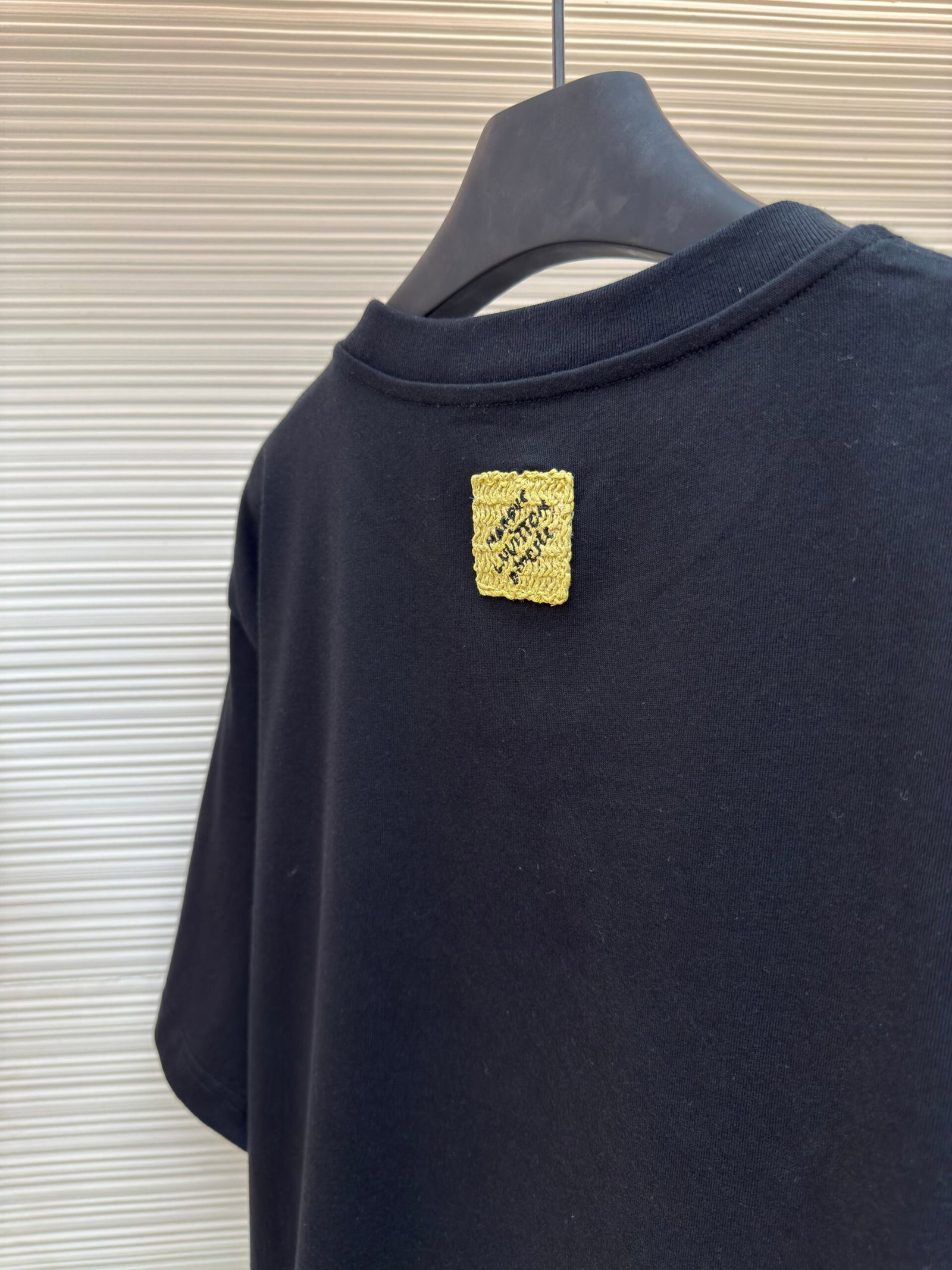 Louis Vuitton patch Embroidery LOGO pattern loose Round neck T-shirt Black ルイ ヴィトン アップリケ 刺繍 LOGO パターン ゆったり クルーネック Tシャツ ブラック