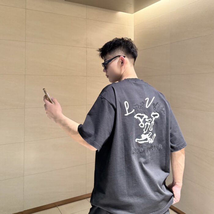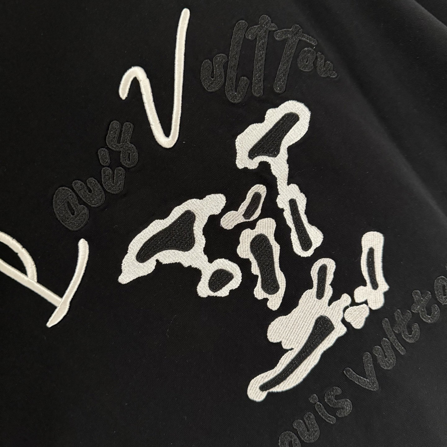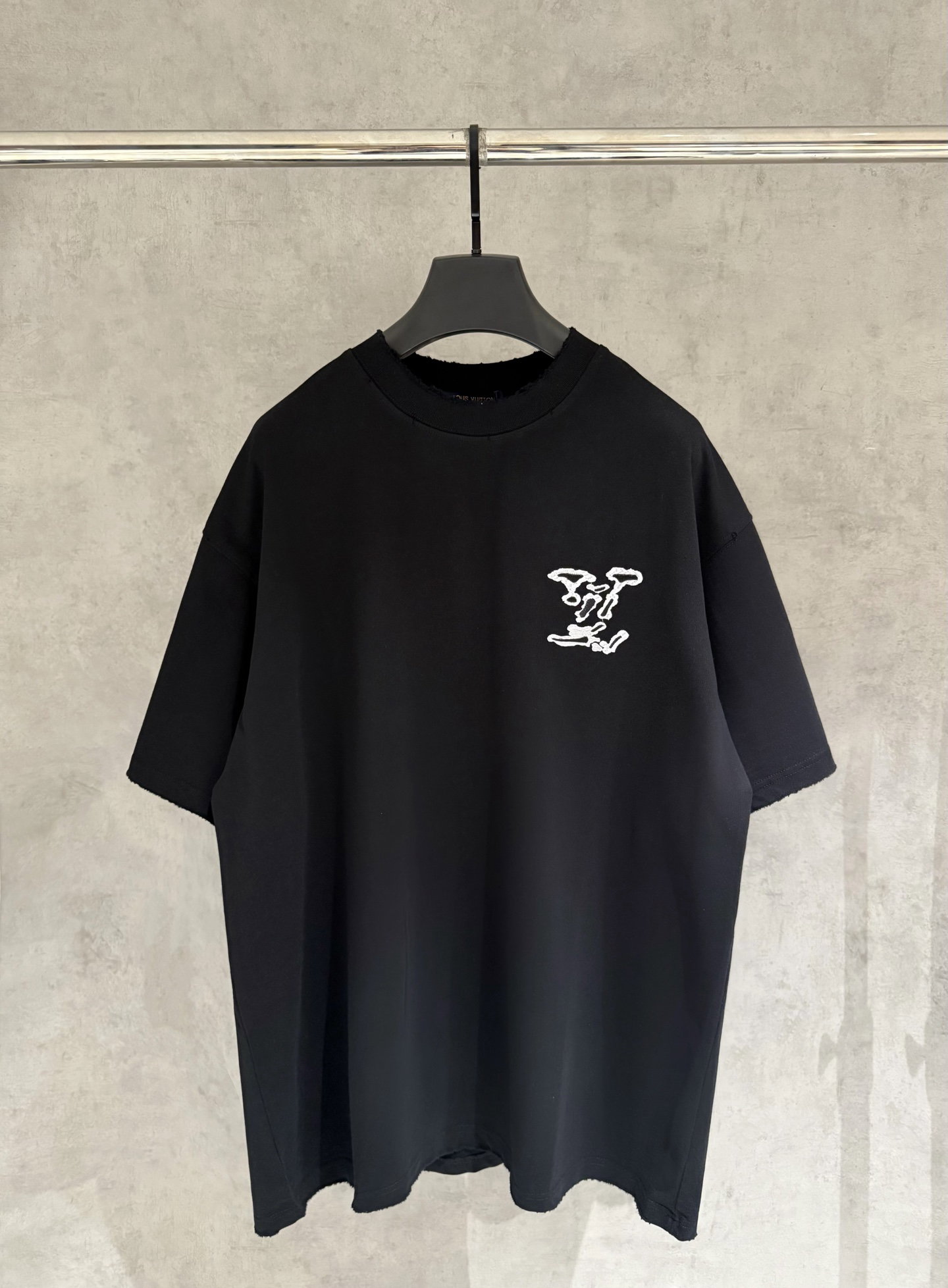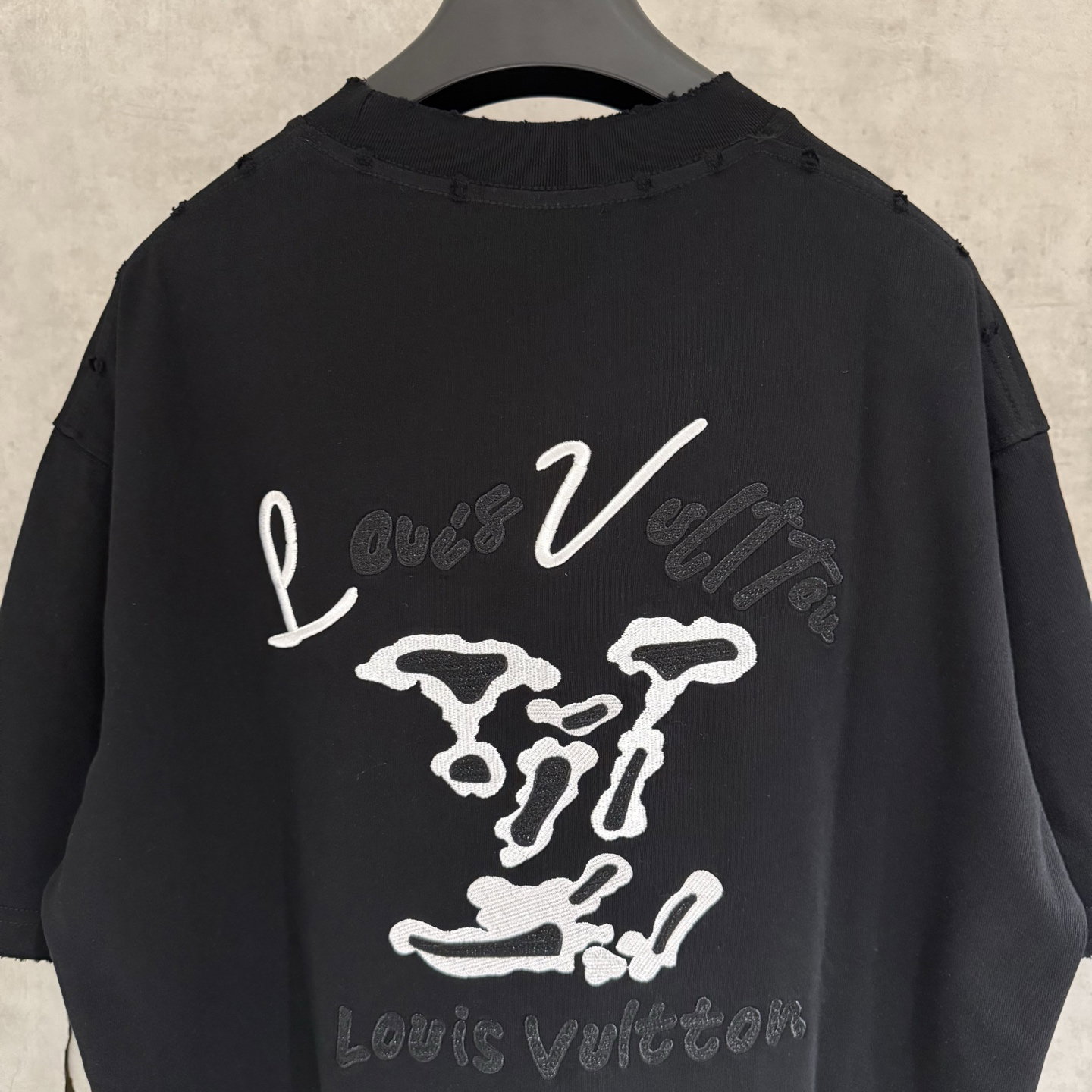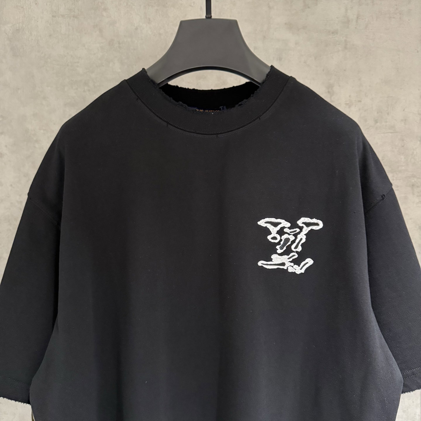Louis Vuitton patch Embroidery pattern loose Round neck T-shirt Black ルイ ヴィトン アップリケ 刺繍 パターン ゆったり クルーネック Tシャツ ブラック