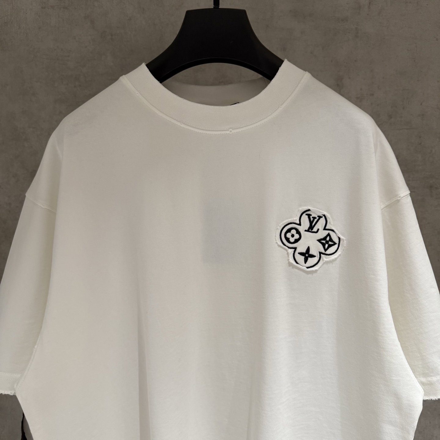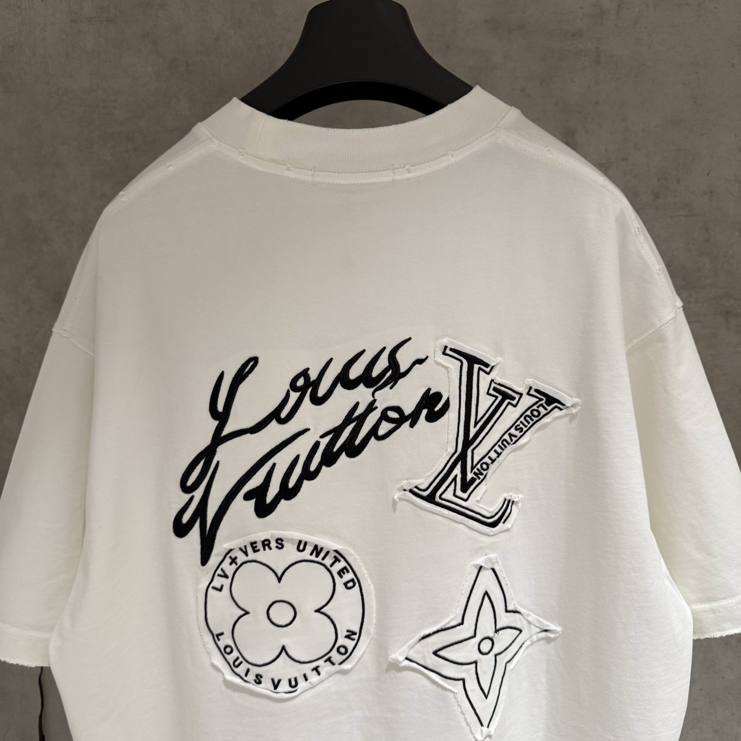 Louis Vuitton patch Embroidery LOGO pattern loose Round neck T-shirt White ルイ ヴィトン アップリケ 刺繍 LOGO パターン ゆったり クルーネック Tシャツ ホワイト