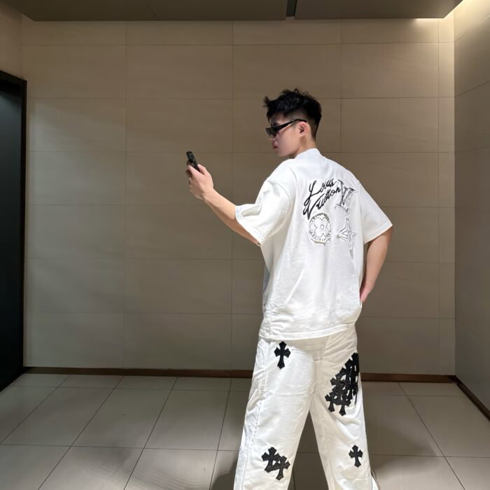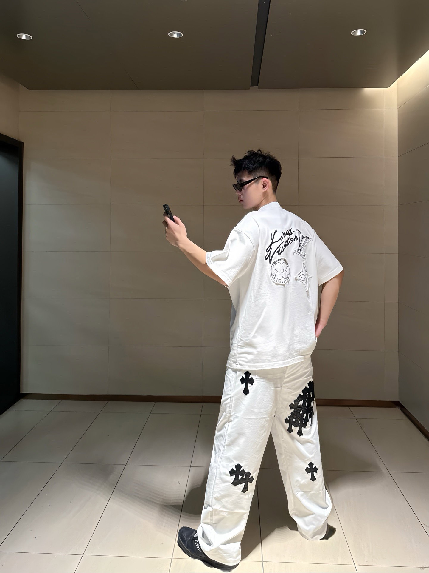 Louis Vuitton patch Embroidery pattern loose Round neck T-shirt White ルイ ヴィトン アップリケ 刺繍 パターン ゆったり クルーネック Tシャツ ホワイト