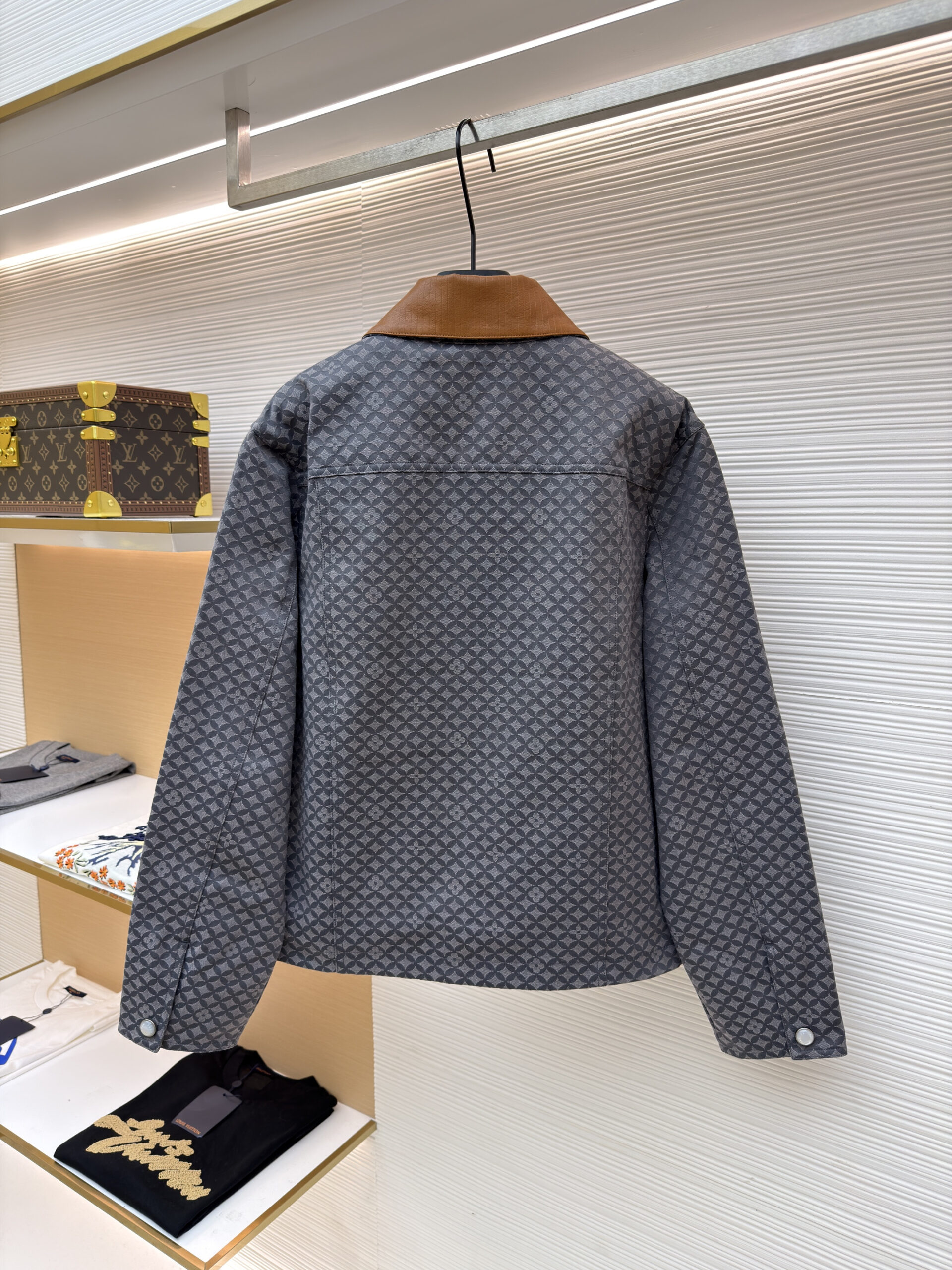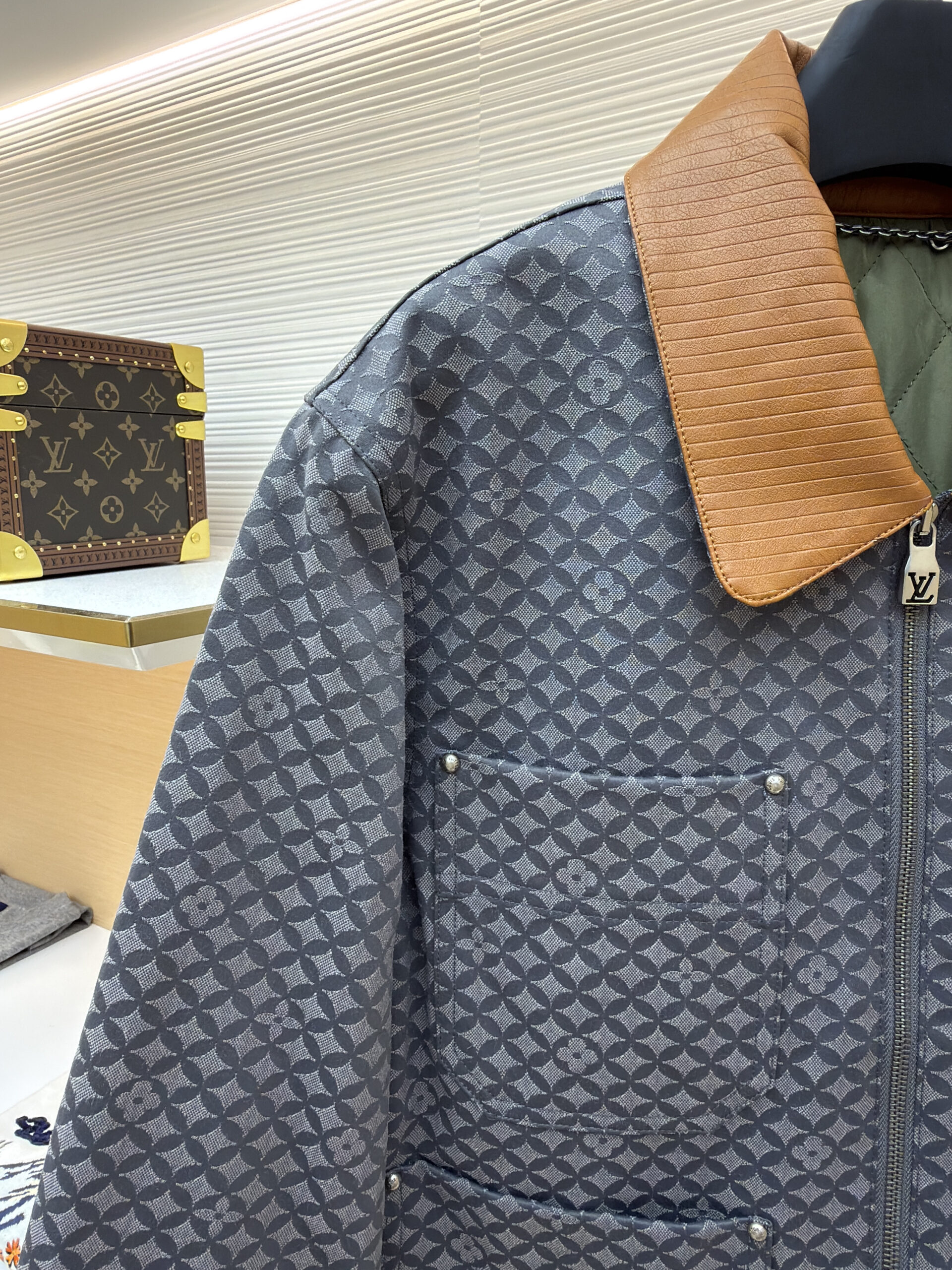 Louis Vuitton Plaid Leather Collar ZIP-UP JACKET ルイヴィトン 格子柄 レザーネック ジップアップ ジャケット