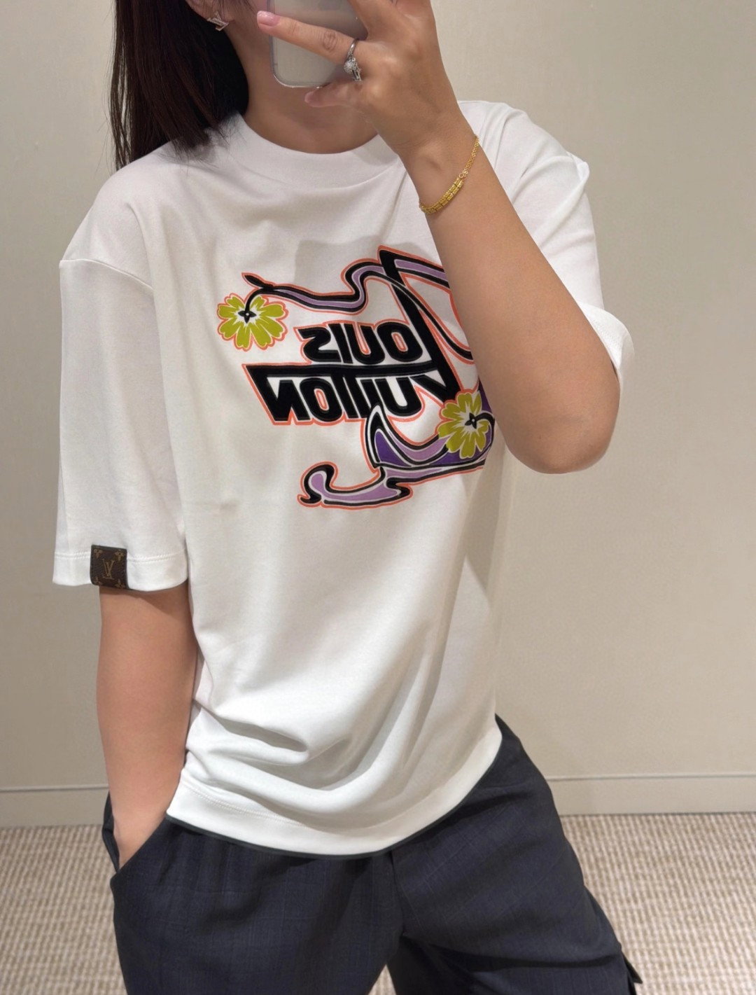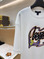 Louis Vuitton Embroidery logo loose Round neck dirty T-shirt White ルイ ヴィトン 刺繍 logo ゆったり クルーネック 汚い Tシャツ ホワイト
