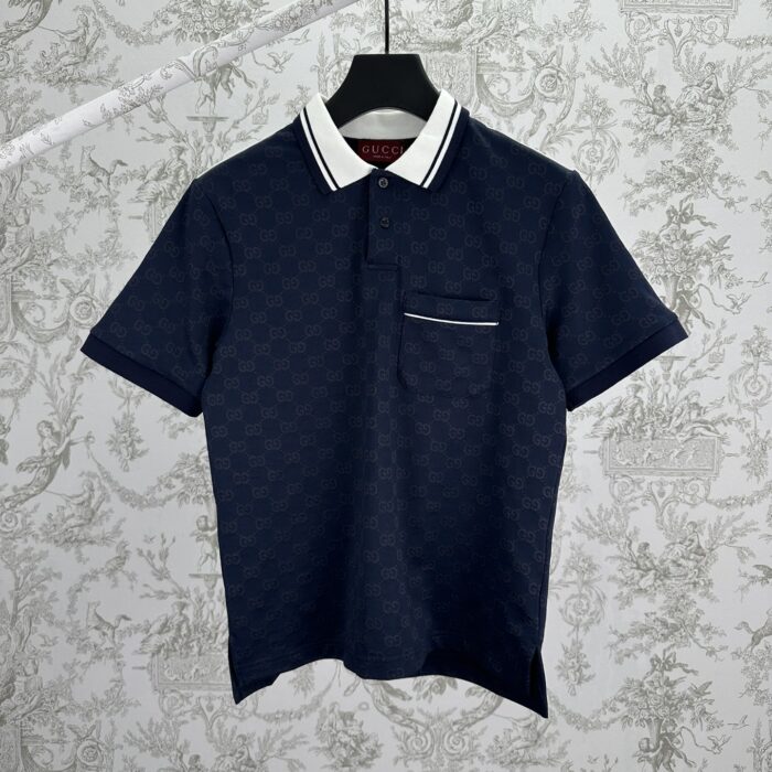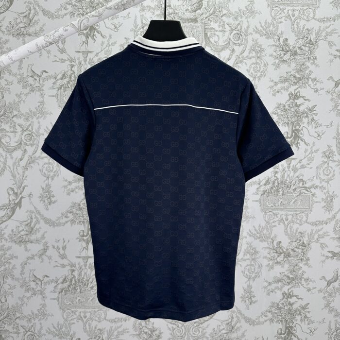 GUCCI Embroidery pattern POLO Neck T-shirt Navy グッチ 刺繍 パターン POLO ネック Tシャツ ネイビー