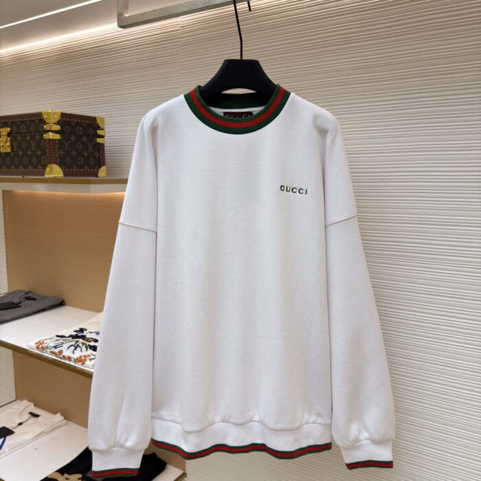 GUCCI Embroidery LOGO Round neck Sweatshirt White グッチ 刺繍 LOGO クルーネック スウェット ホワイト
