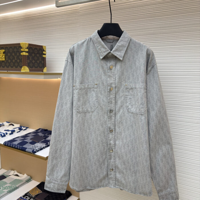 DIOR Print LOGO DENIM Long-sleeve Shirt jacket Gray ディオール プリントLOGO デニム 長袖シャツ ジャケット グレー