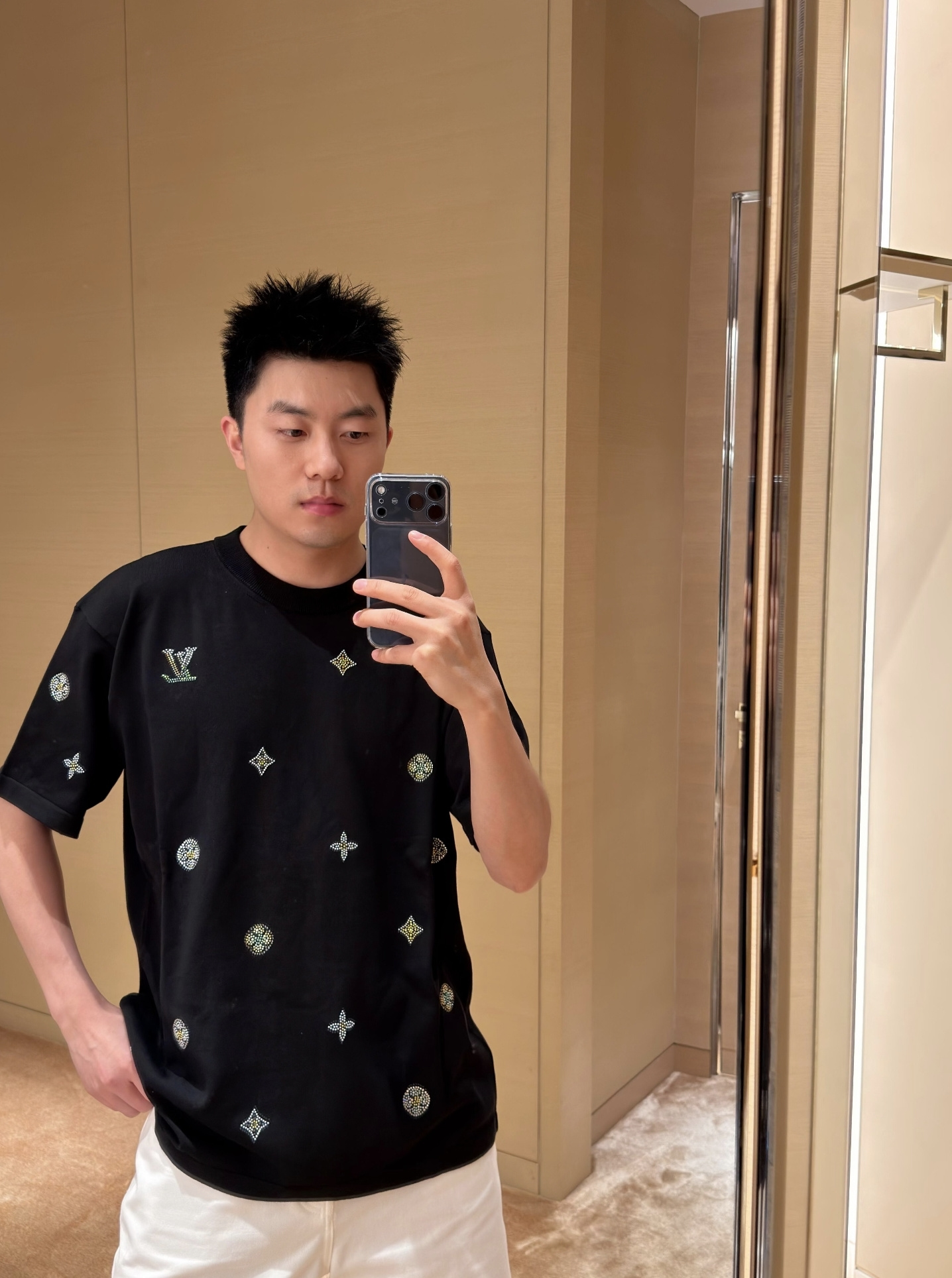 Louis Vuitton rhinestone logo Round neck T-shirt Black ルイヴィトン ラインストーン logo クルーネック Tシャツ ブラック