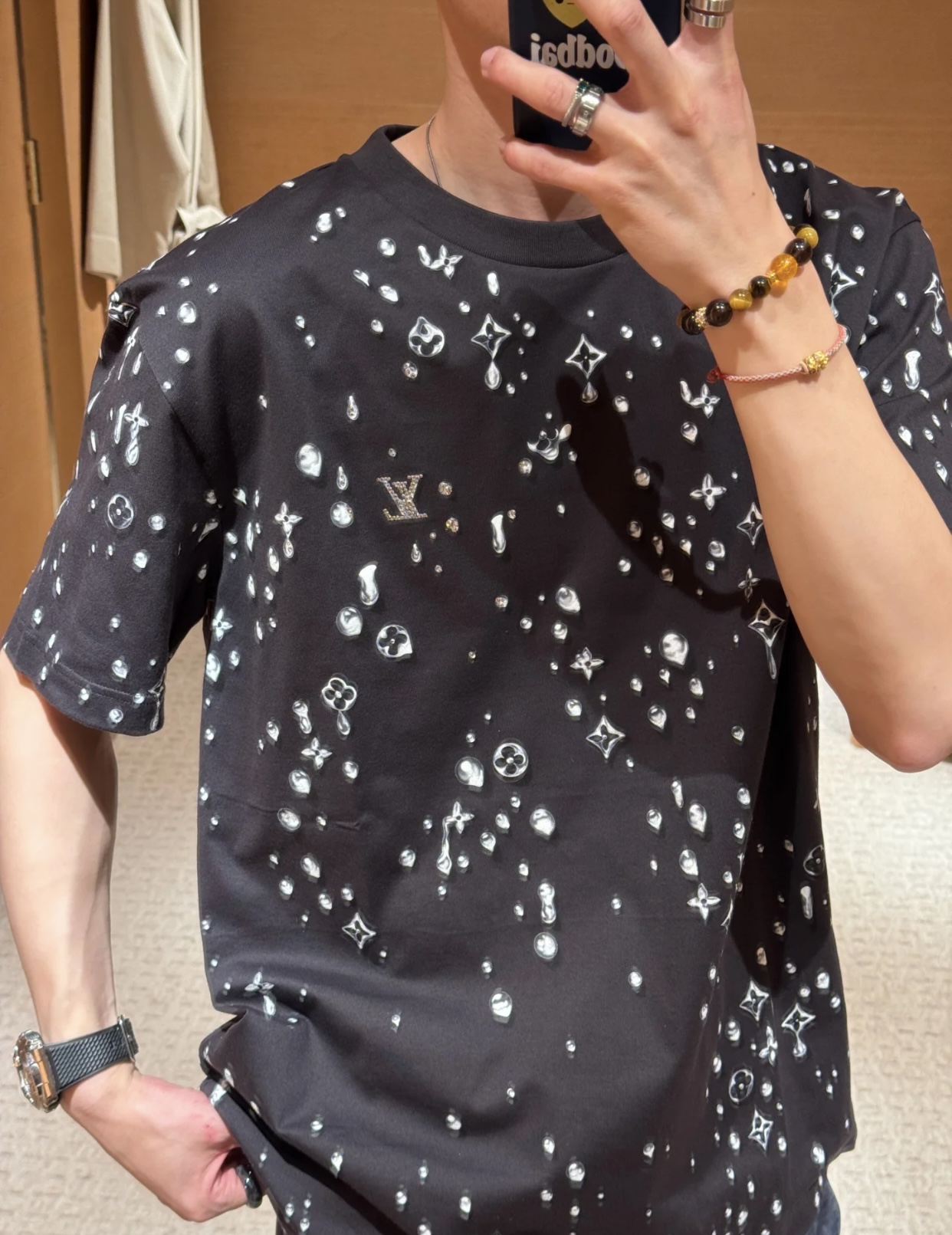 Louis Vuitton Round neck Print pattern T-shirt Black ルイヴィトン プリント パターン Tシャツ ブラック