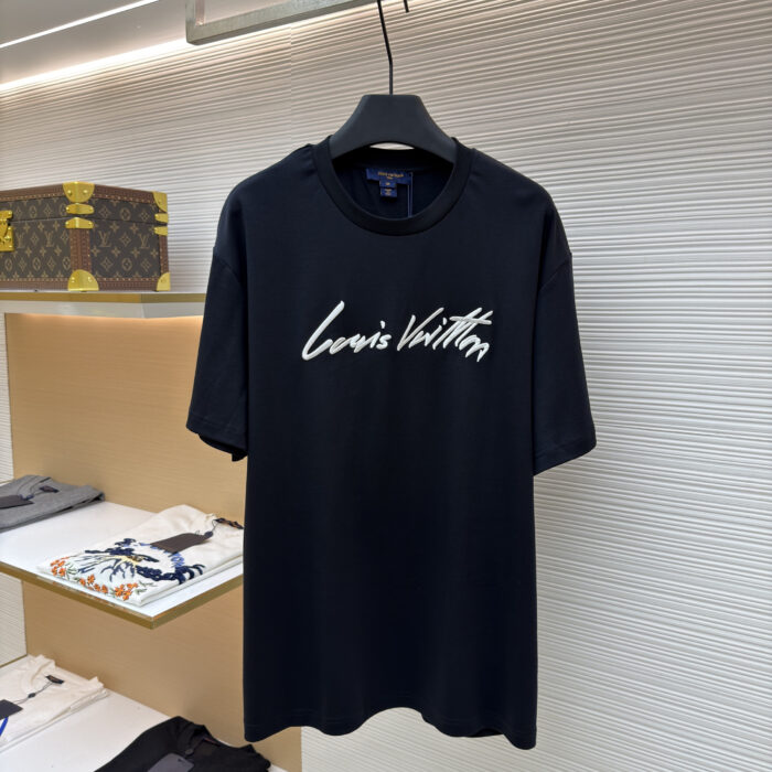 Louis Vuitton Embroidery logo loose Round neck T-shirt Black ルイヴィトン 刺繍 logo ゆったり クルーネック Tシャツ ブラック