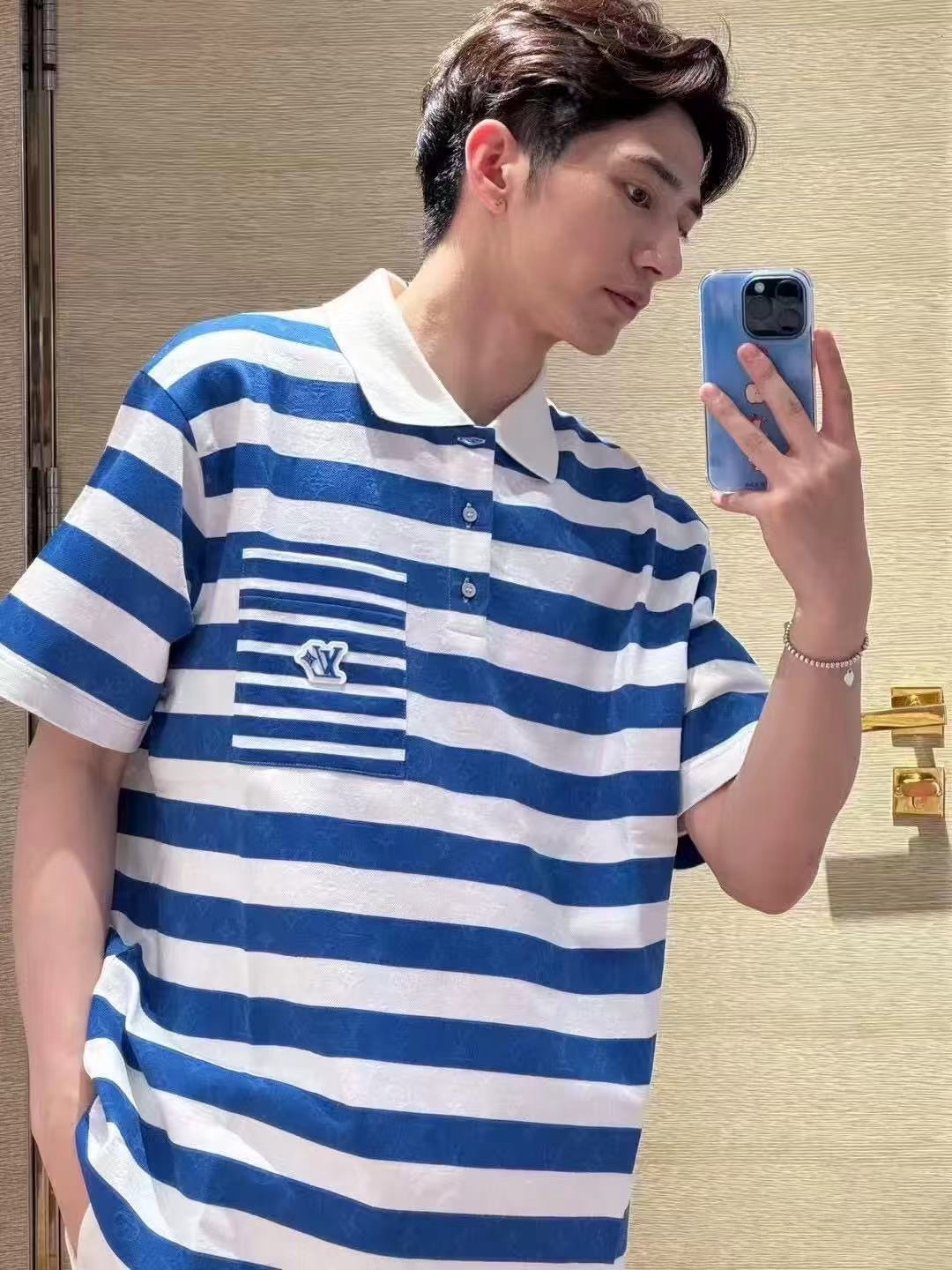 Louis Vuitton stripe loose polo Neck T-shirt ルイヴィトン ストライプ ゆったり polo ネック Tシャツ