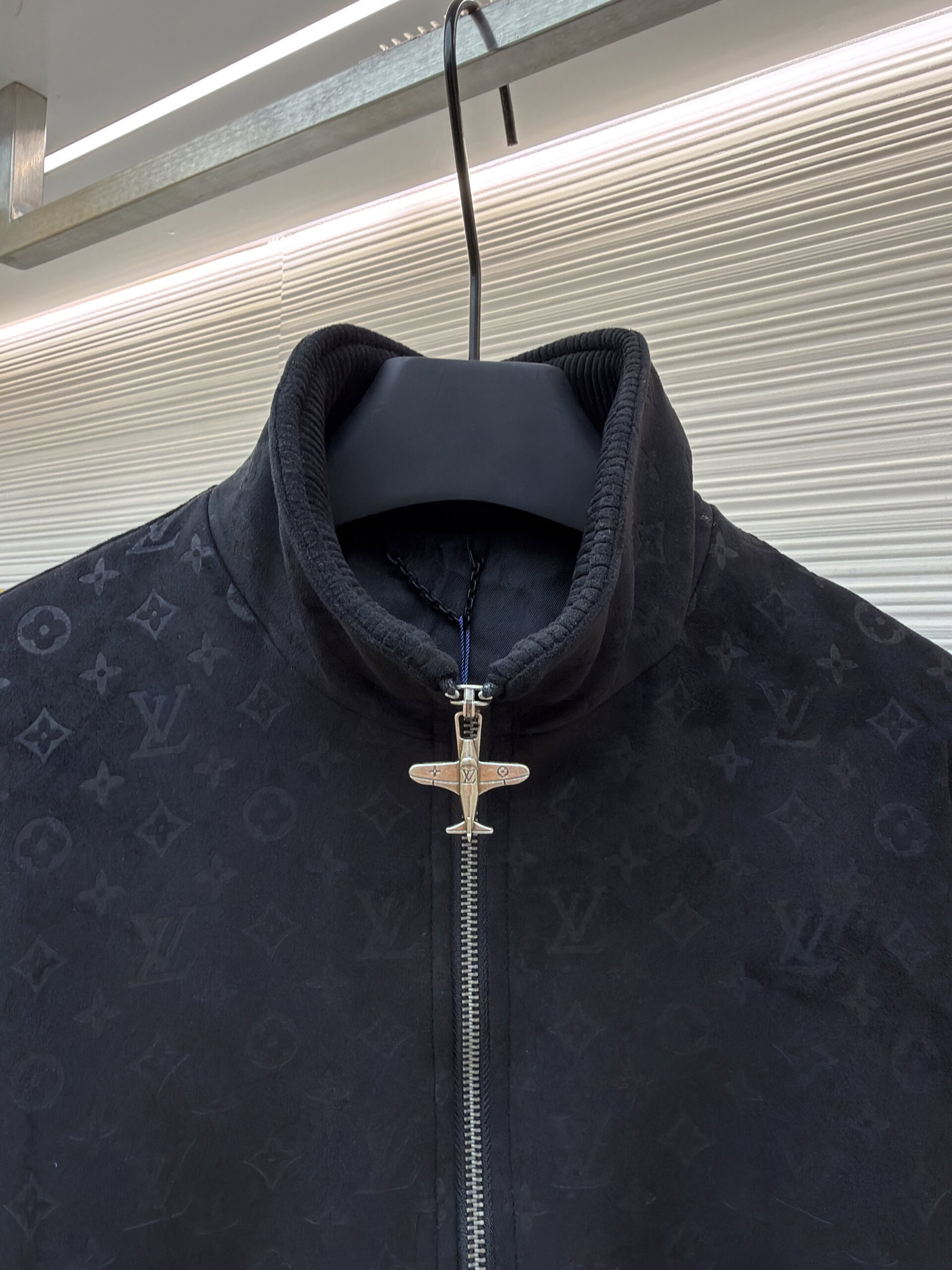 Louis Vuitton suede Print hidden pattern ZIP-UP JACKET Black ルイヴィトン スエード プリント シャドウストライプ ジップアップ ジャケット ブラック