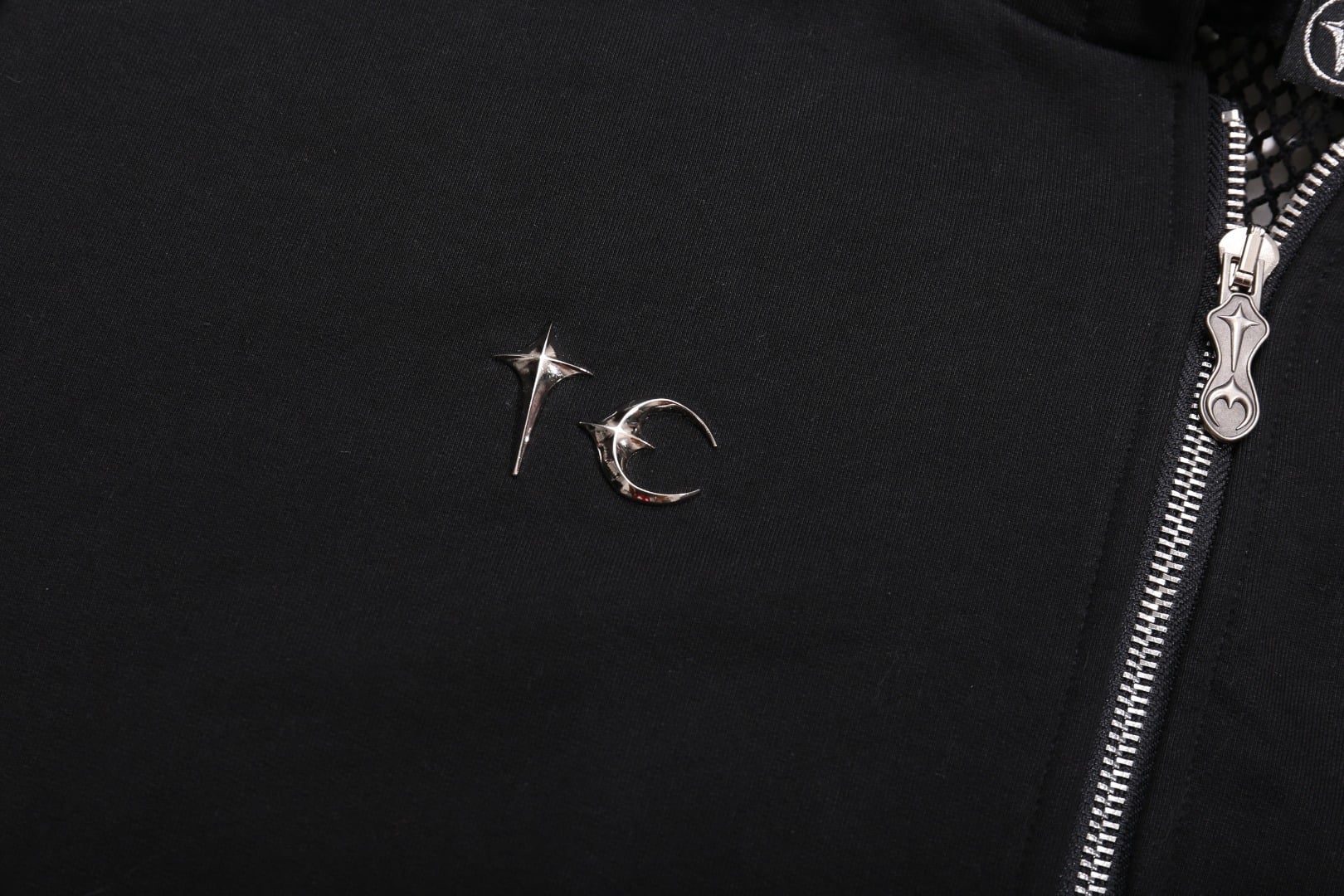 THUG CLUB hardware letter logo loose ZIP-UP HOODIE Black サグクラブ ハードウェアレター logo ゆったり ジップアップパーカー ブラック