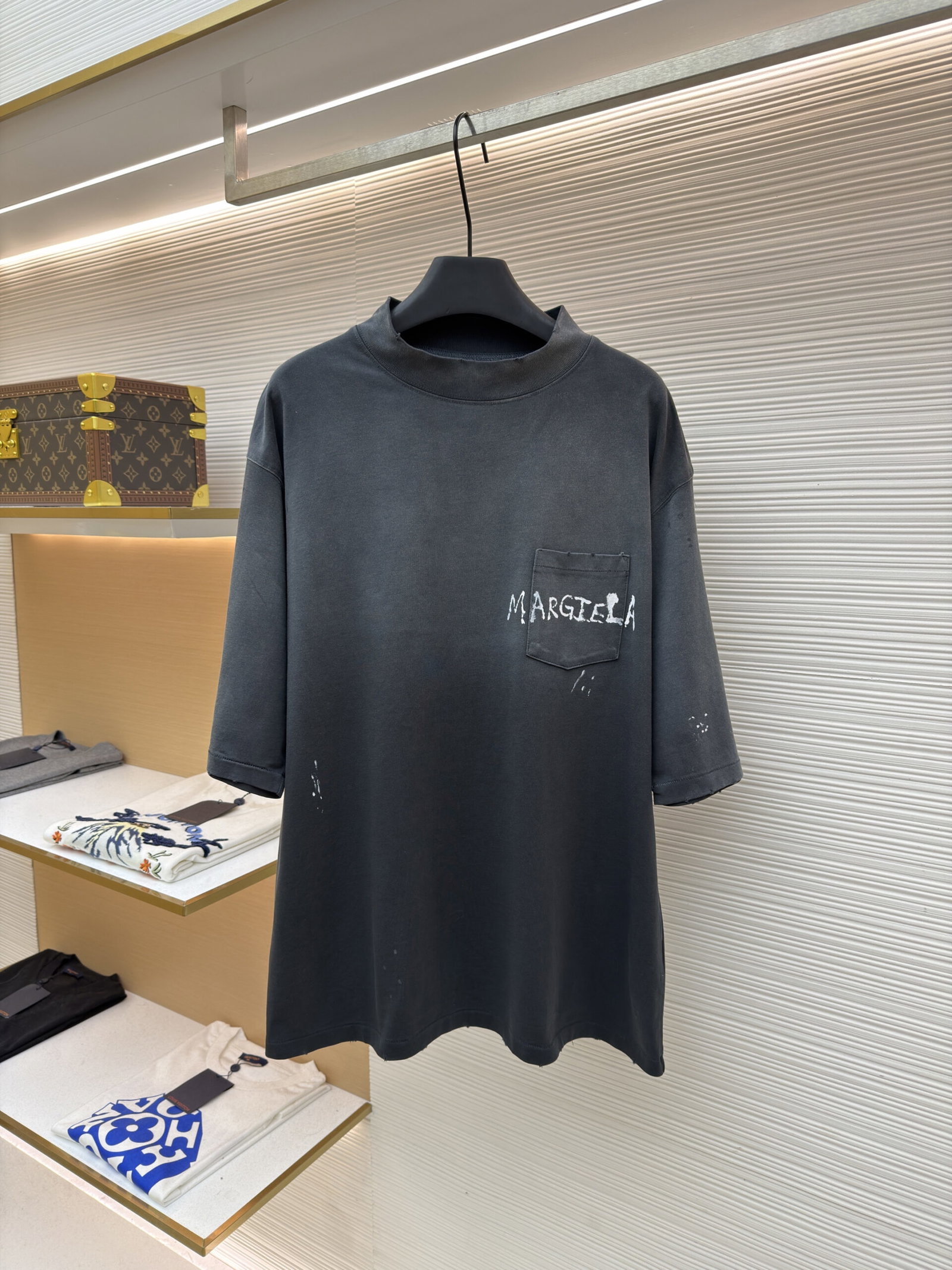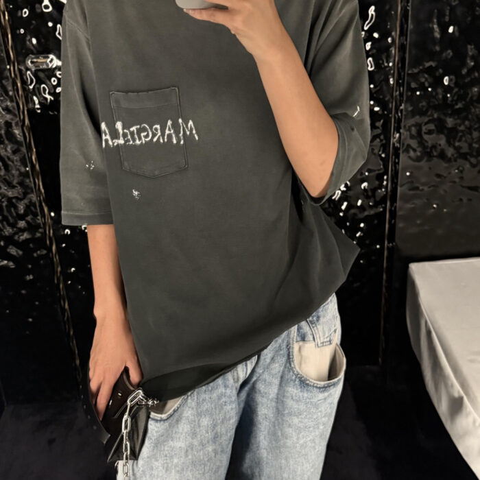 Maison Margiela pocket graffiti logo loose Round neck T-shirt Black メゾン マルジェラ ポケット グラフィティ logo ゆったり クルーネック Tシャツ ブラック