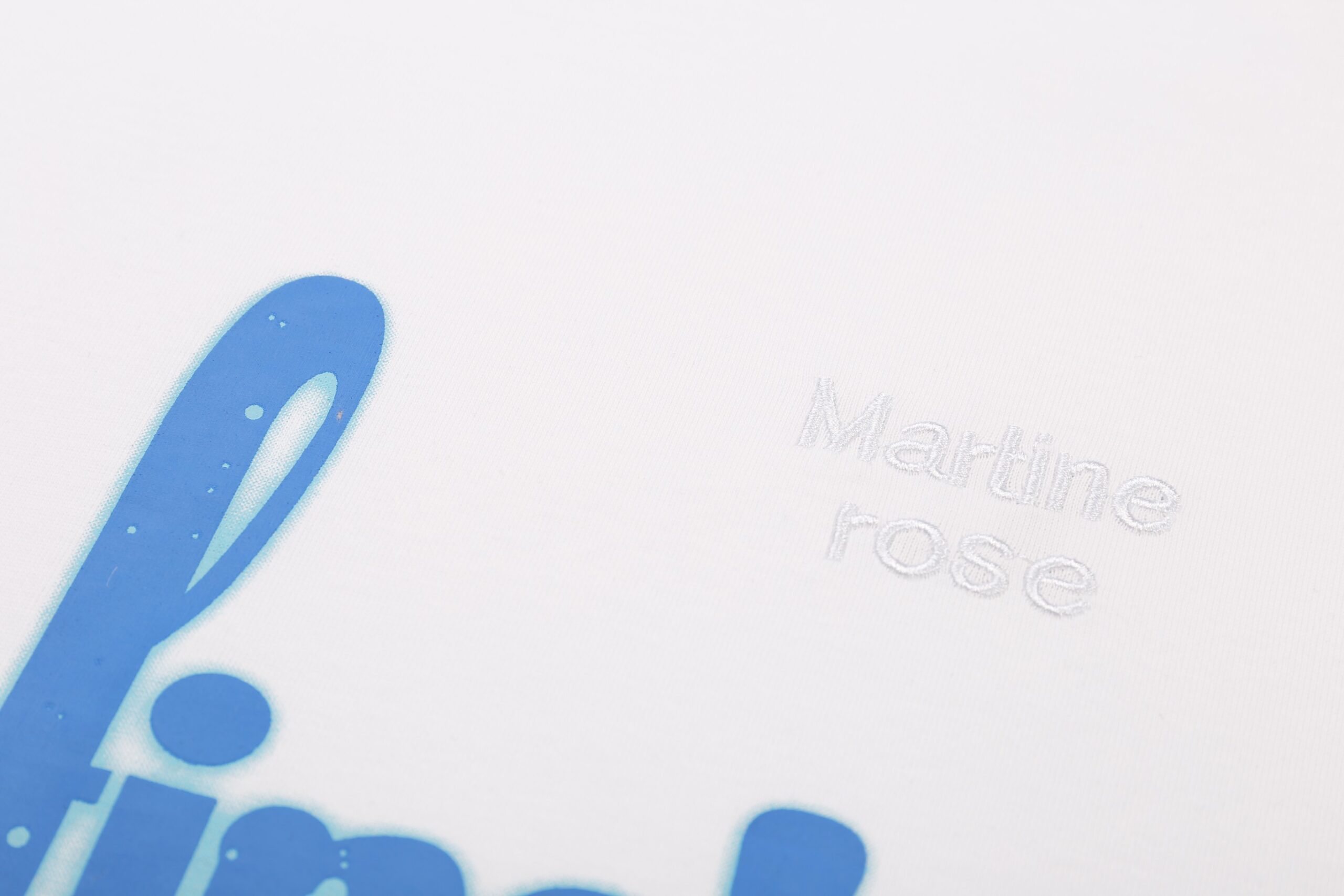 Martine rose Print Blue Letter logo Round neck loose T-shirt White マーティーン ローズ プリント ブルー モジ logo クルーネック ゆったり Tシャツ ホワイト