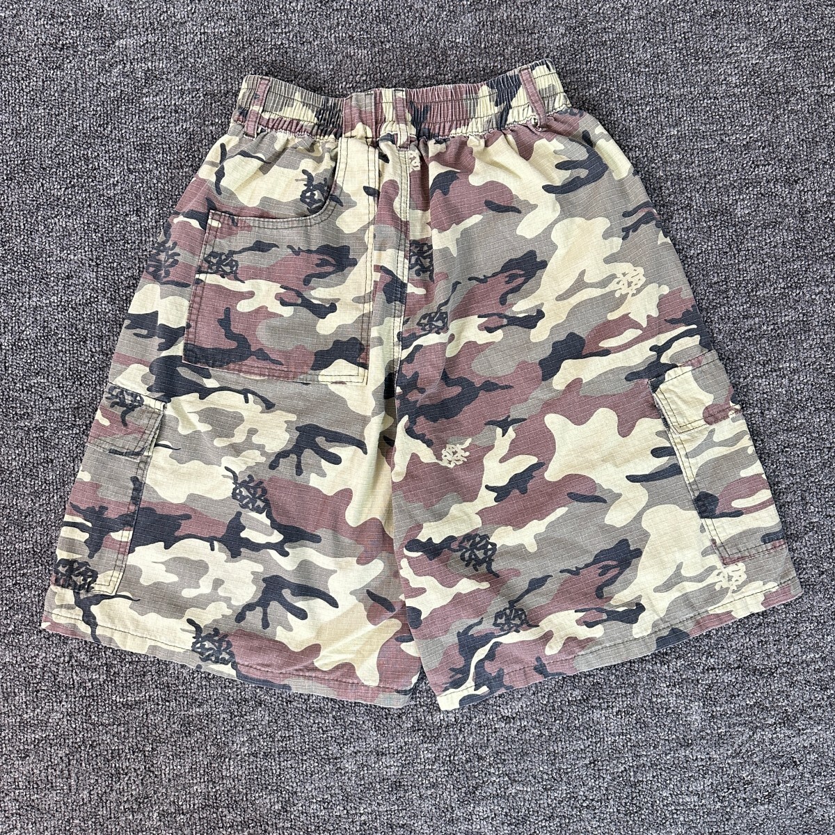 Mertra Embroidery pattern casual sports shorts Gray camouflage 刺繍 パターン カジュアル スポーツショーツパンツ グレー 迷彩柄