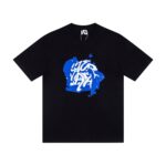 Mertra Print Blue pattern Round neck T-shirt Black プリント ブルー パターン クルーネック Tシャツ ブラック