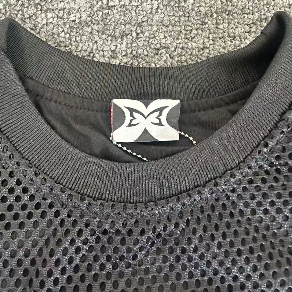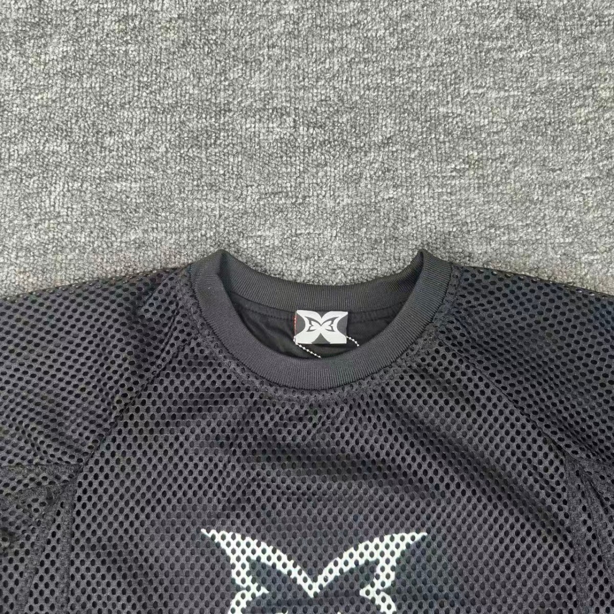 Mertra Print pattern mesh surface T-shirt Black プリント メッシュ面 パターン Tシャツ ブラック