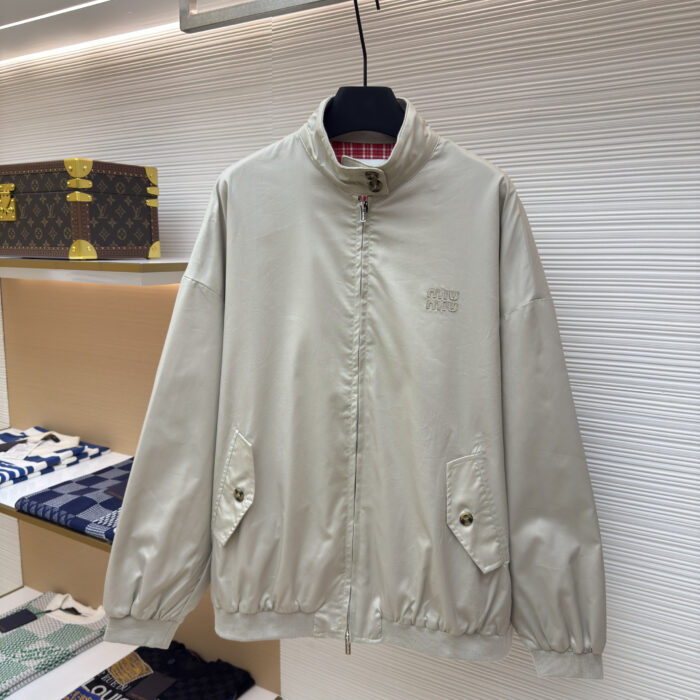 MIUMIU Embroidery LOGO ZIP-UP jacket Beige ミュウミュウ 刺繍 LOGO ジップアップ ジャケット ベージュ