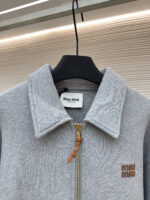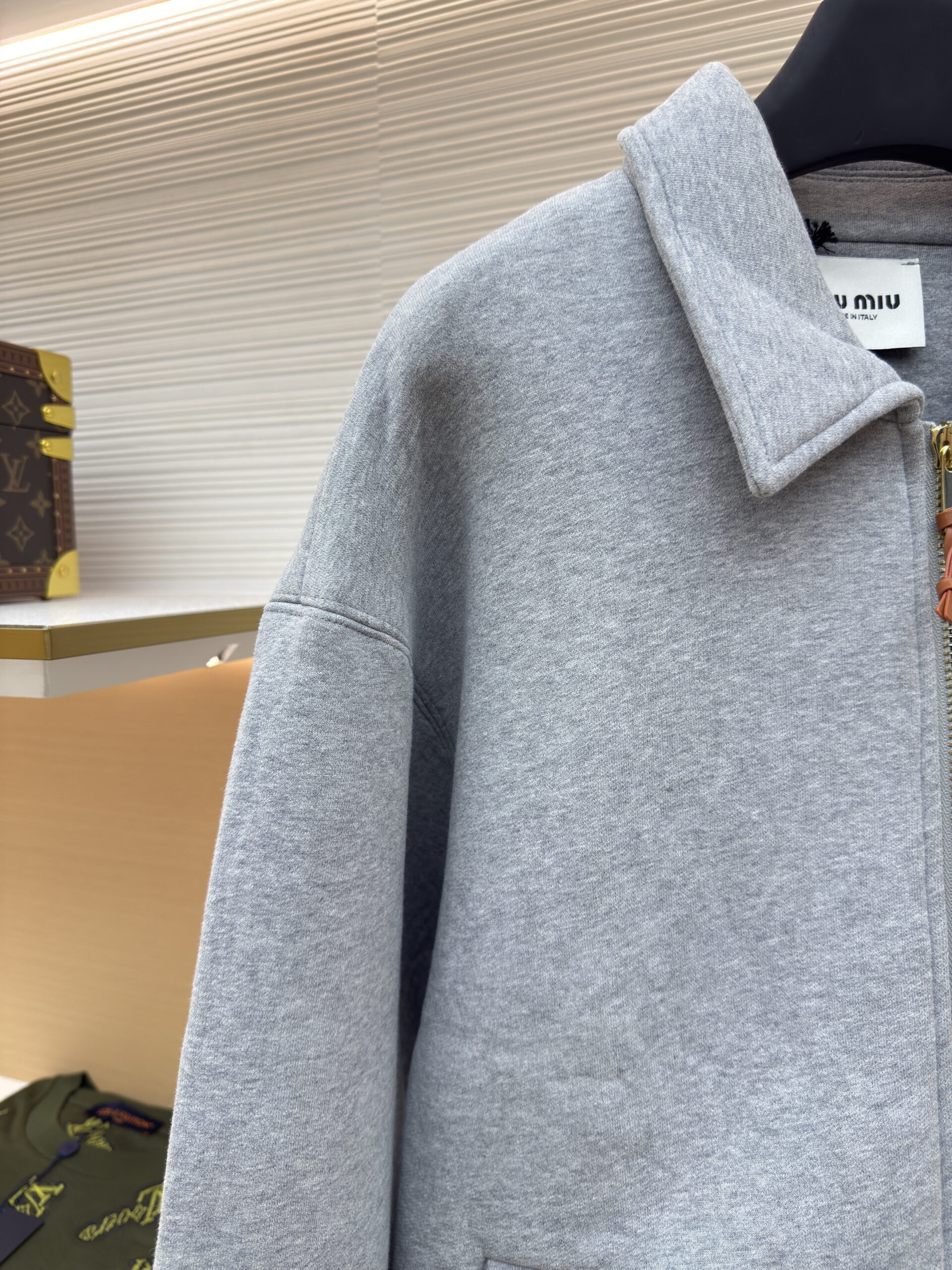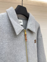 Miu Miu Turn-Down Collar Embroidery LOGO ZIP-UP jacket Gray ミュウミュウ ターンダウンカラー 刺繍 LOGO ジップアップ ジャケット グレー