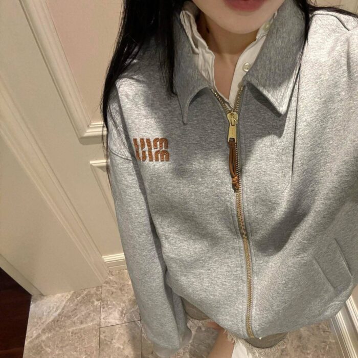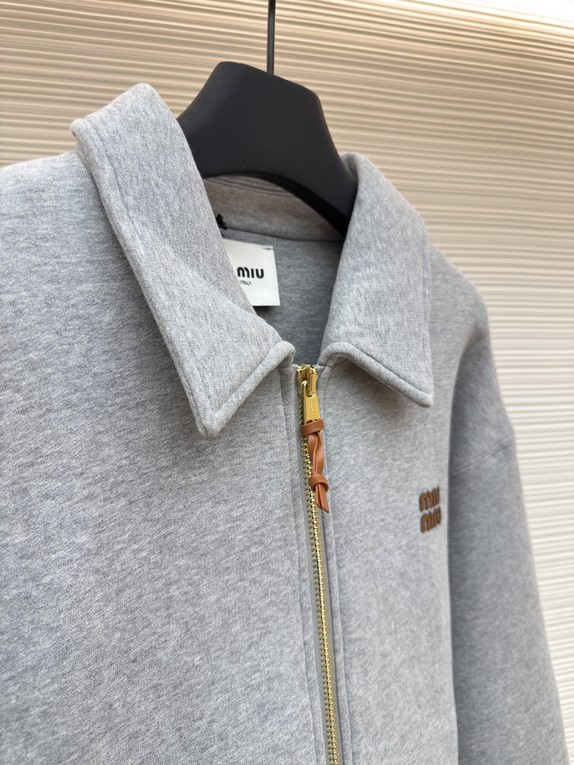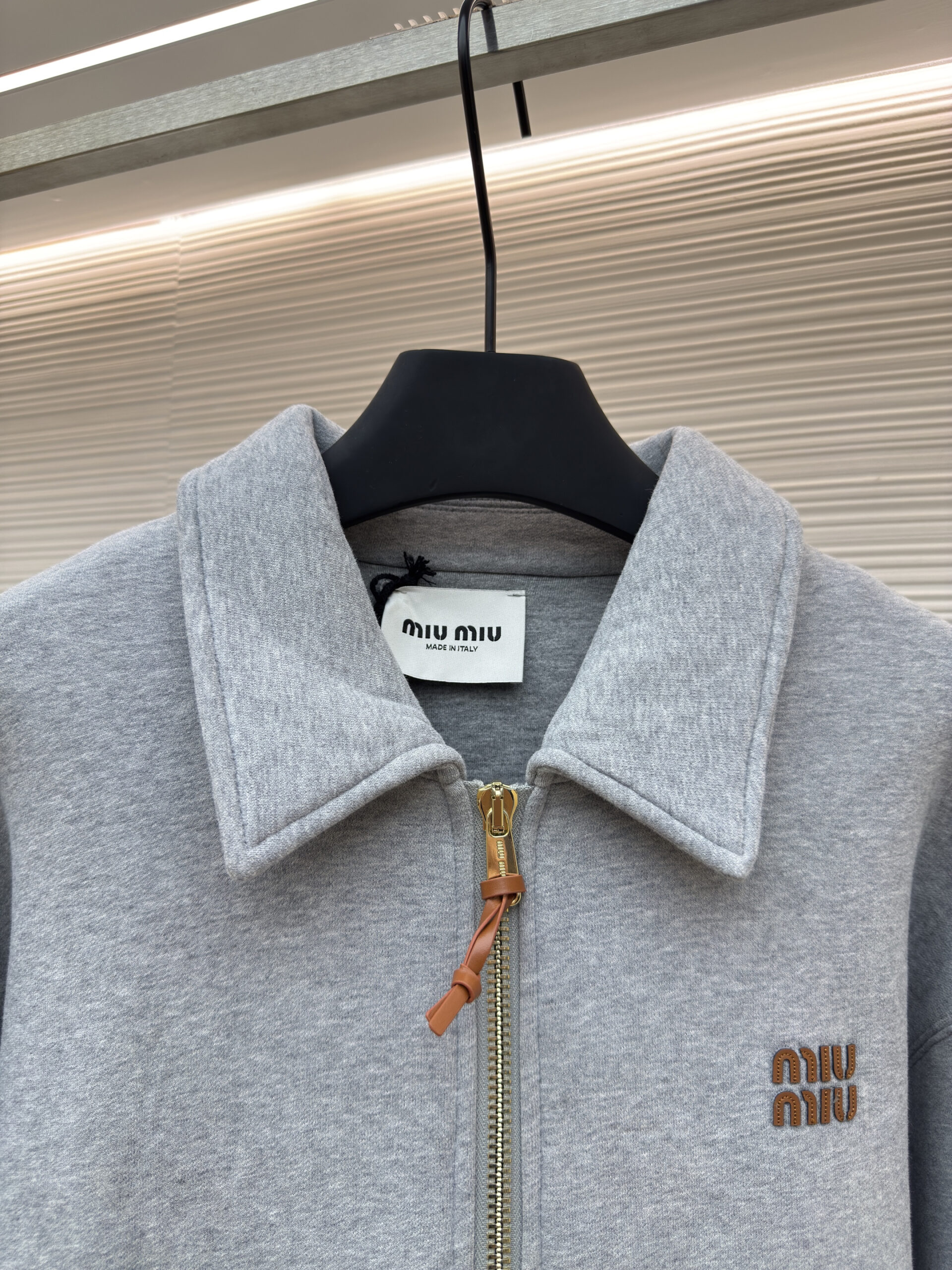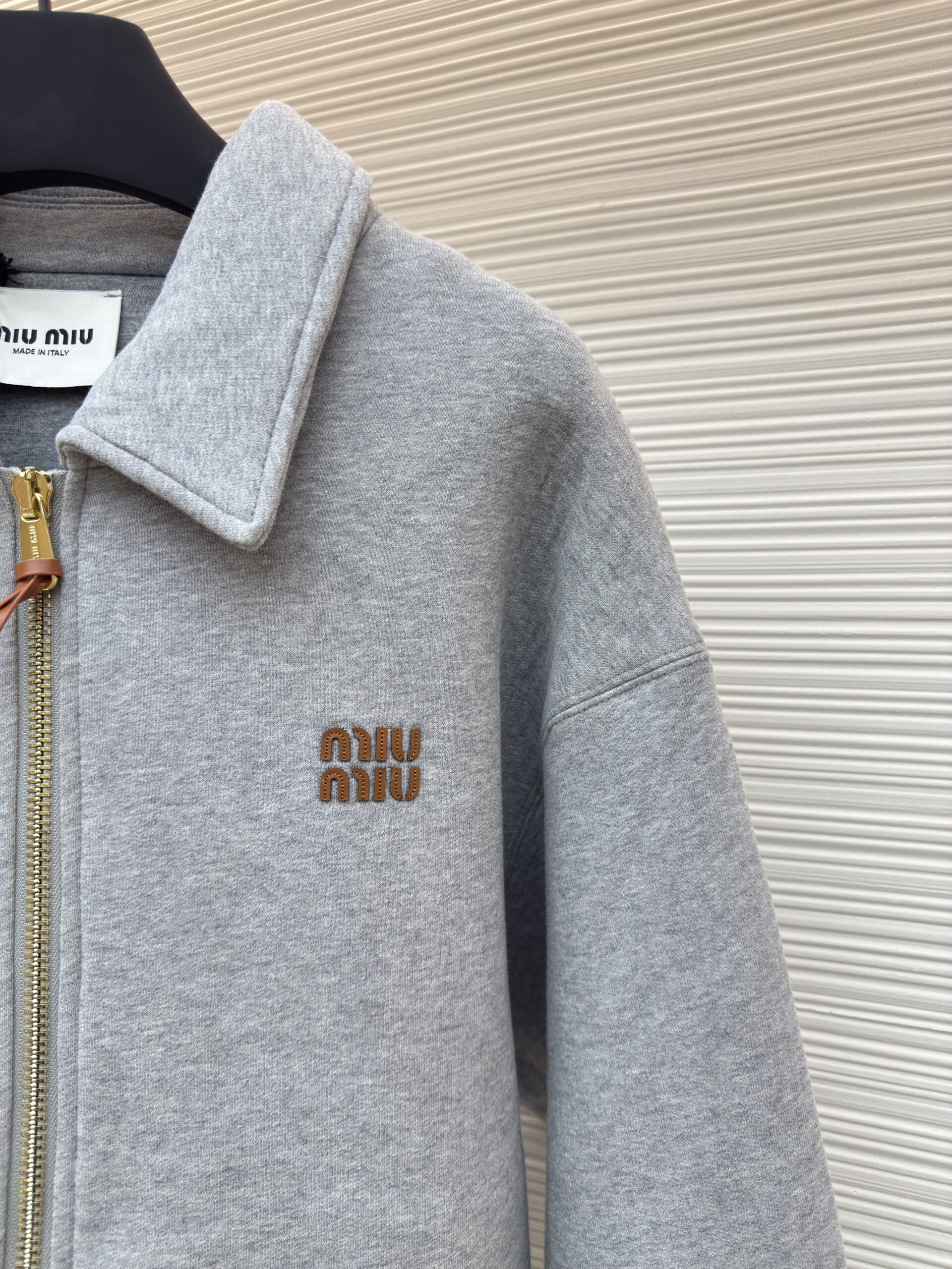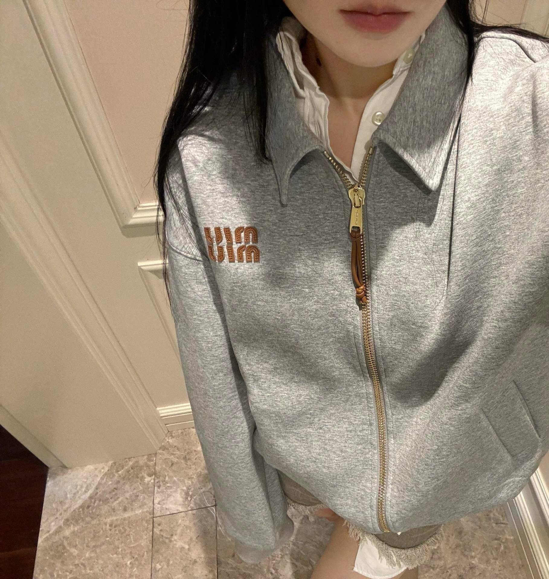 MIUMIU Embroidery LOGO ZIP-UP jacket Gray ミュウミュウ 刺繍 LOGO ジップアップ ジャケット グレー