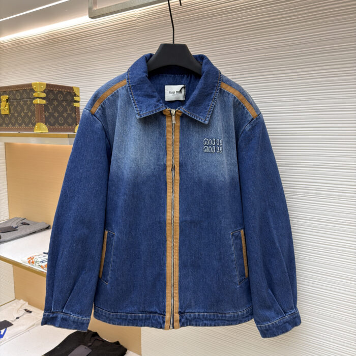 Miu Miu Embroidery LOGO ZIP-UP DENIM jacket Blue ミュウミュウ 刺繍 LOGO ジップアップ ジャケット ブルー