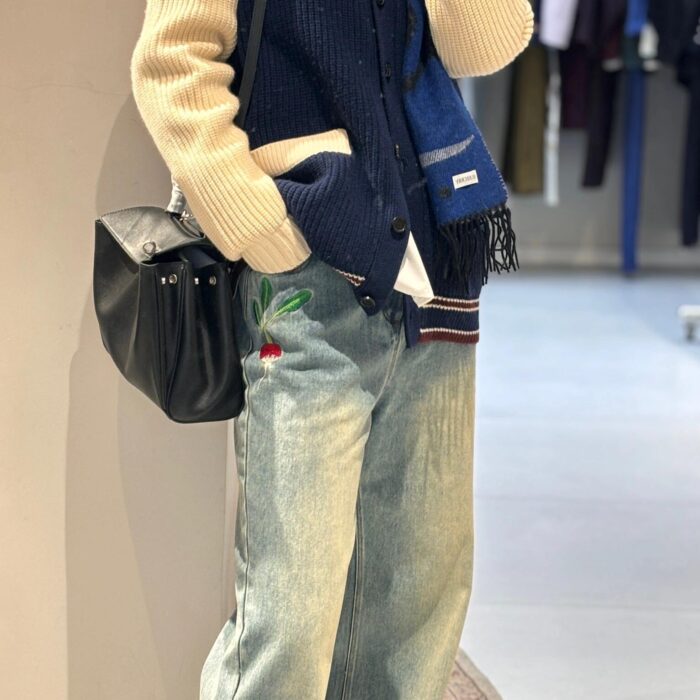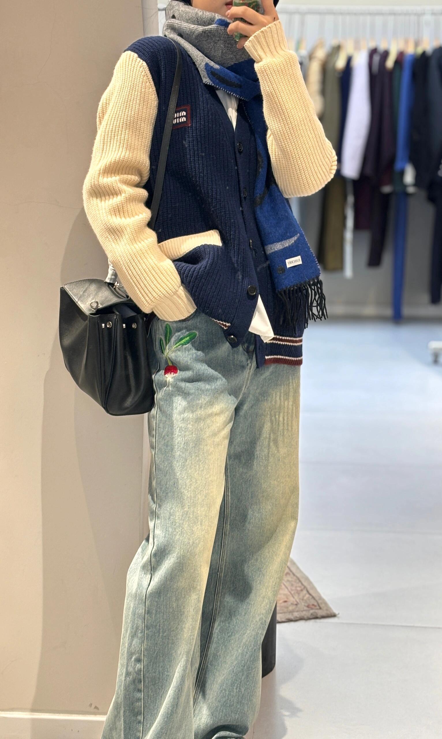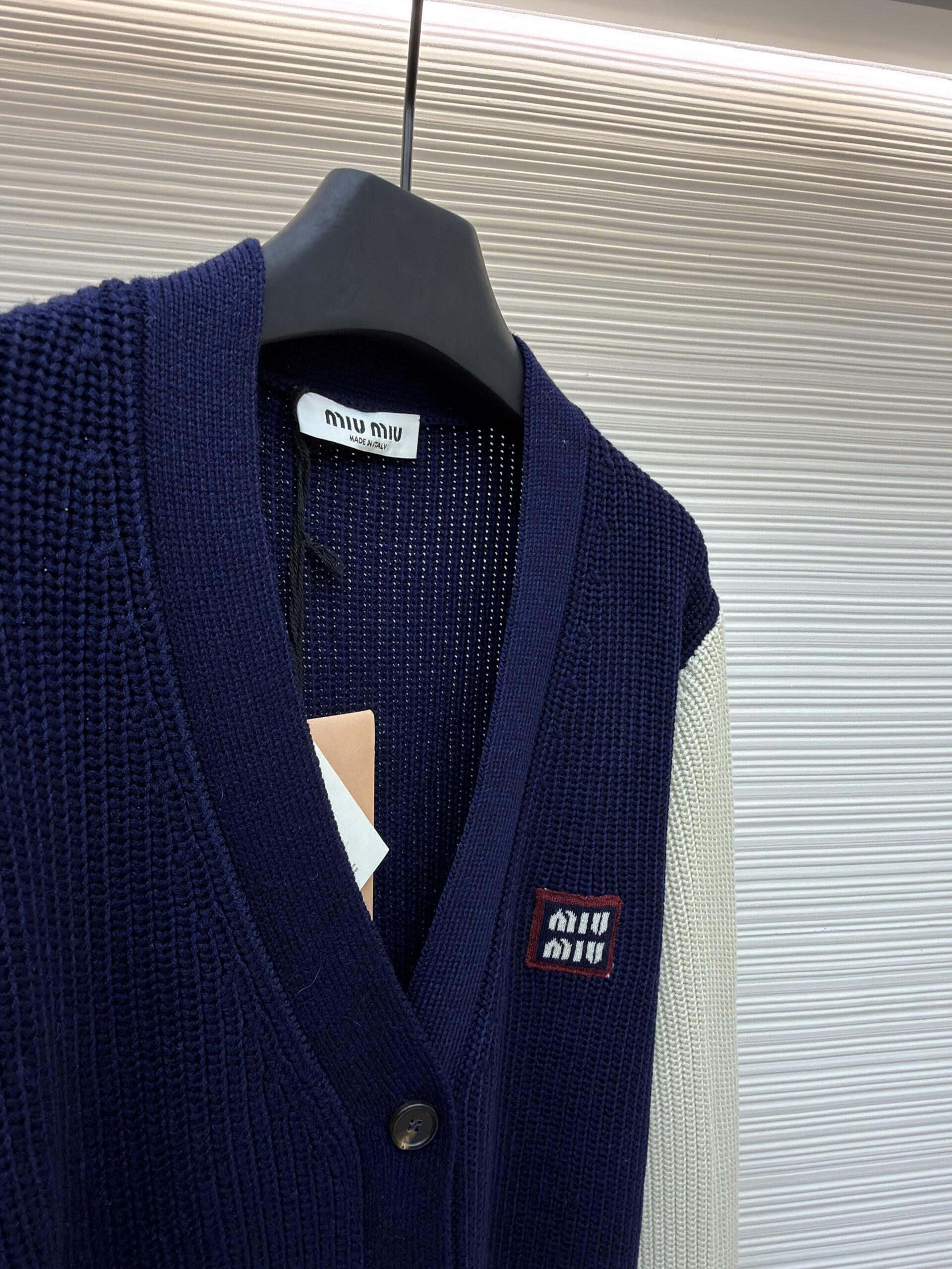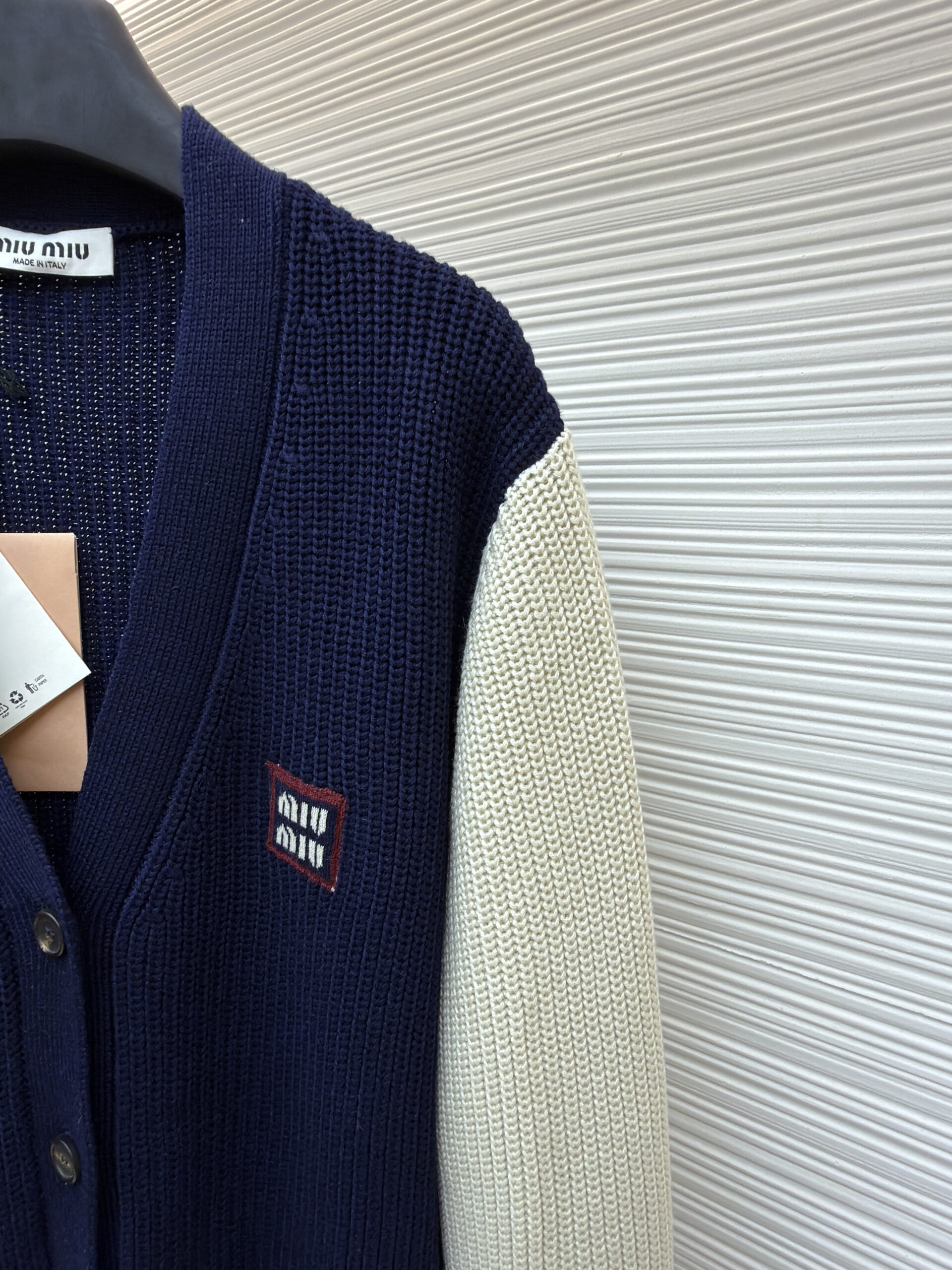 MIUMIU Embroidery color blocking Sweater Cardigan ミュウミュウ 刺繍 配色ブロッキング ニットセーター カーディガン