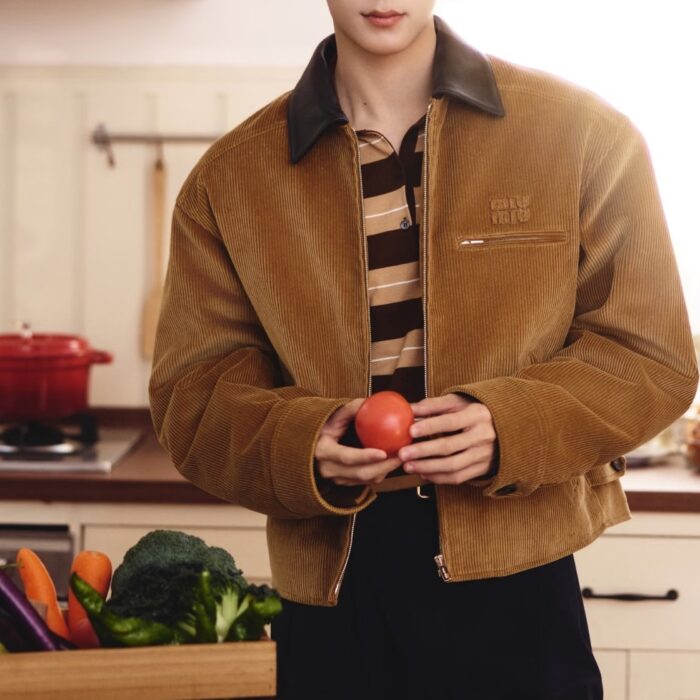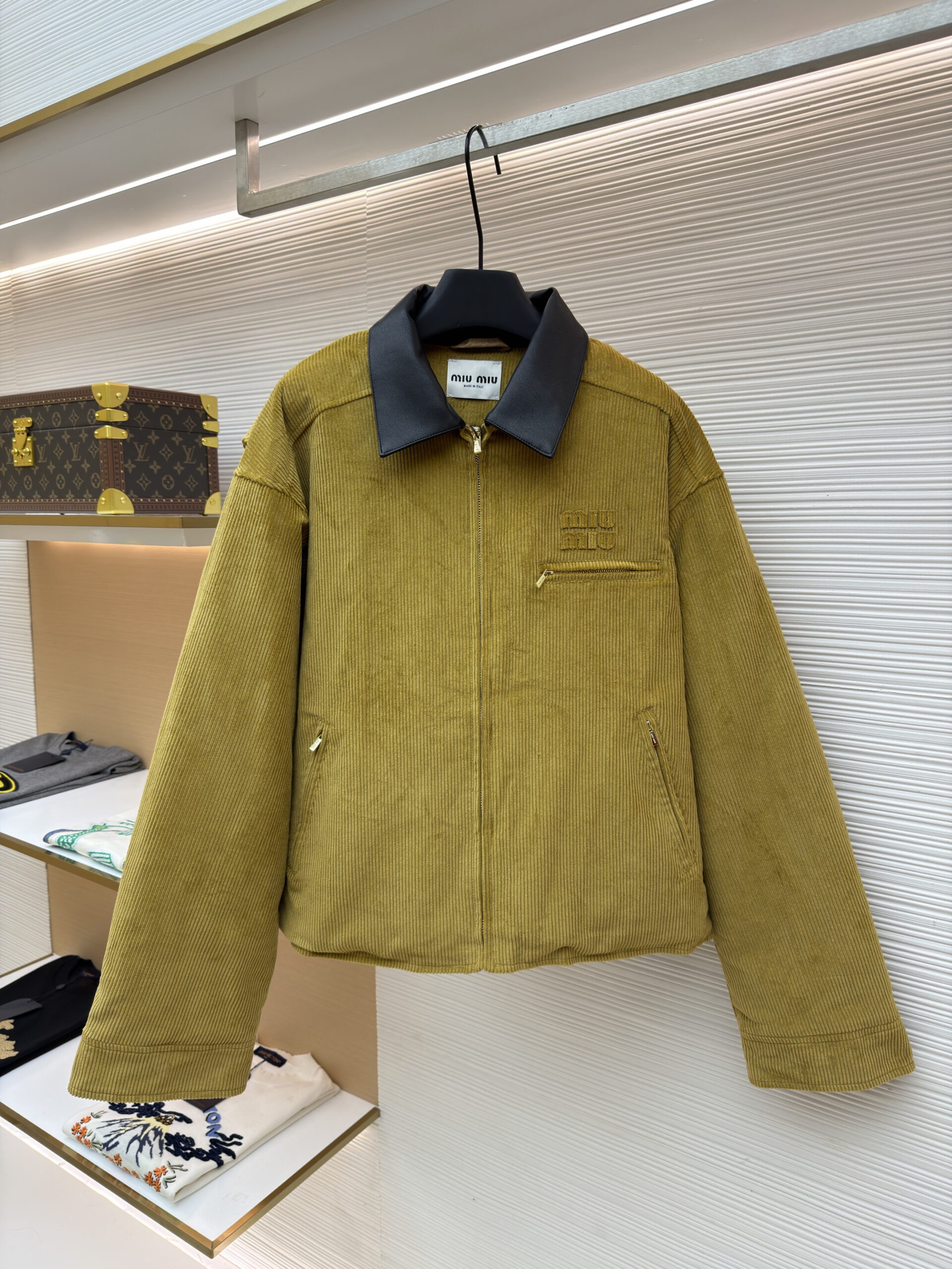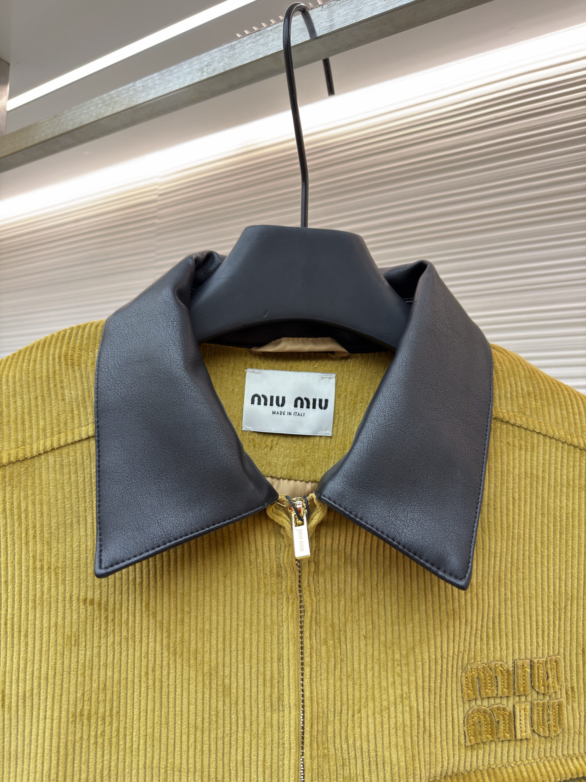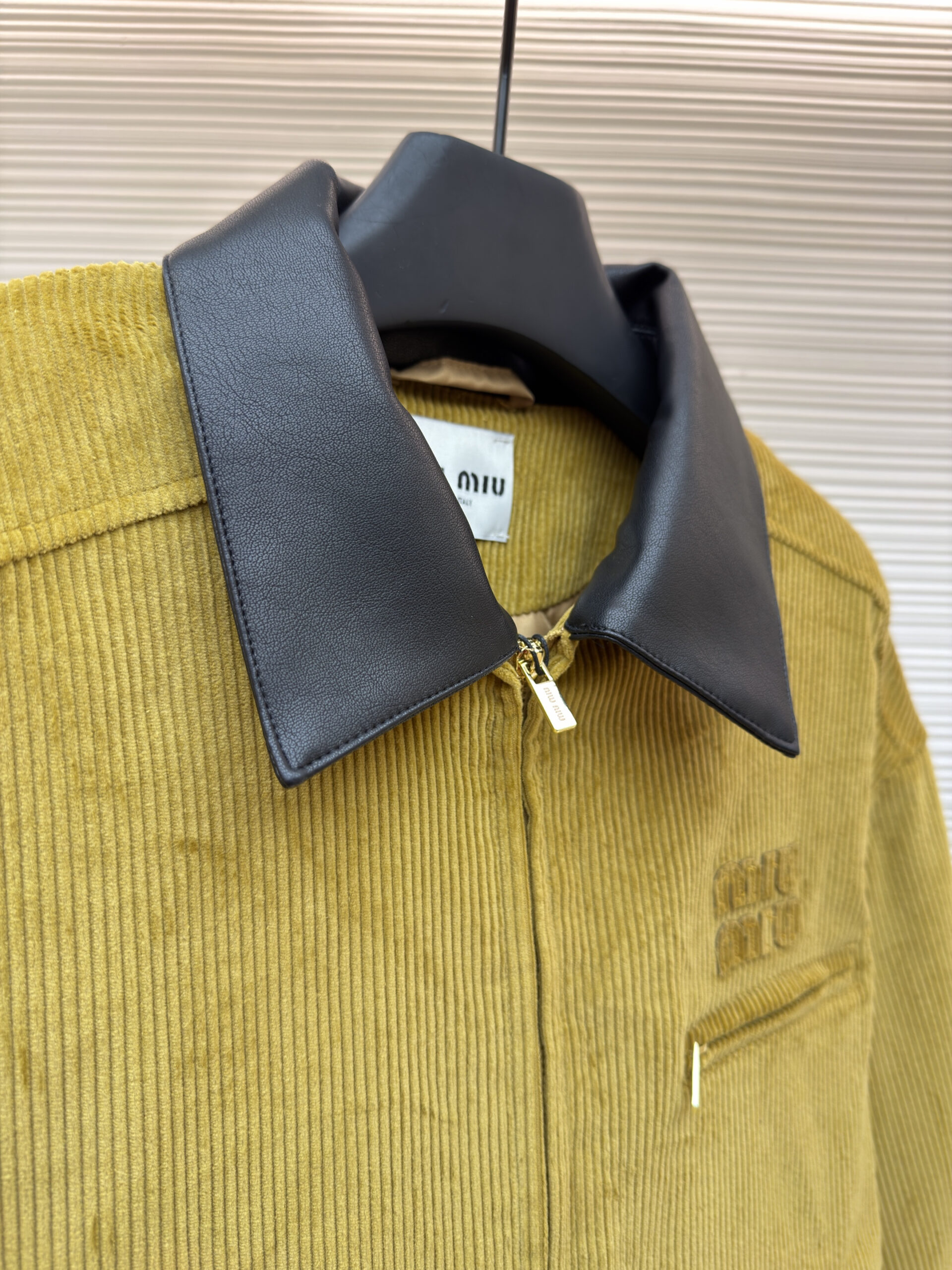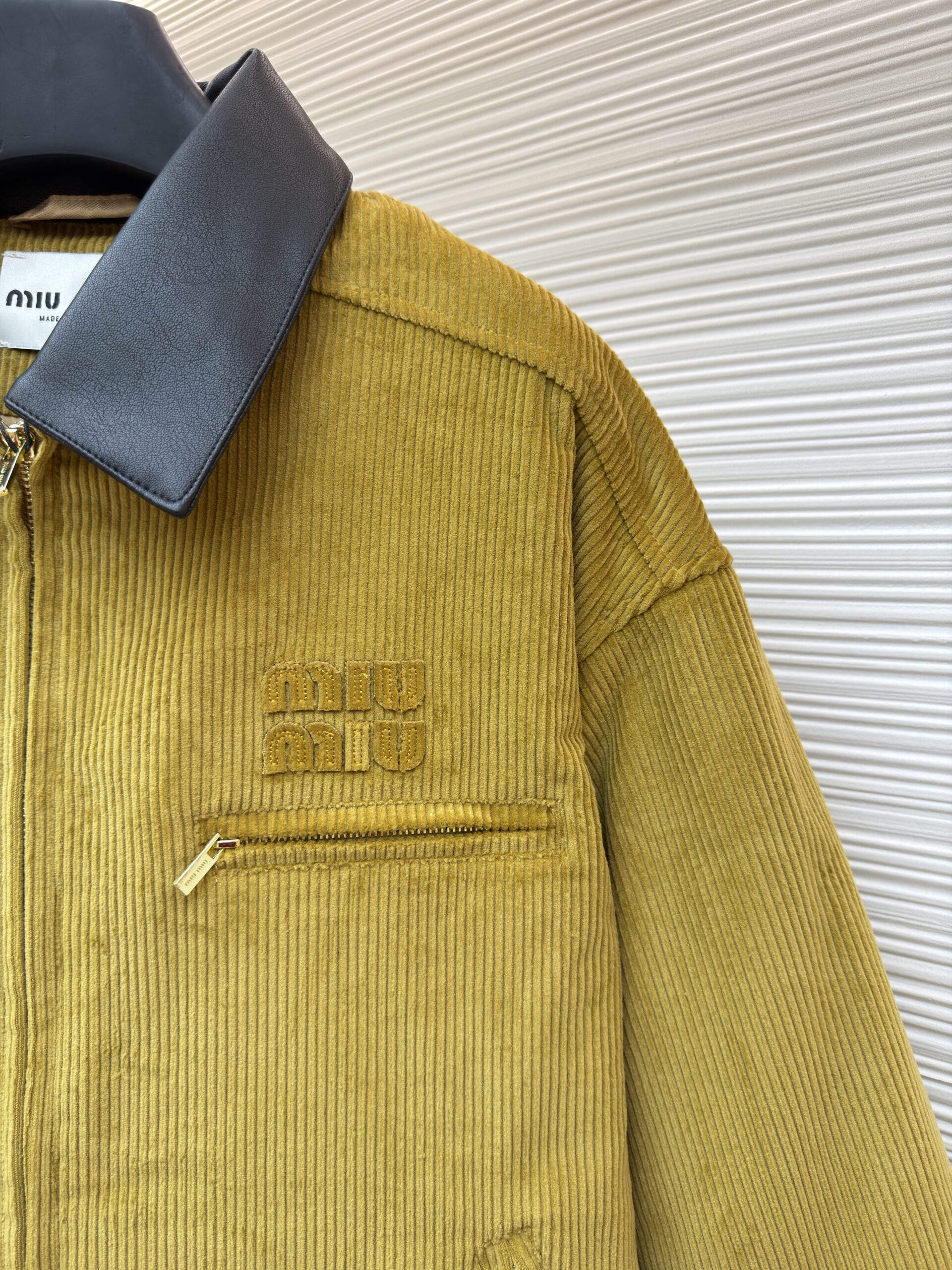 MIUMIU Embroidery LOGO Leather Collar Corduroy jacket ミュウミュウ 刺繍 LOGO レザーカラー コーデュロイ ジャケット