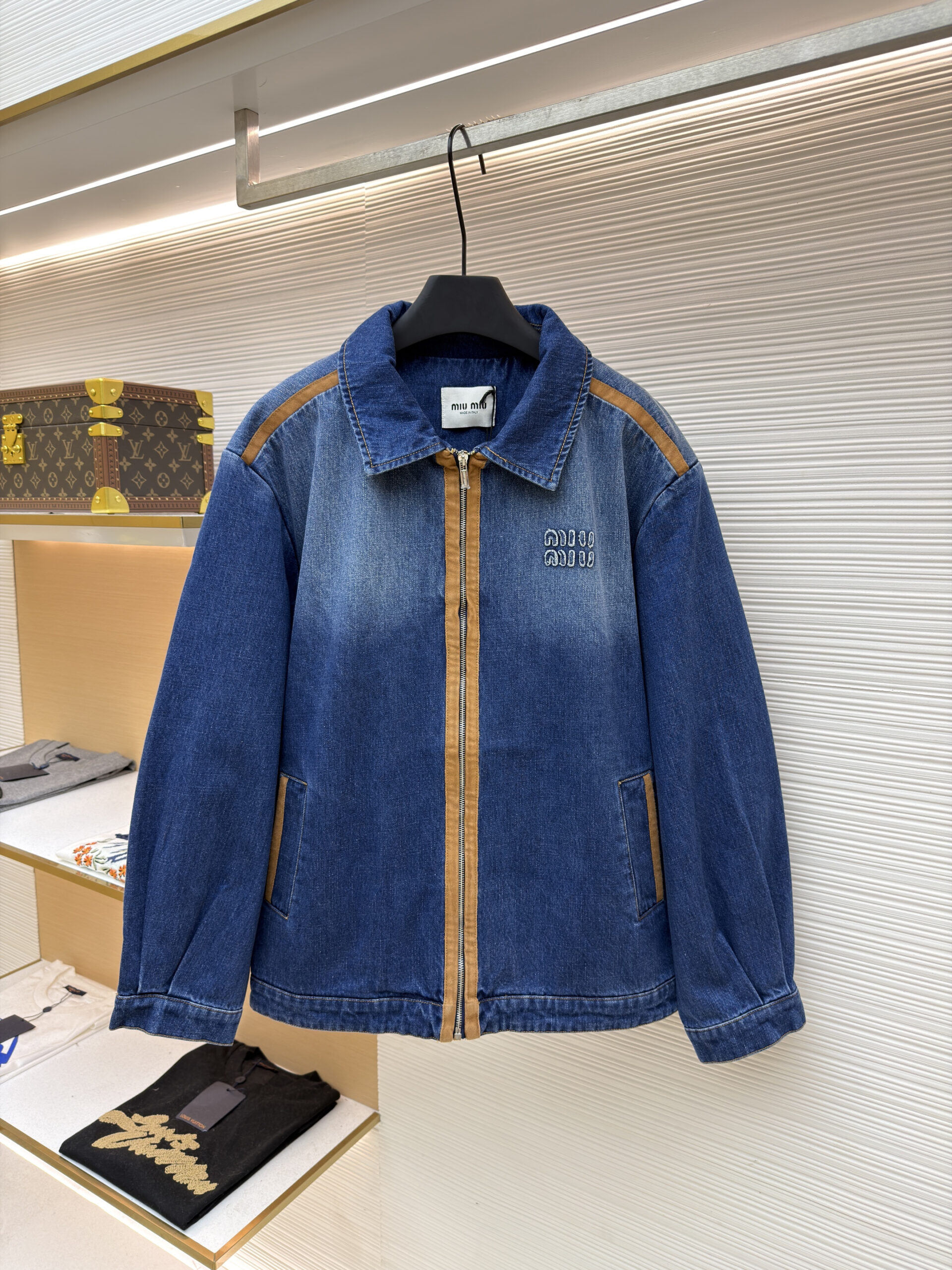 Miu Miu Embroidery LOGO ZIP-UP DENIM jacket Blue ミュウミュウ 刺繍 LOGO ジップアップ ジャケット ブルー