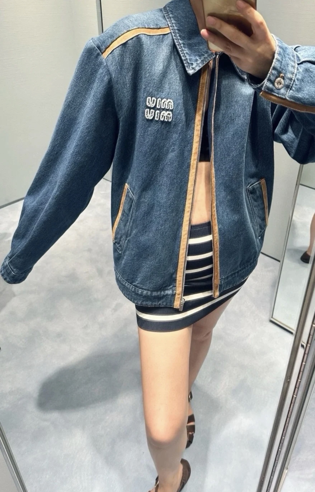 MIUMIU Embroidery LOGO Turn-Down Collar DENIM jacket ミュウミュウ 刺繍 LOGO ターンダウンカラー デニム ジャケット