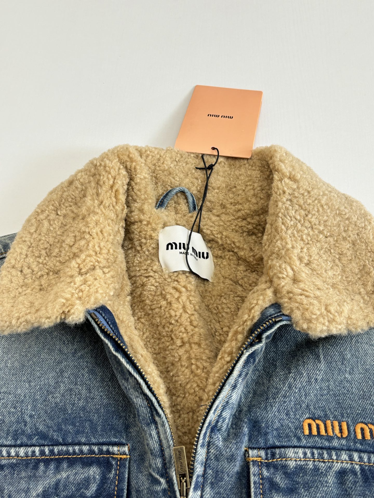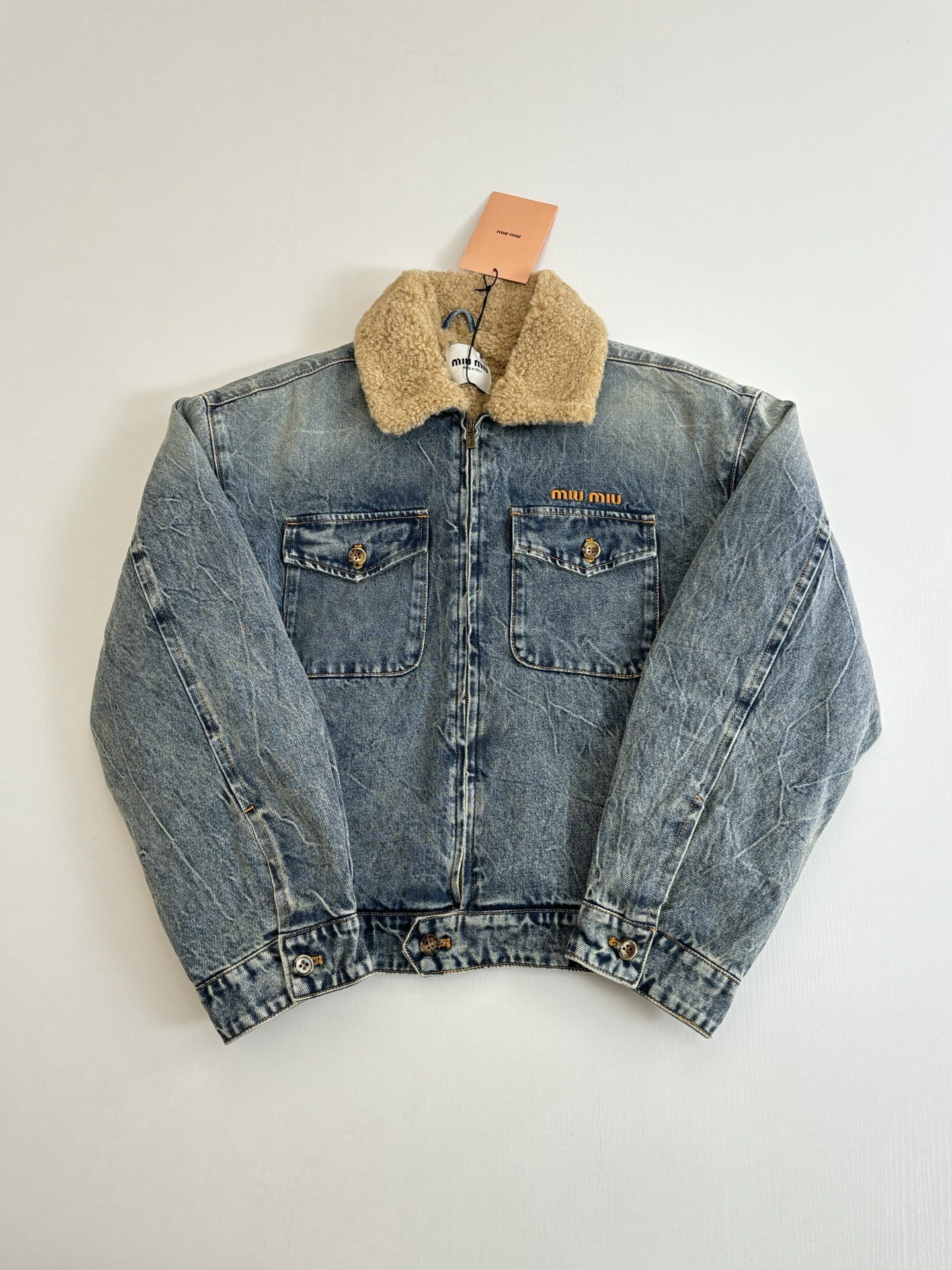 MIUMIU Embroidery LOGO Turn-Down Collar DENIM jacket ミュウミュウ 刺繍 LOGO ターンダウンカラー デニム ジャケット