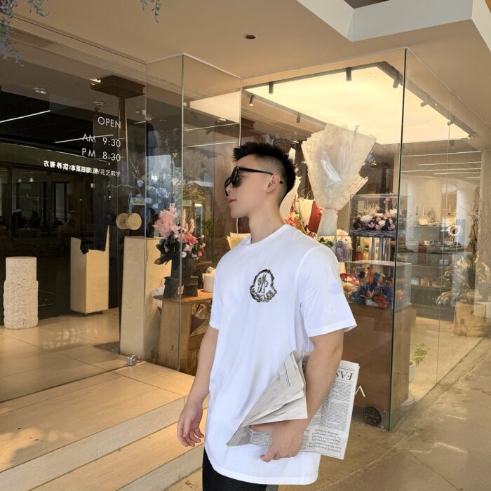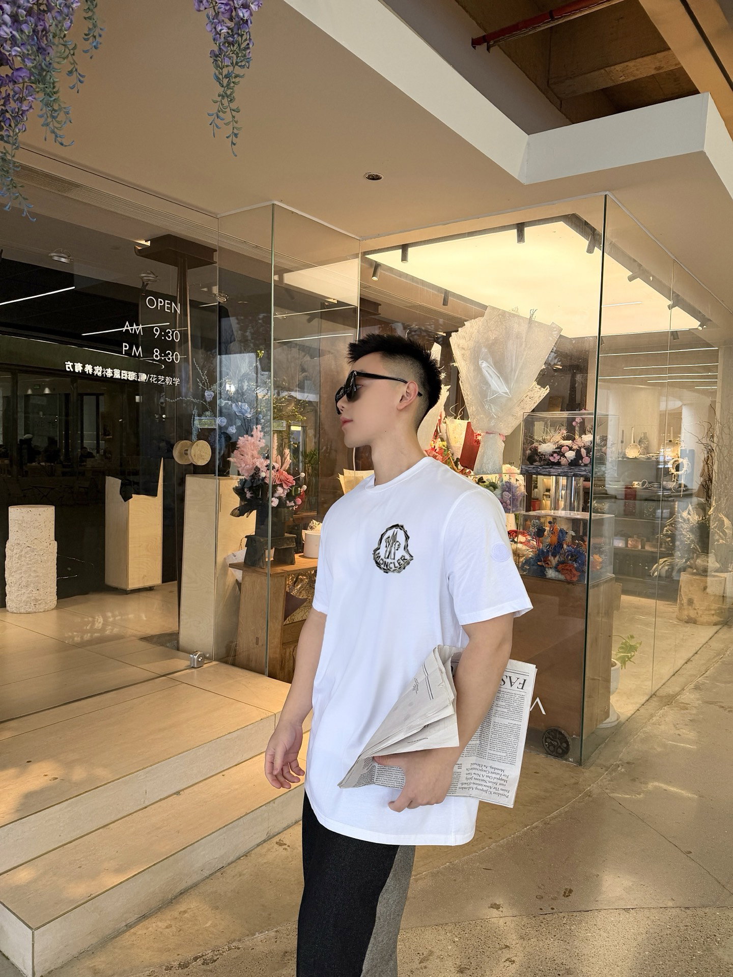MONCLER Print Letter logo pattern Round neck loose T-SHIRT White モンクレール プリント モジ logo パターン クルーネック ゆったり Tシャツ ホワイト