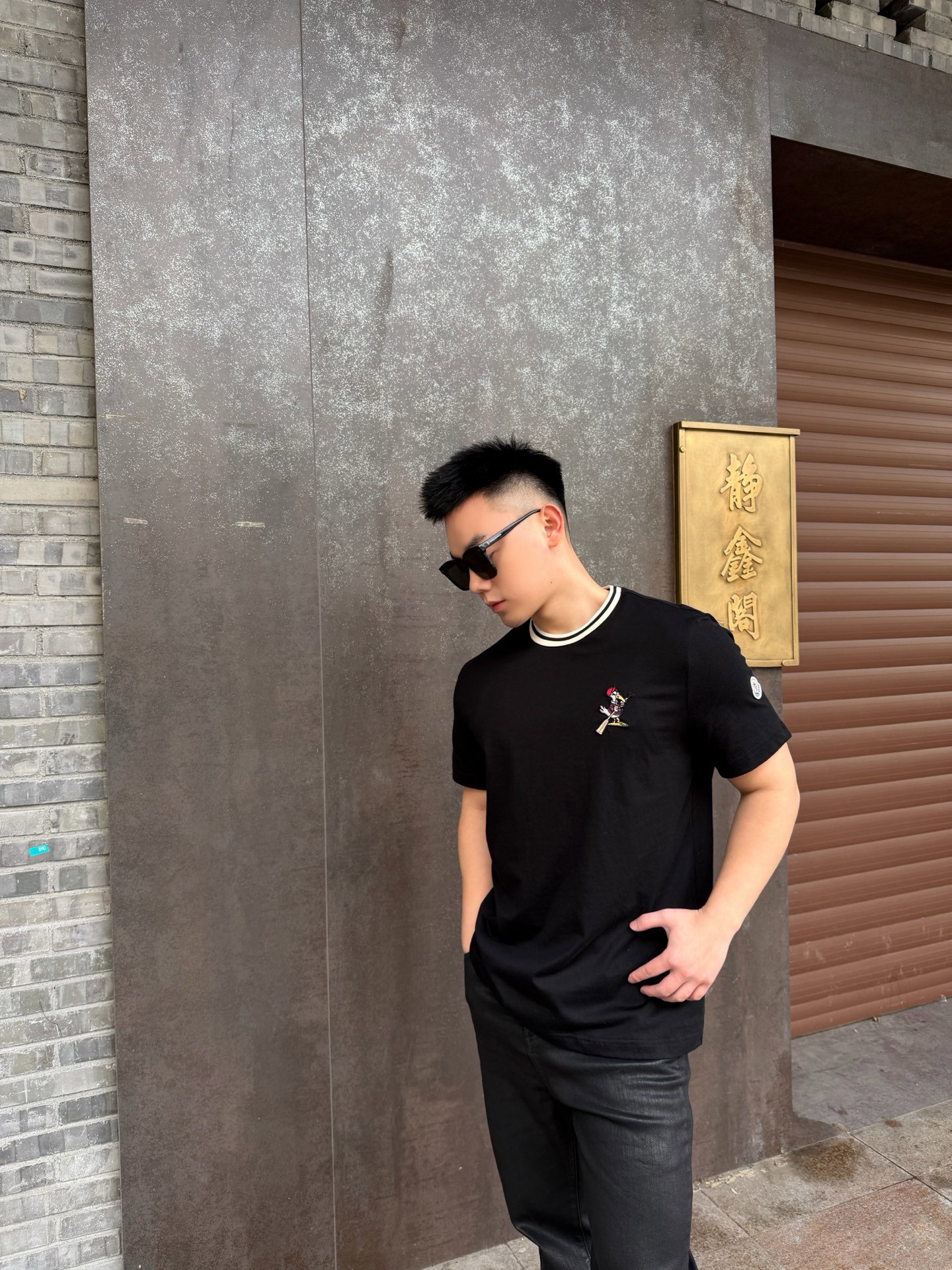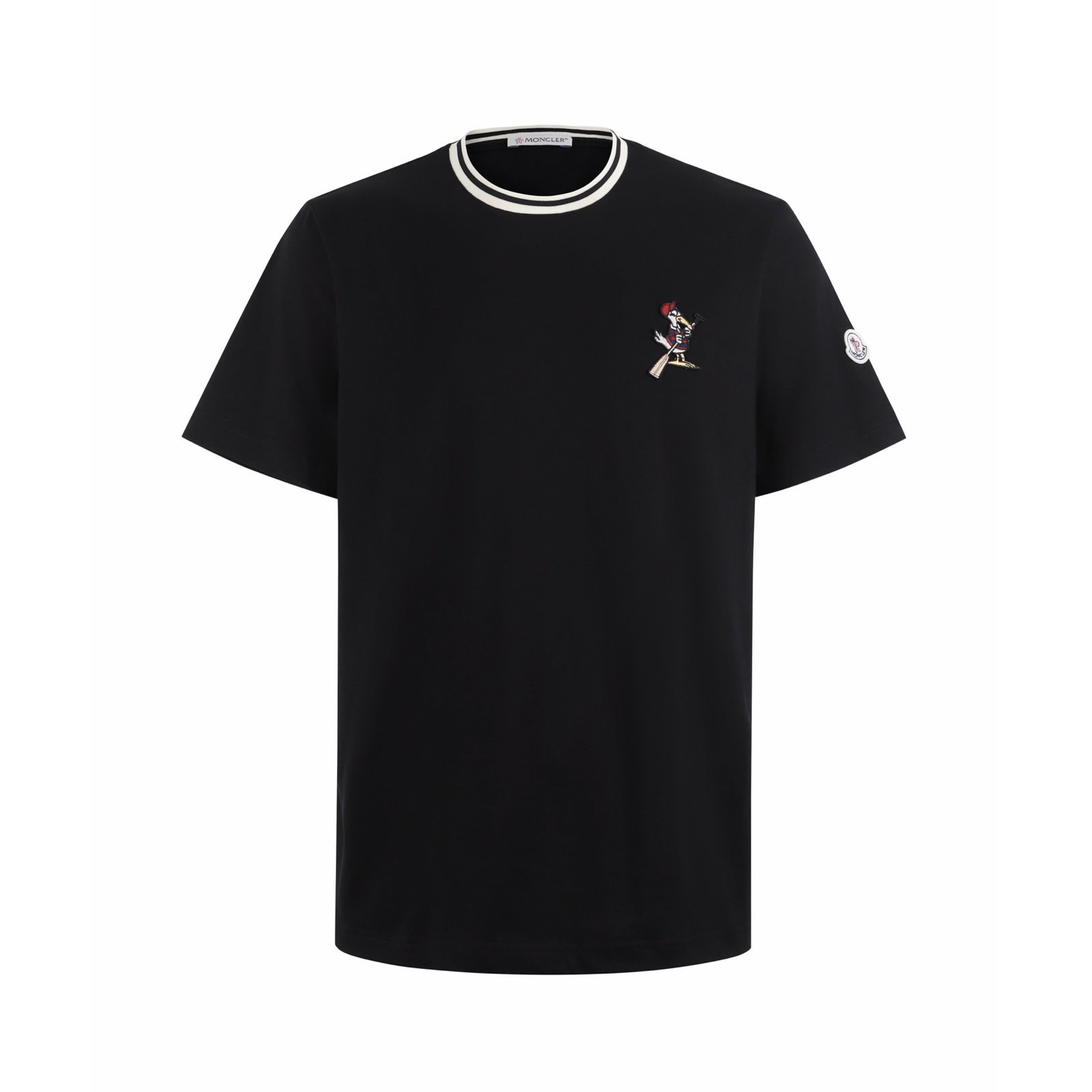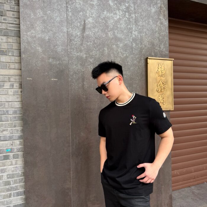 MONCLER Embroidery pattern Round neck T-SHIRT Black モンクレール 刺繍 パターン クルーネック Tシャツ ブラック