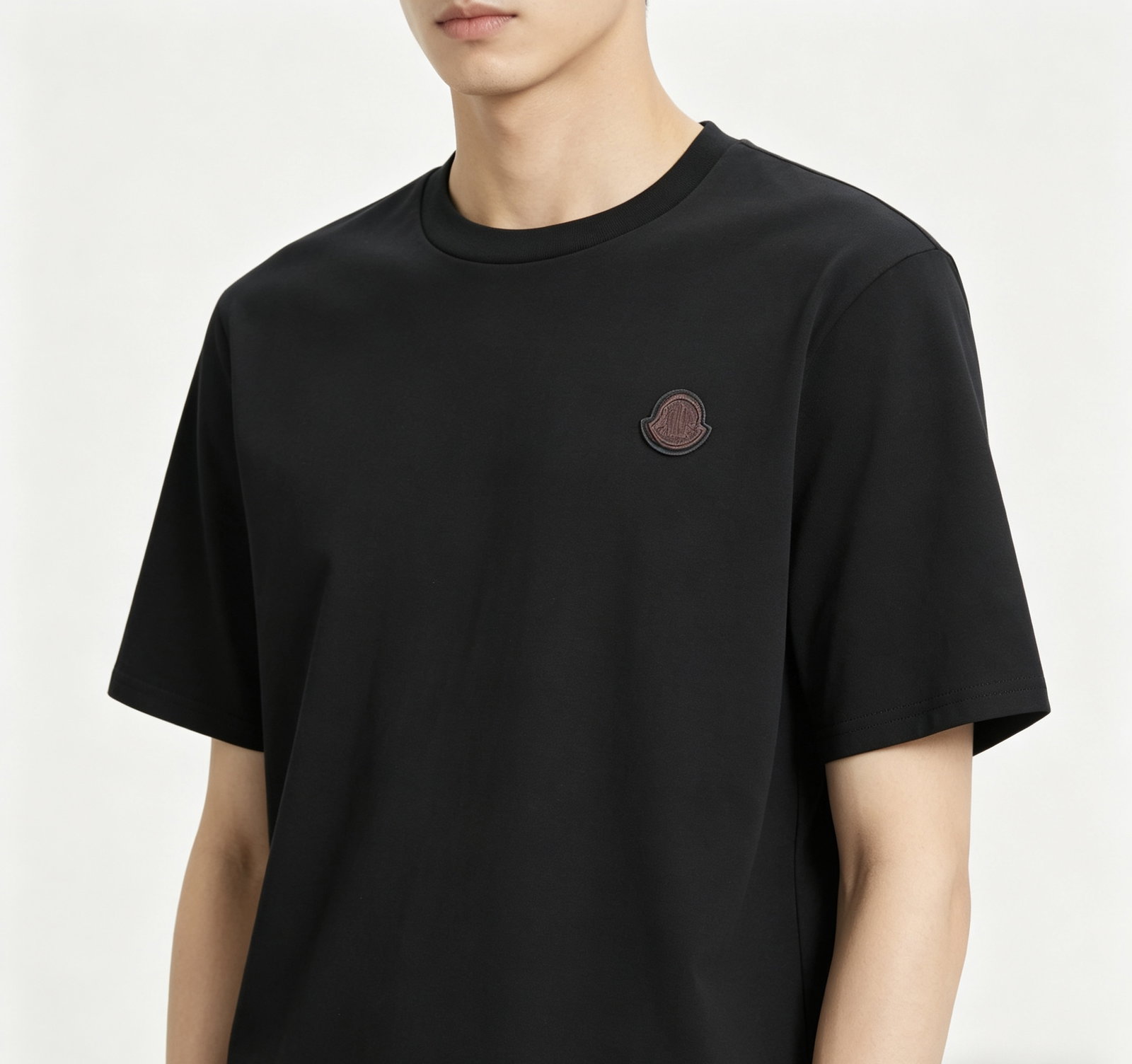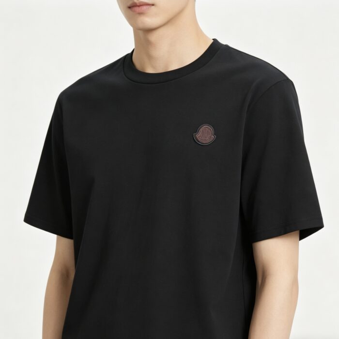 MONCLER Leather logo Round neck T-SHIRT Black モンクレール レザー logo クルーネック Tシャツ ブラック